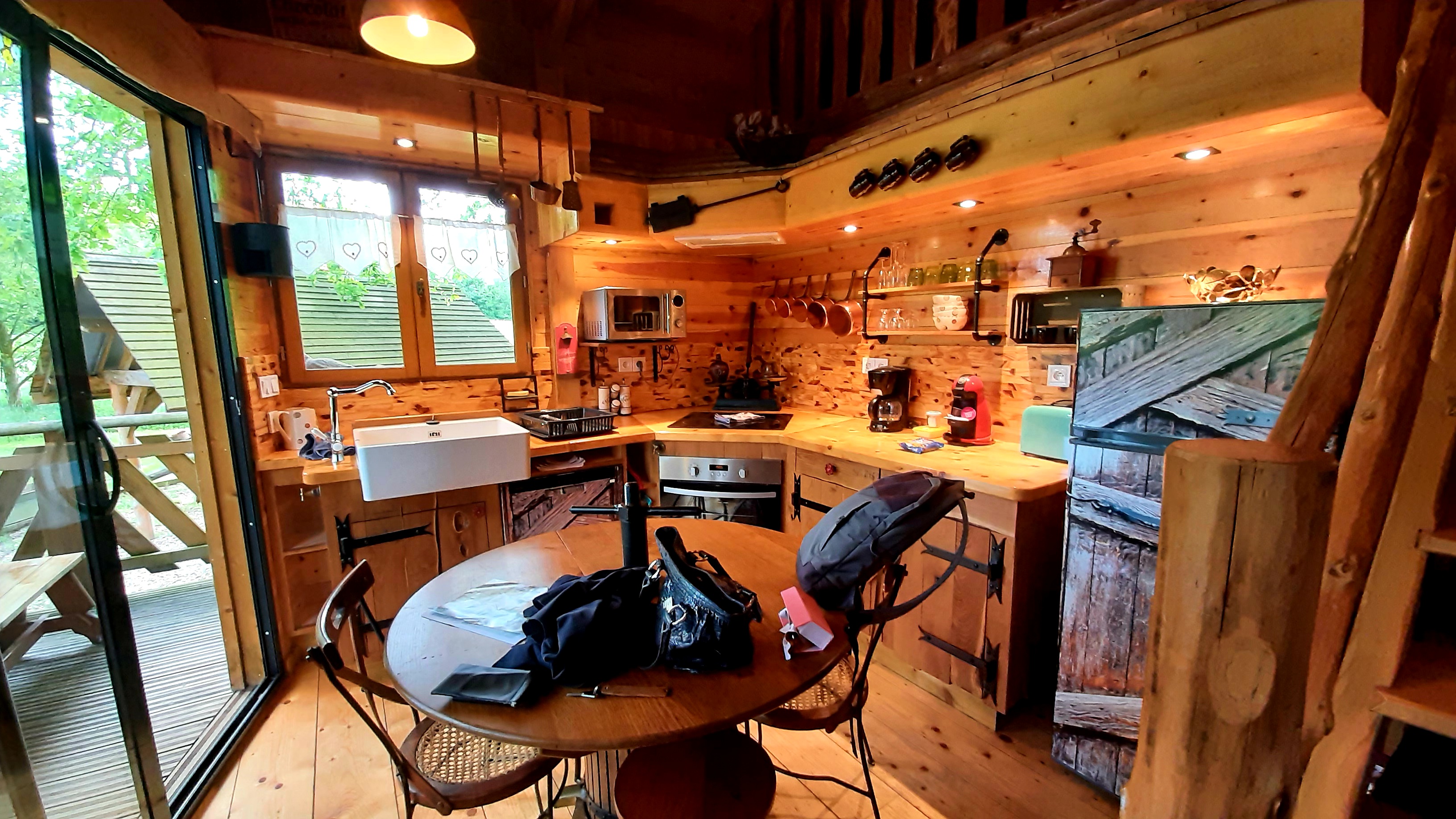 Accueil chaleureux et très convivial dans un cadre très agréable, tranquille, de l'espace entre chaque hébergement, véritable plus. Chalet bien agencé, décoré avec beaucoup d'astuces et de goût par rapport au thème, et très bien équipé. Il y a même une machine à expresso. Par rapport au prix, dommage que le wifi soit payant, pratique un peu dépassée mais malheureusement trop généralisée en France dans les campings, et dommage de ne pas avoir à l'arrivée un plateau de courtoisie pour café, sachets de thé ou infusion.