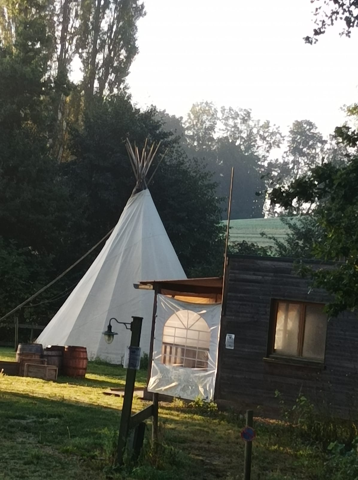 Nous sommes passés avec ma femme pour confirmer une réservation de tipie et d'un chalet pour notre anniversaire début juin , nous avons profité du restaurant avec une carte sympathique.... Nous avons été reçu par les patrons qui sont accueillant et qui sont au style de leur camping: calme et reposant