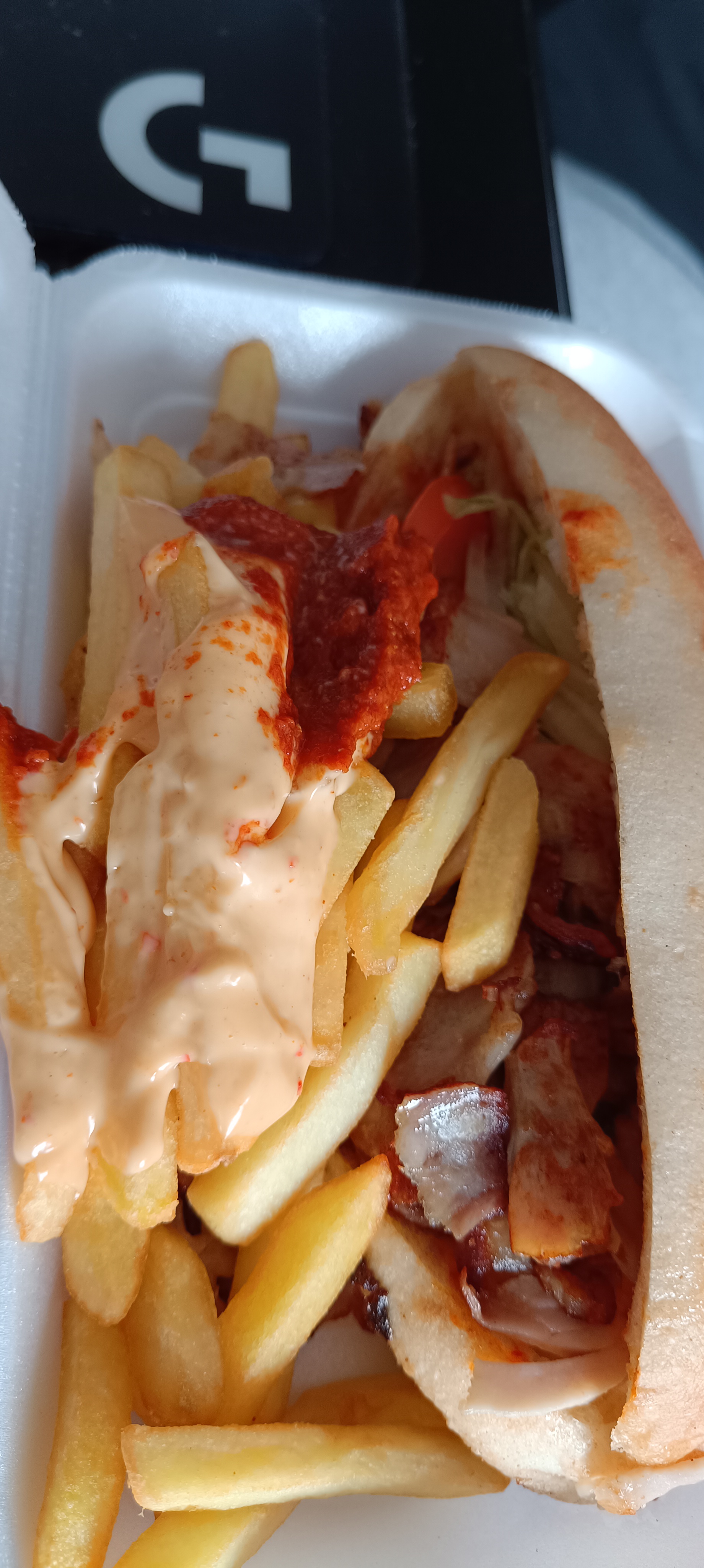 Un grec tout ce qu'il y à de plus banale, c'est pas folichon mais ça reste plutôt ok niveau goût, rien d'exceptionnel mais ça fait tout juste le taff. Remarque quand même quelques petites choses un peu dommage : le pain qui s'ouvre tout seul pour un rien ce qui fait qu'on à notre sandwich détruit après 2 crocs, pas ouf la qualité du pain kebab. Les sauces : ont à beau demandé à part, il arrive très très souvent qu'on nous les foutent dans la boîte ce qui est un manque de sérieux au bout d'un moment. Sinon point fort (je pense?) : On est servi très rapidement donc c'est cool, pas besoin d'attendre un siècle. Celà reste malgré tout trop cher pour ce que c'est (7euros) pour un kebab qui fait un peu la gueule