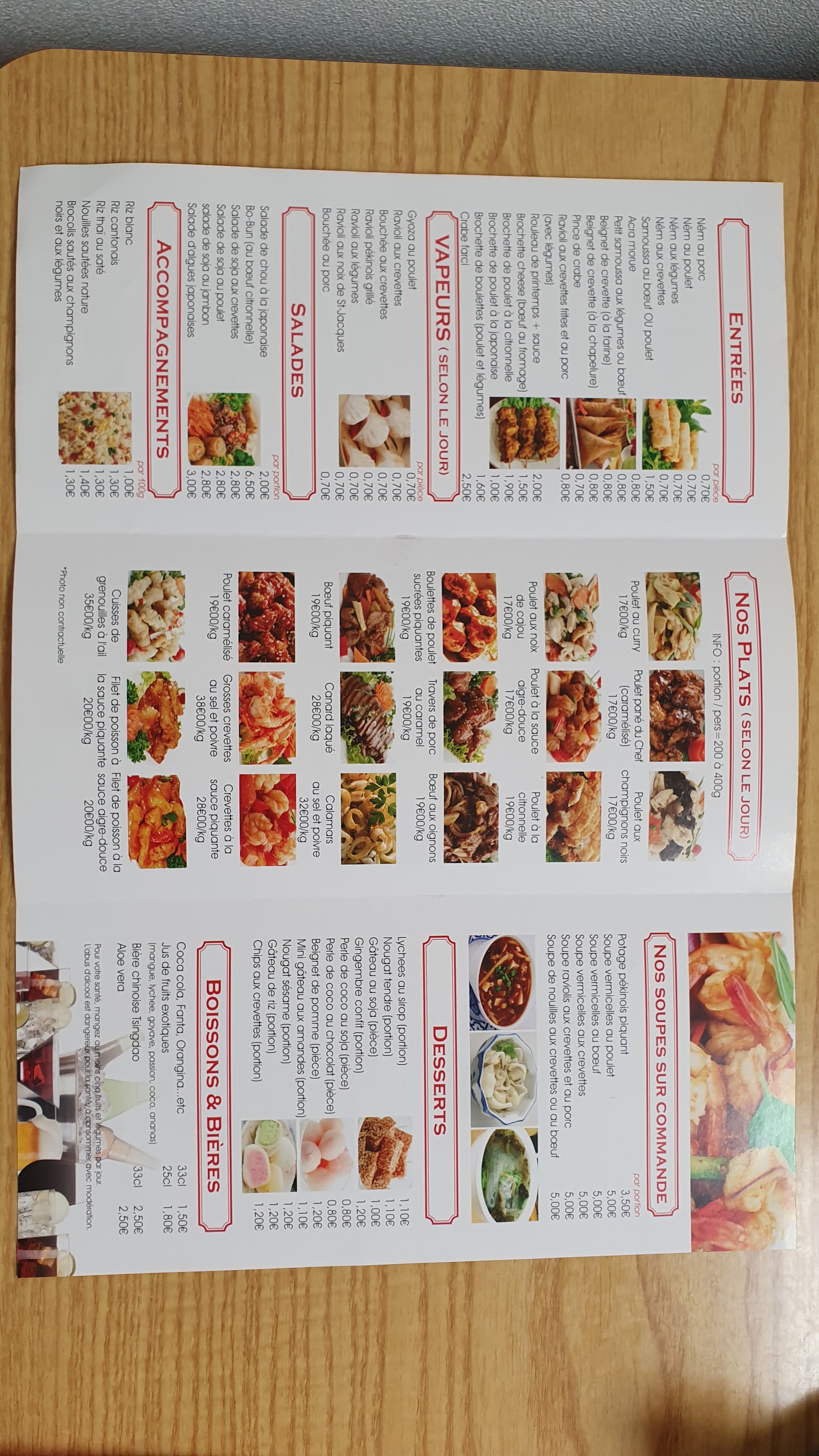 Bien situé , facile d'accès...traiteur cuisine asiatique..a emporter uniquement....plats préparés....nouilles..riz...poisson...crevettes..viande..boissons..qq dessert .bonne qualité..fraîcheur ...les sushis ne sont pas terribles ....accueil très sympathique..les tarifs sont correct ....je recommande