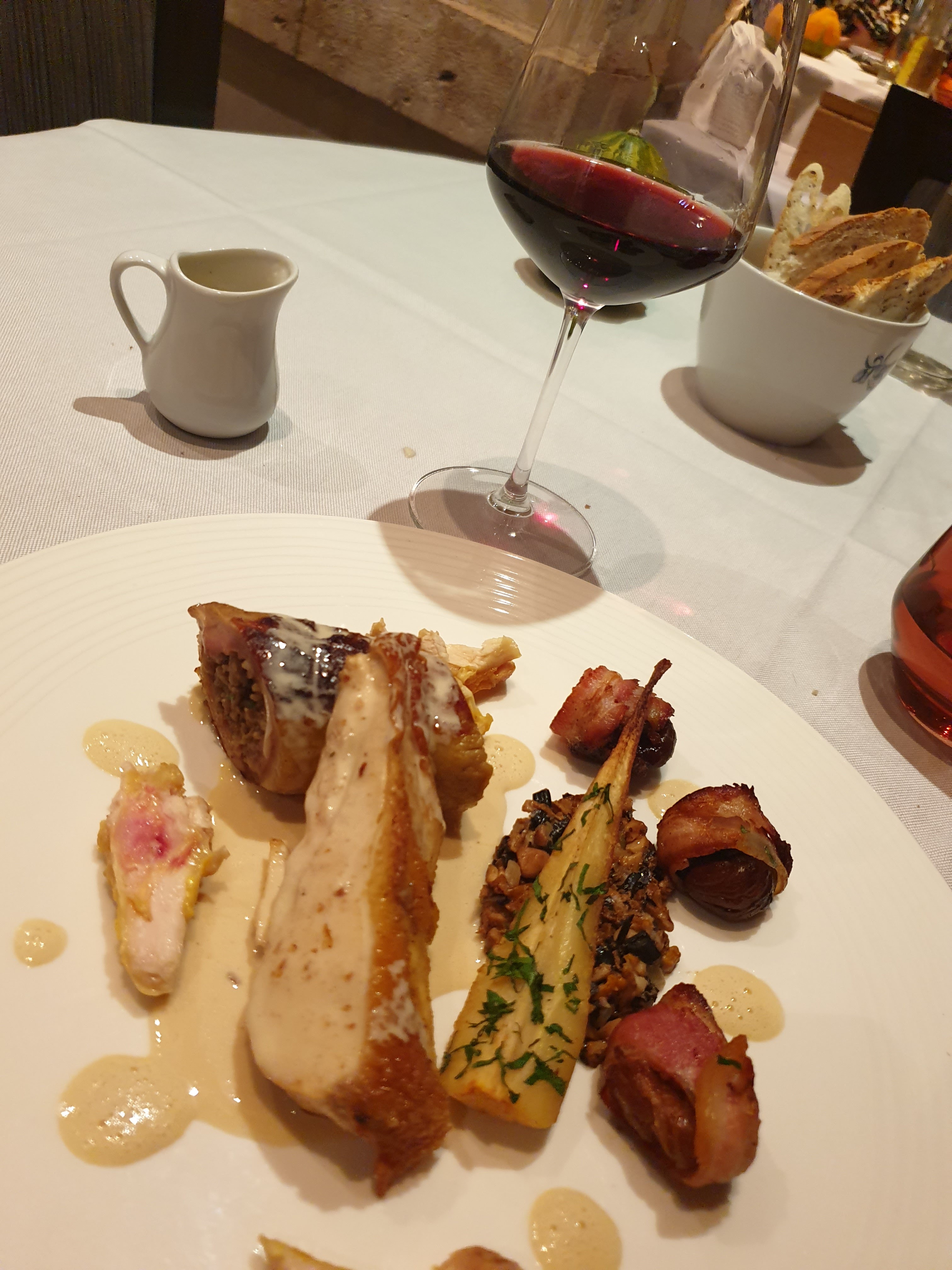 Excellent, déçu du vin rouge qui avait un goût de bouchon sinon rien à dire