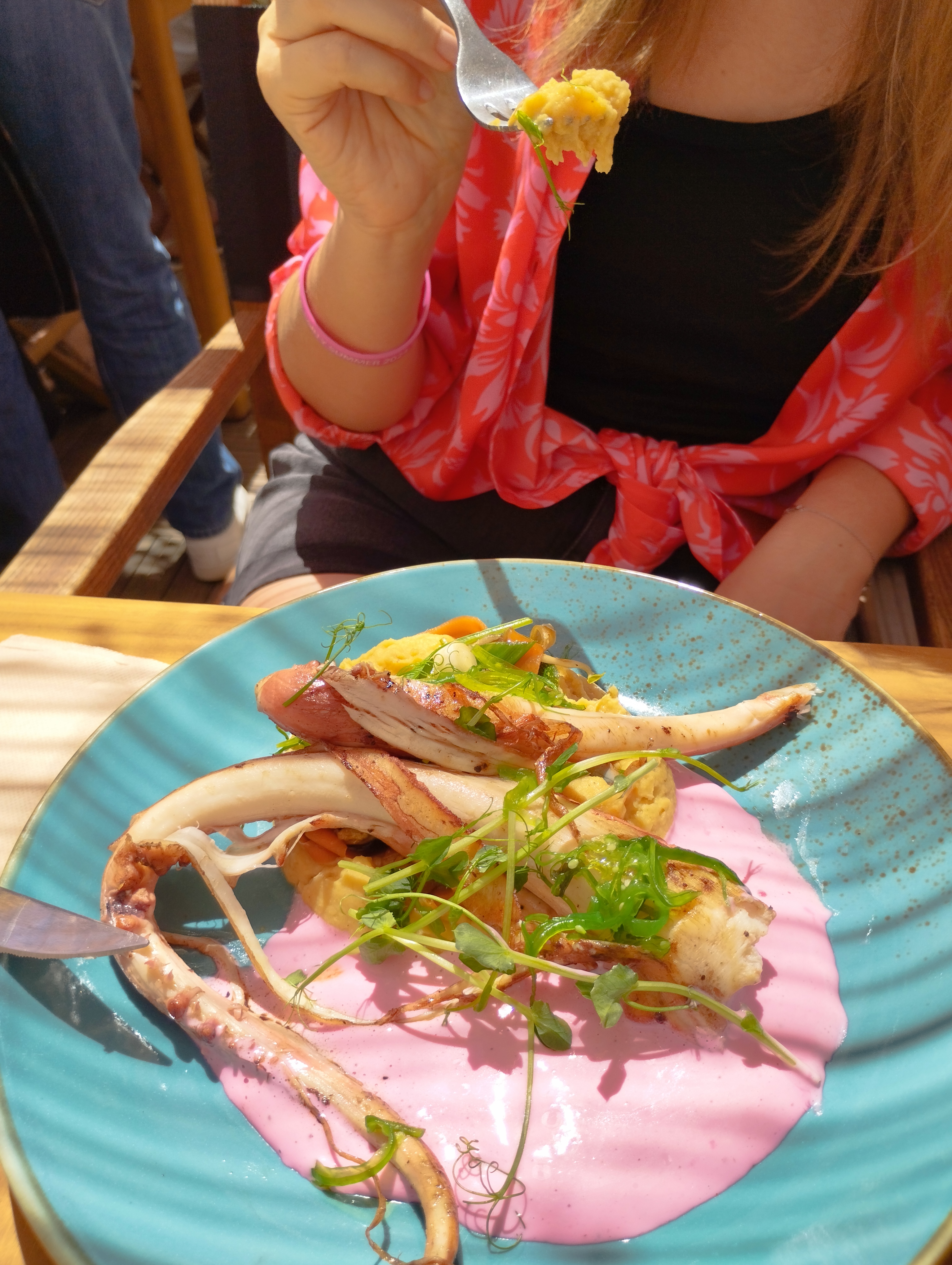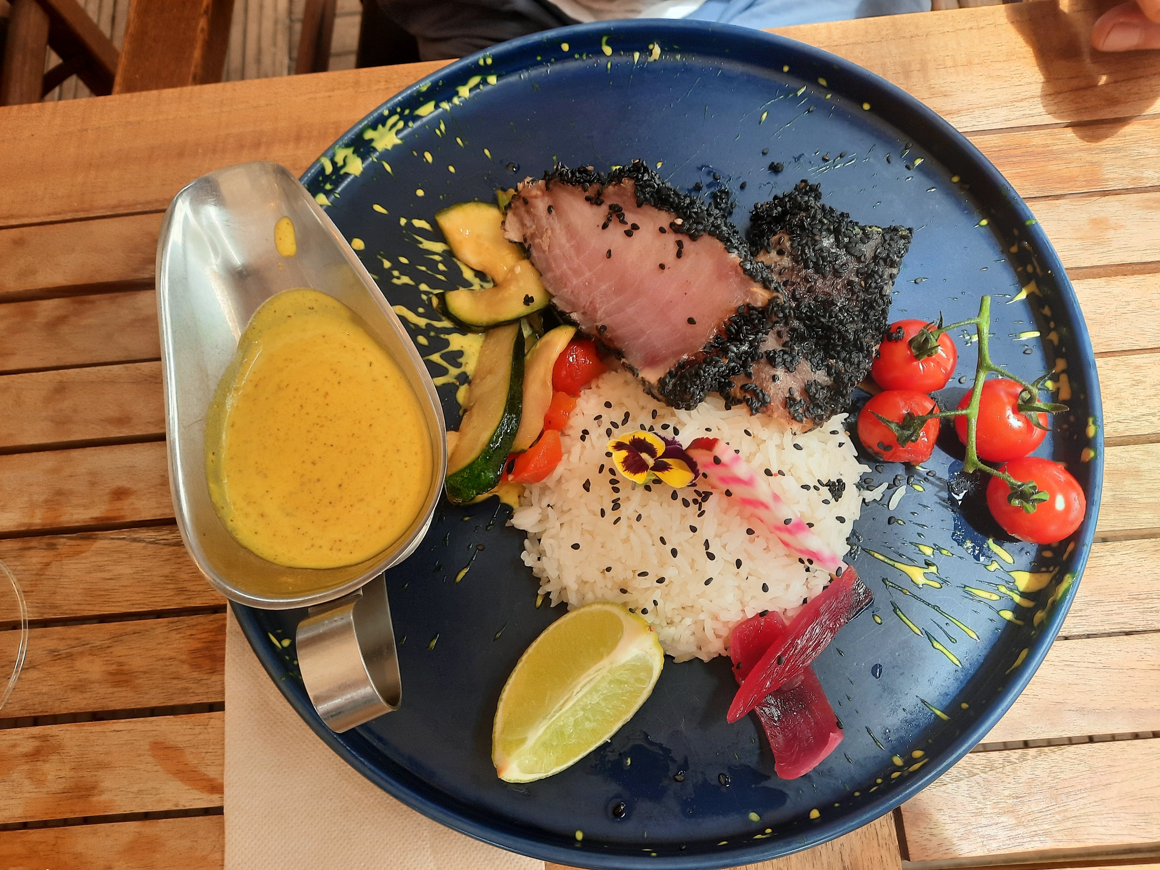 Expérience gâchée par une confusion lors de la commande. Le poisson du jour était censé être du loup de mer. Il s'est transformé en dorade dans l'assiette sans que l'on soit prévenu. Les fritures de calamars sont excellentes (je recommande). Les plats sont pas mal mais la qualité n'est pas toujours au rendez-vous (pour le tartare d'espadon, les frites sont trop huileuses, les gambas sont trop cuites dans le wok thai et la dorade est fade). Encore une fois les gens ne semblent pas prendre conscience que fumer même dans un espace ouvert peut vraiment être désagréable pour les personnes environnantes mais cela concerne ma majorité des restaurants de la côte. En résumé, l'équipe du restaurant est chaleureuse et il y a du potentiel mais les plats mériteraient à être mieux travaillés. Bon courage pour la suite.
