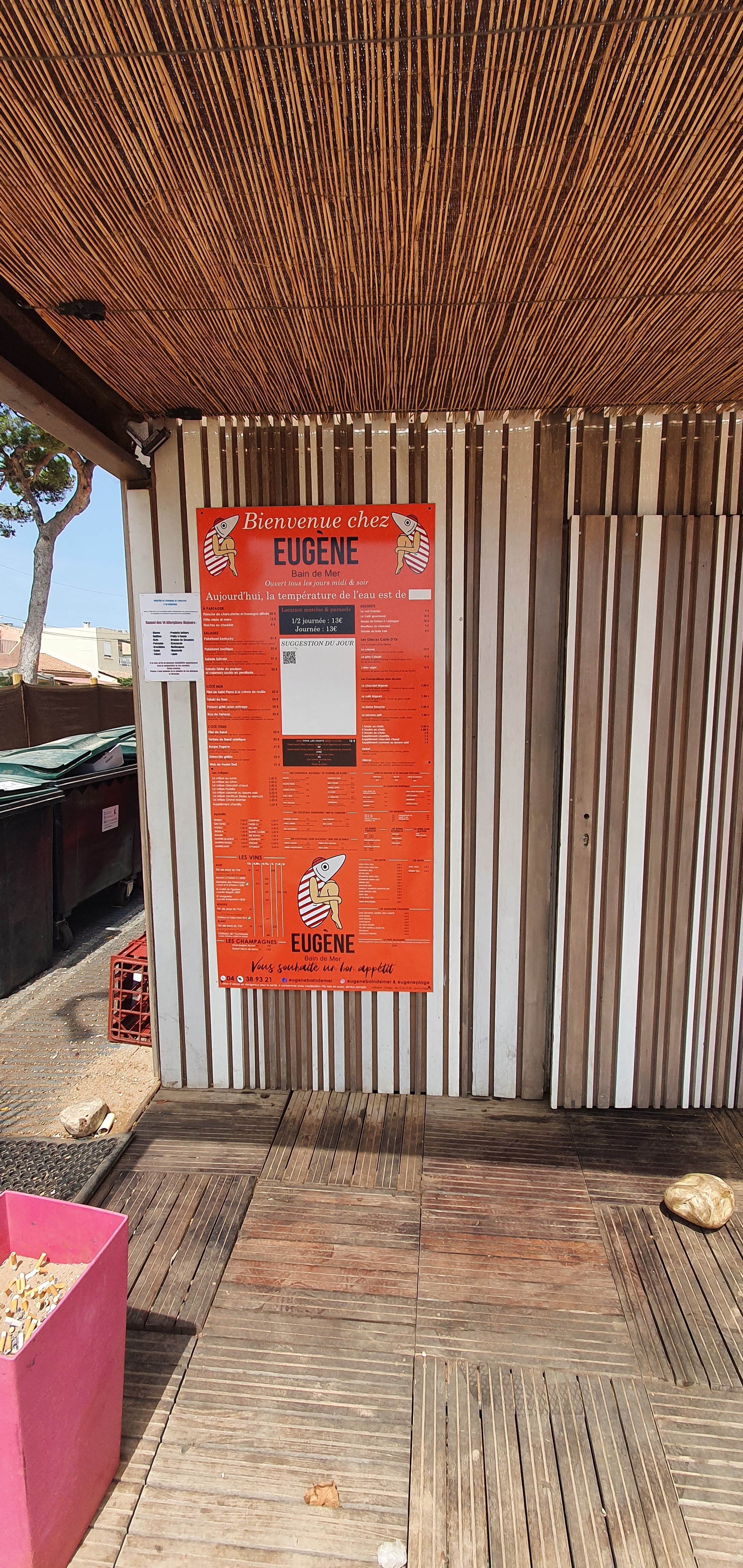 On recommande ! Nous avons passé une belle journée chez Eugène. Transat et parasol à un prix très raisonnable (15 € la journée), avec une mention particulière pour Marie, la plagiste, d'une grande efficacité et d'une amabilité très appréciable. Pour le resto à midi, satisfecit aussi pour l'équipe (en cuisine et au service), emmenée par un patron fort sympa ! Plats bien cuisinés, assiettes plus que correctes. Pour nous c'est sûr, le compte y est, on y retournera.
