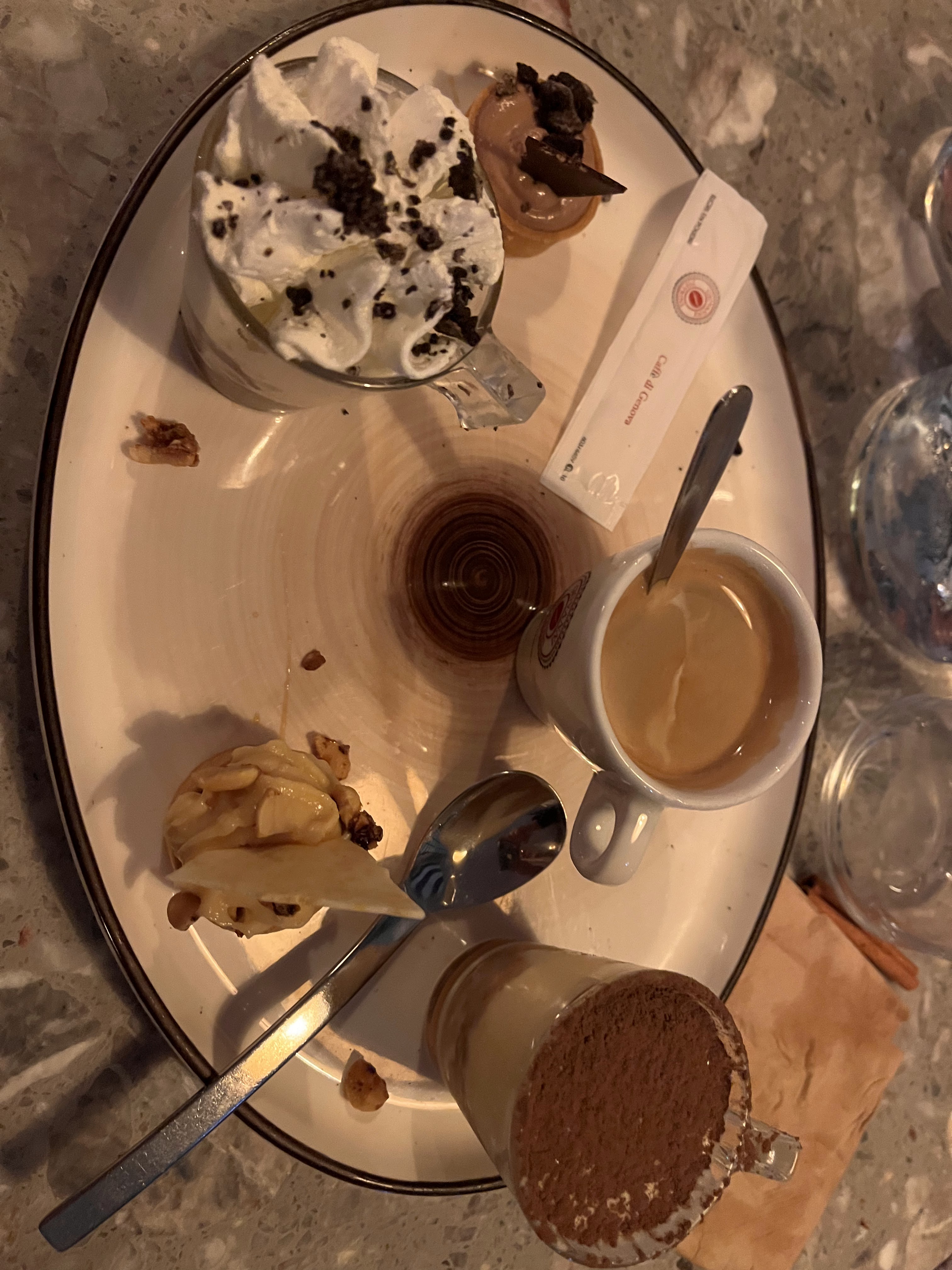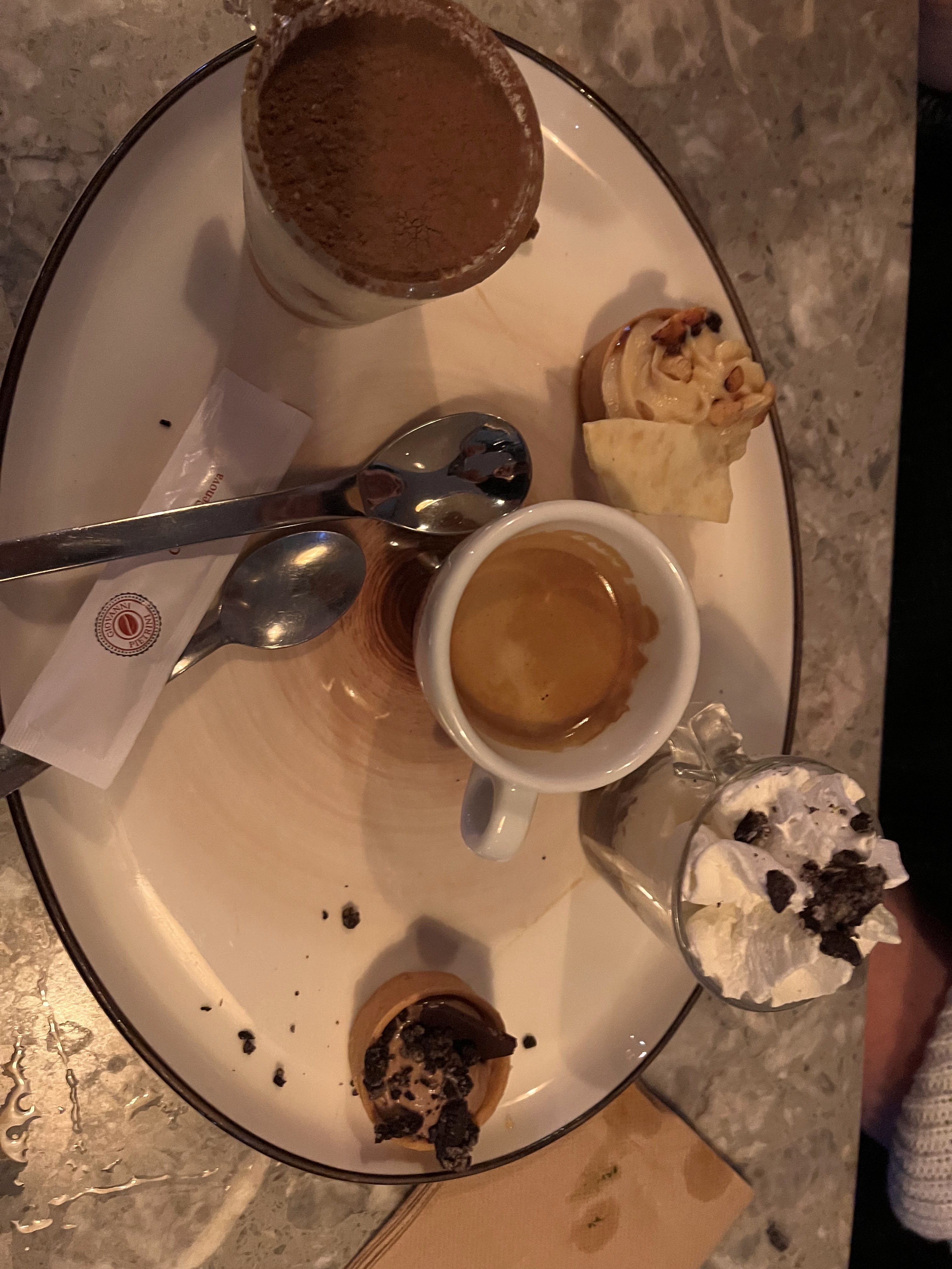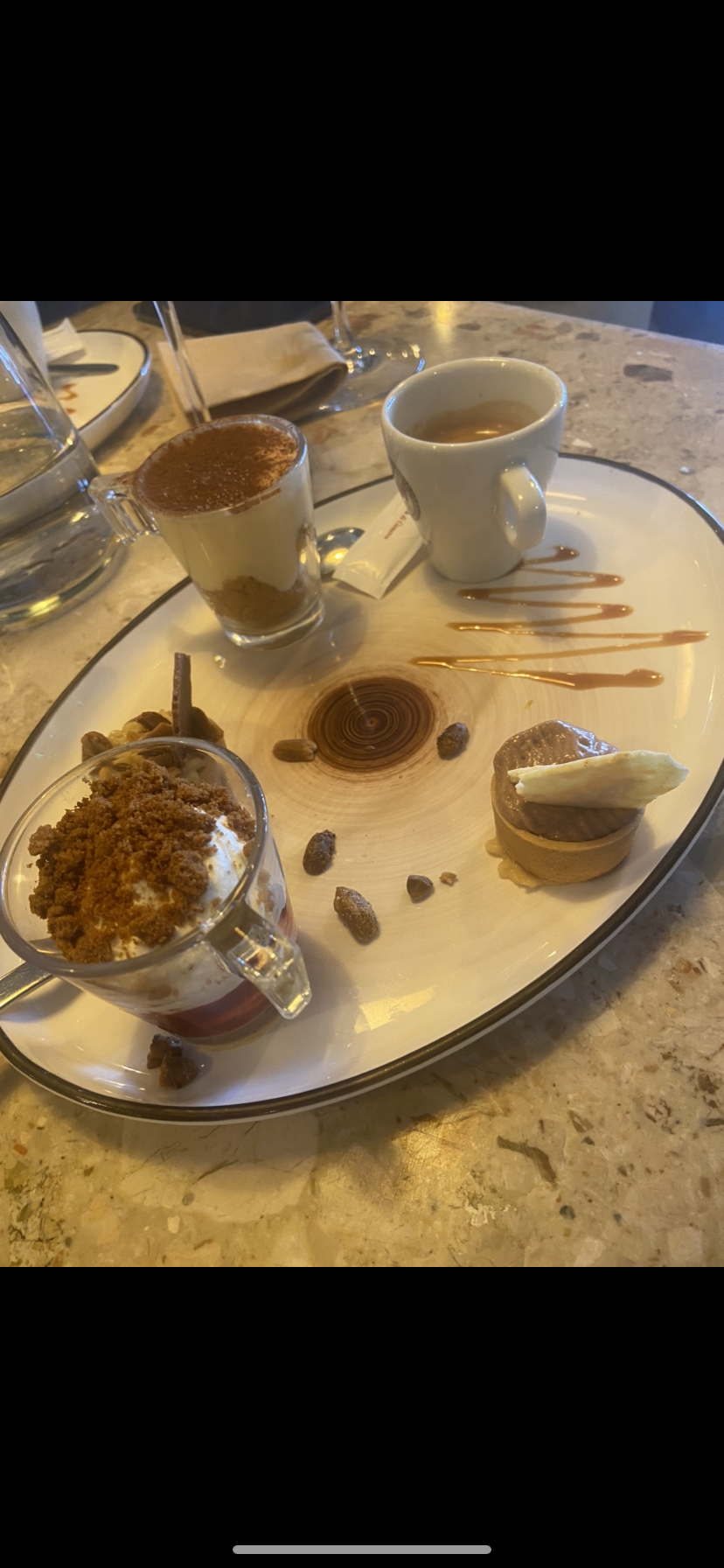 Je suis déçue spritz sans goût (certainement pas assez d'aperol et de prosecco), gnocchis frits pesto et truffe ( pas top et je n'ai pas trouvé la truffe), glaces artisanales décevantes chantilly très moyenne Les 3 autres convives étaient satisfaits Cela ne me donne pas envie de renouveler vu les tarifs Accueil convivial