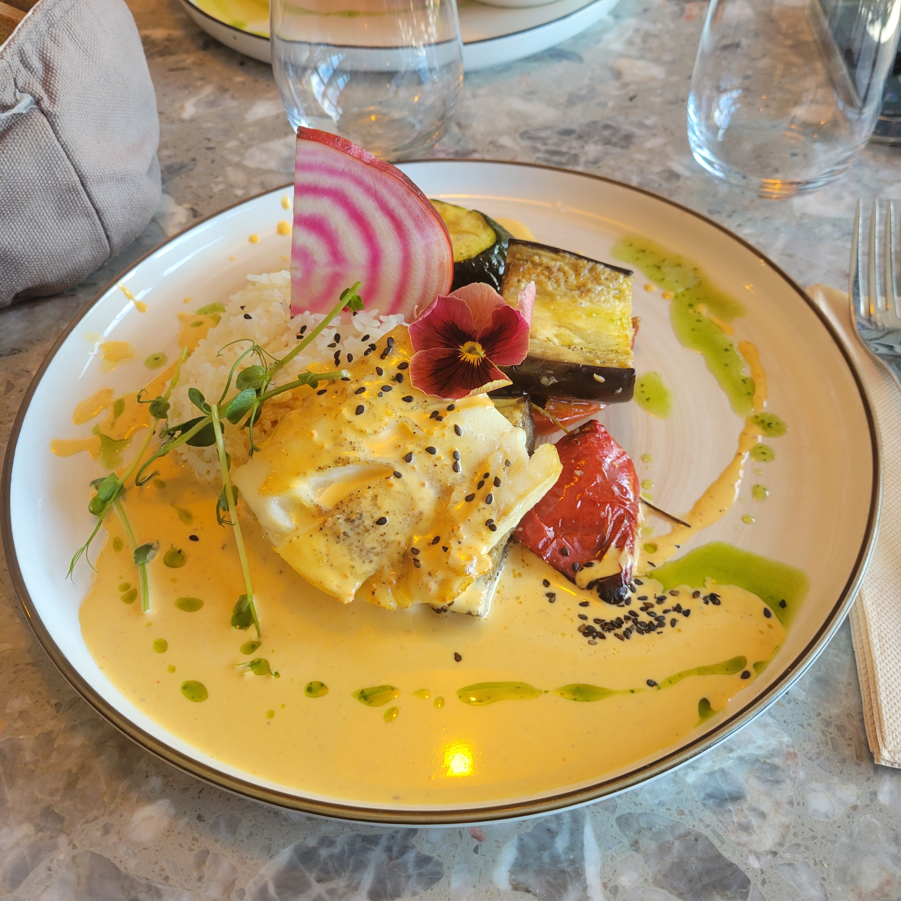 Très belle découverte, présentation soignée des assiettes, un poisson cuit comme il faut et très bon, cadre sympa, service efficace et sympathique. Nous y retournerons avec grand plaisir.👍
