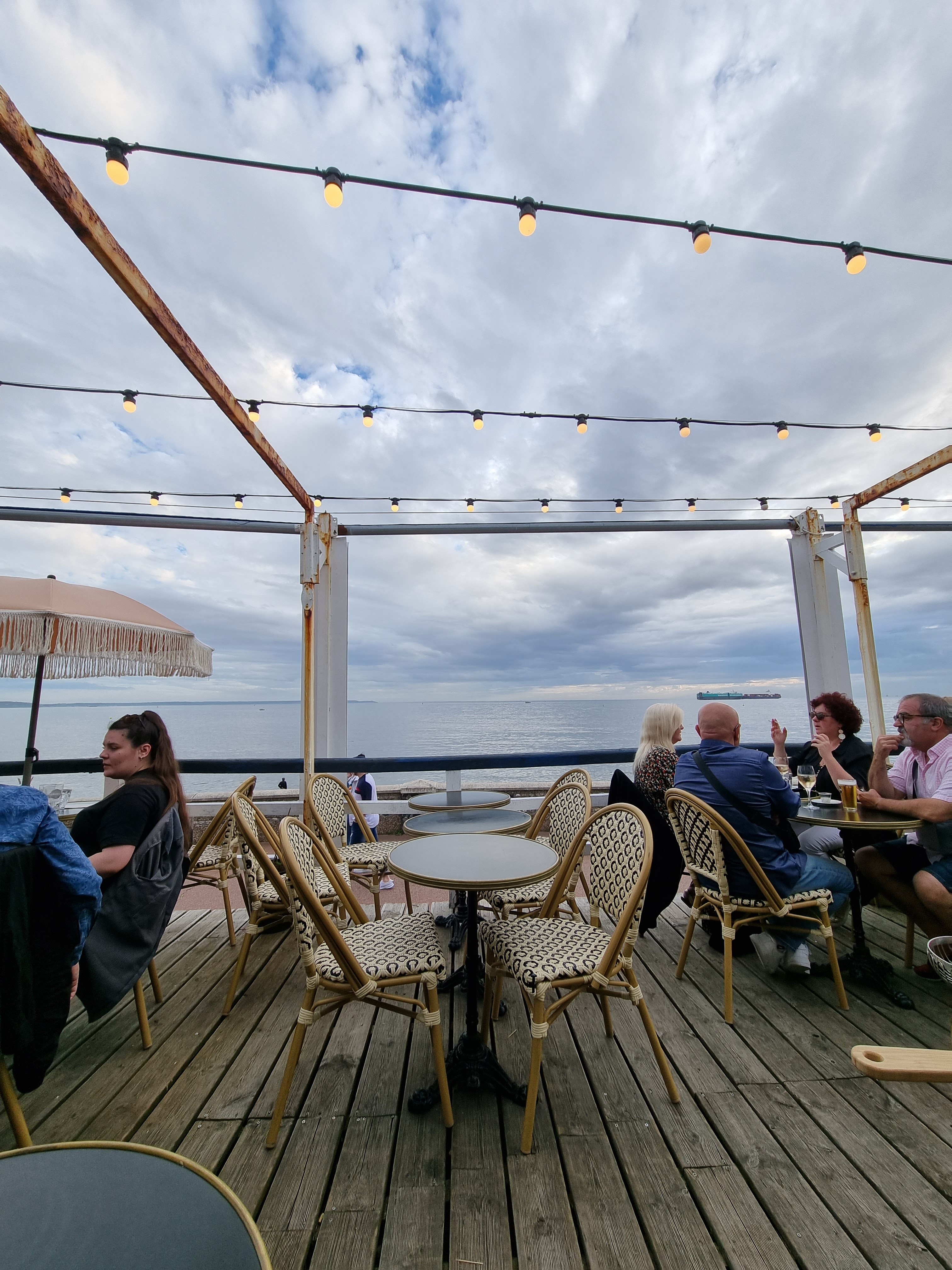 Superbe lieu de détente et de gastronomie pensé pour profiter au maximum de la vue mer! Le service est irréprochable du patron au serveurs. Nous n'avions pas réservé et ils se sont décarcassés pour nous accueillir. La decoration est splendide: ambiance maison de vacance en bord de mer à la belle époque, avec une mention spéciale pour le panachage des luminaires parfaitement réalisé. Attention: prix assez élevé tout de même...