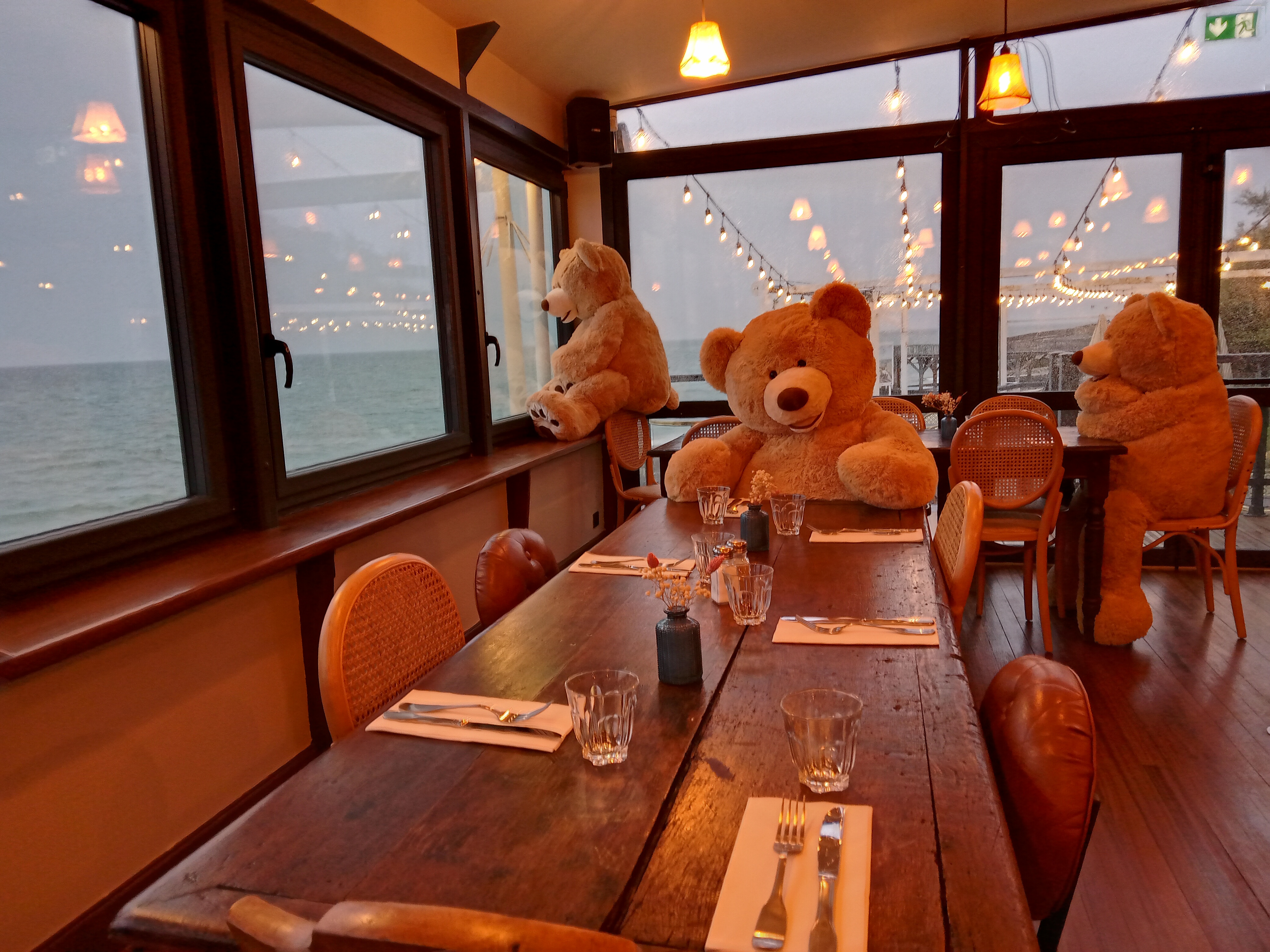 Restaurant avec mon mari ce soir, quel plaisir de manger face à la mer dans un cadre aussi charmant, belle décoration, équipe top et très bonne nourriture ! Petit clin d’œil pour les nounours qui nous ont tenu bonne compagnie tout au long du repas !