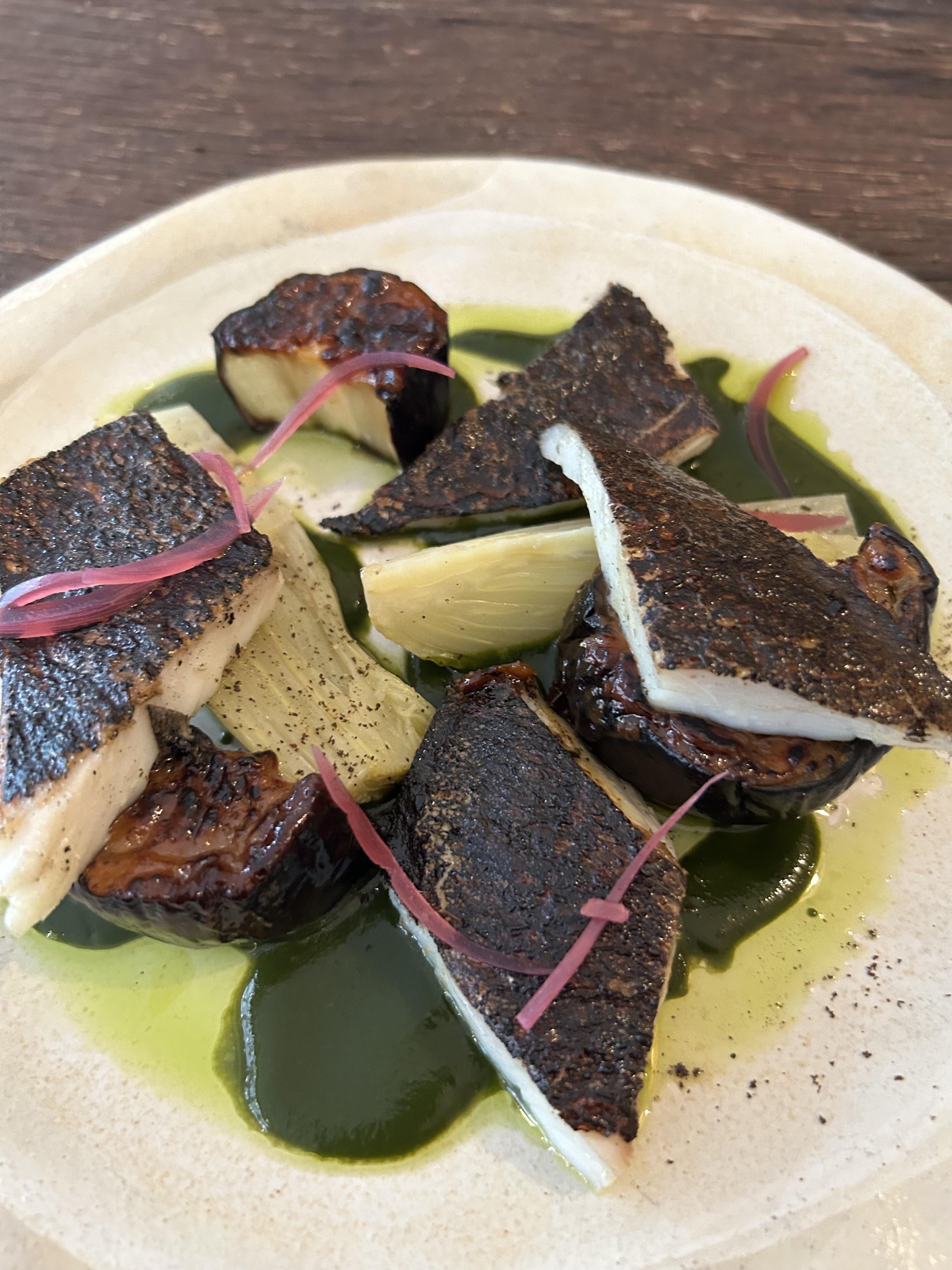 Joli restaurant avec une cuisine de saison fraîche travaillée minutieusement par le chef avec de bons produits. Beaucoup de cuisson au barbecue japonais (miam), très jolies assiettes. Une belle carte de vin vivant. Service sympathique .