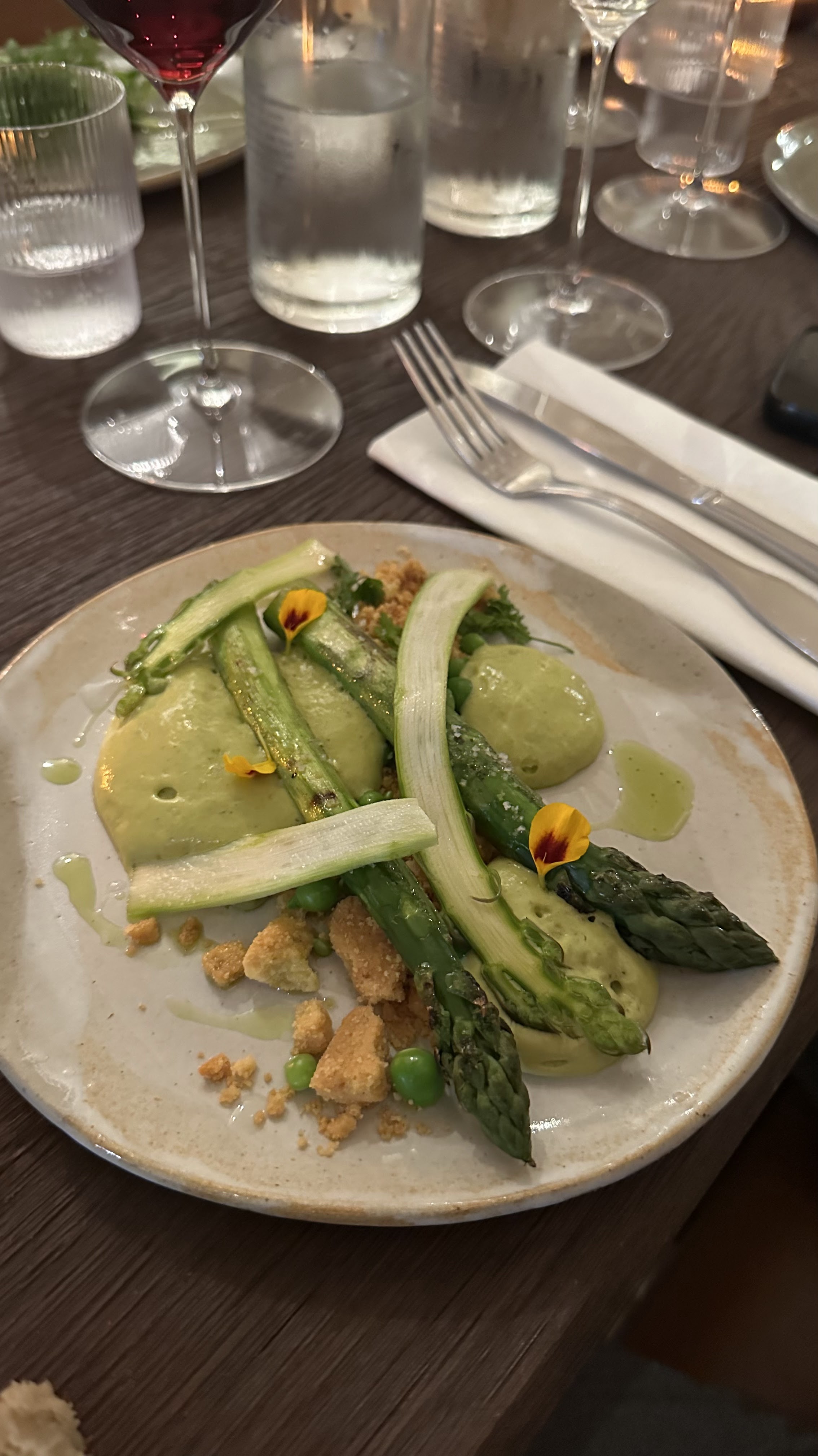 Superbe adresse ! Les plats sont tous excellents et adaptés à tous les goûts (options végétariennes), le décor comme l'accueil très chaleureux. J'avais déjà été séduite par la carte du midi et ma première impression s'est que plus confirmée avec la carte du soir. Mention spéciale aux asperges grillées (en photo) ainsi qu'à la carte des vins, accompagnée des conseils du gérant. J'y retournerai sans hésitation