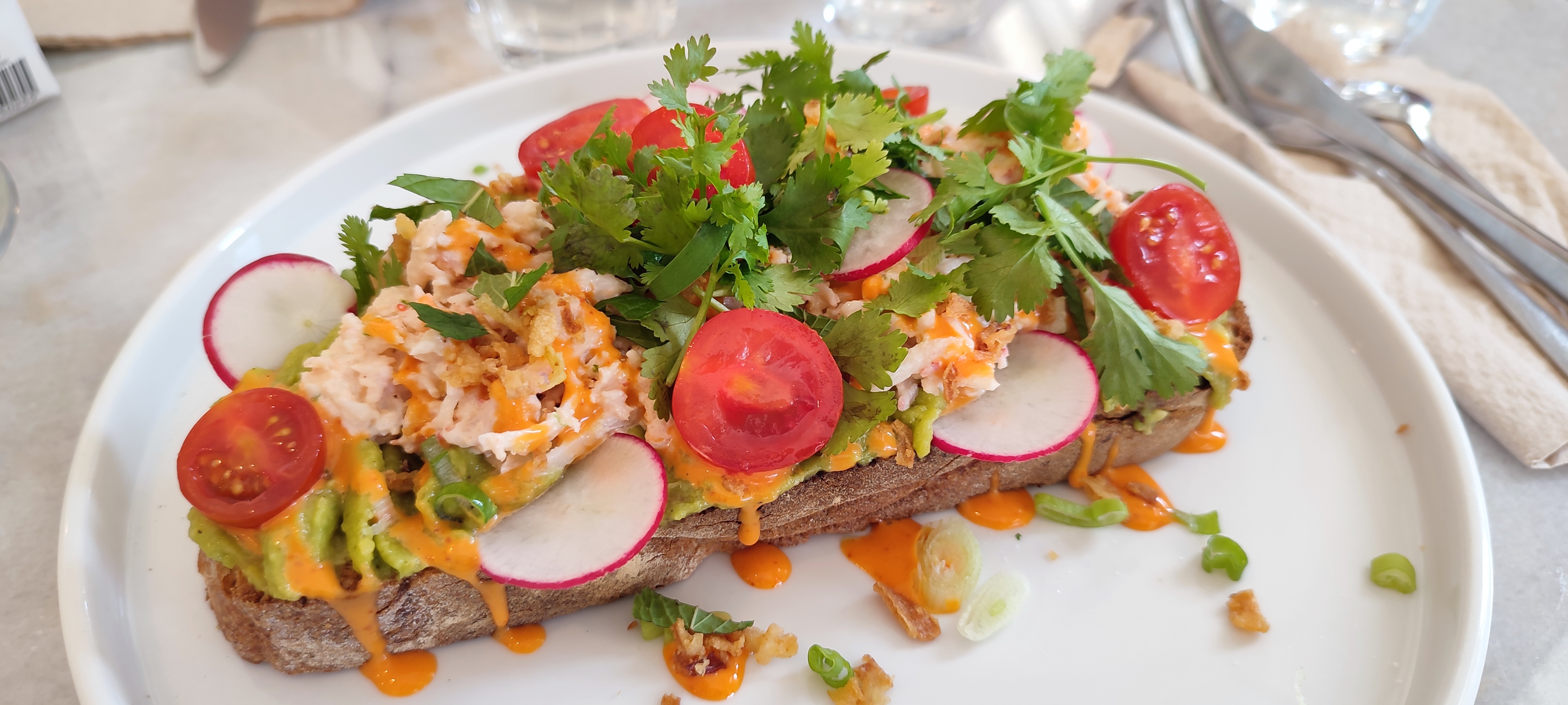 Brunch à Menton. Nous avons marché un très long moment (assez éloigné du centre de Menton/du marché). Le lieu est sympa, il ne prend malheureusement pas de réservation, dommage. Peut-être n'ai-je pas fait les leilleurs choix sur la carte, mais j'ai malheureusement été un peu déçue de mon expérience. J'ai pris un Avocado toast végé qui manquait de saveurs, un banana bread un peu étouffant me laissant un goût pas très agréable en bouche. Le dirty brownie était quant à lui très bon, bien qu'un peu cher quand même (8€).