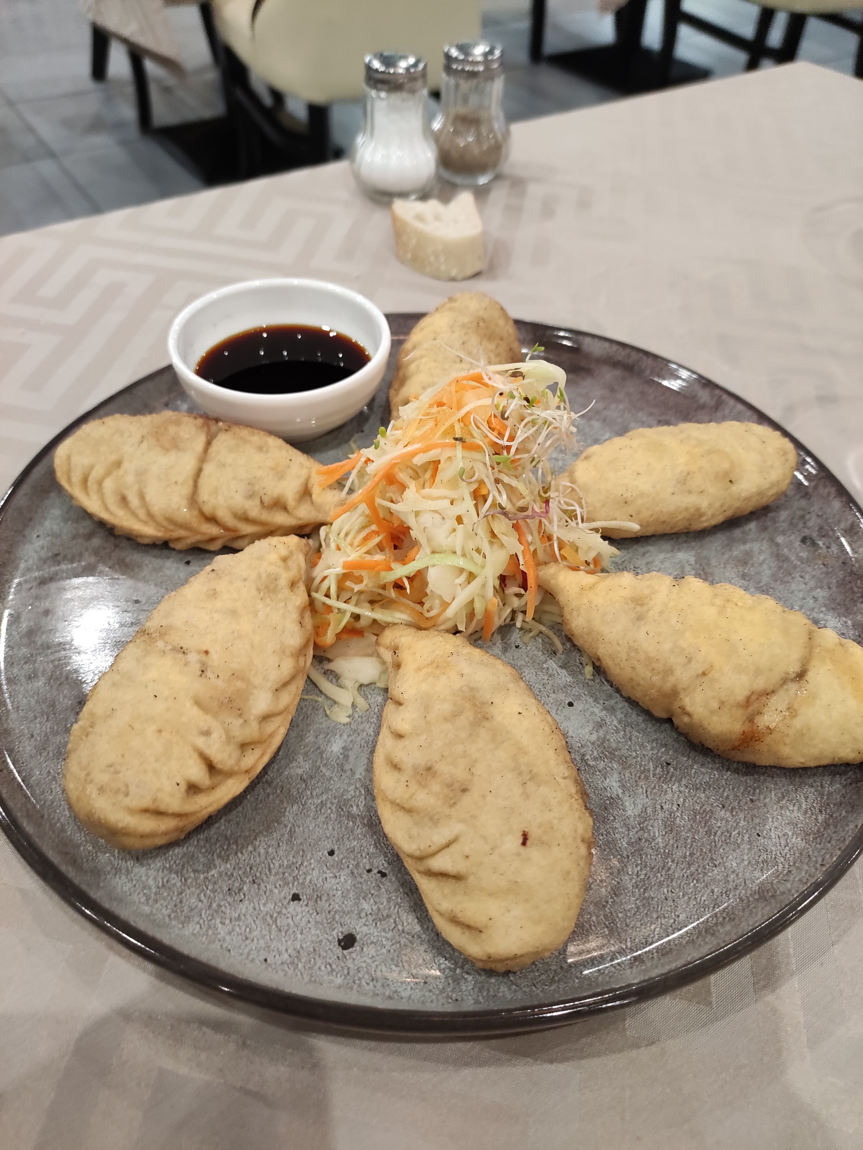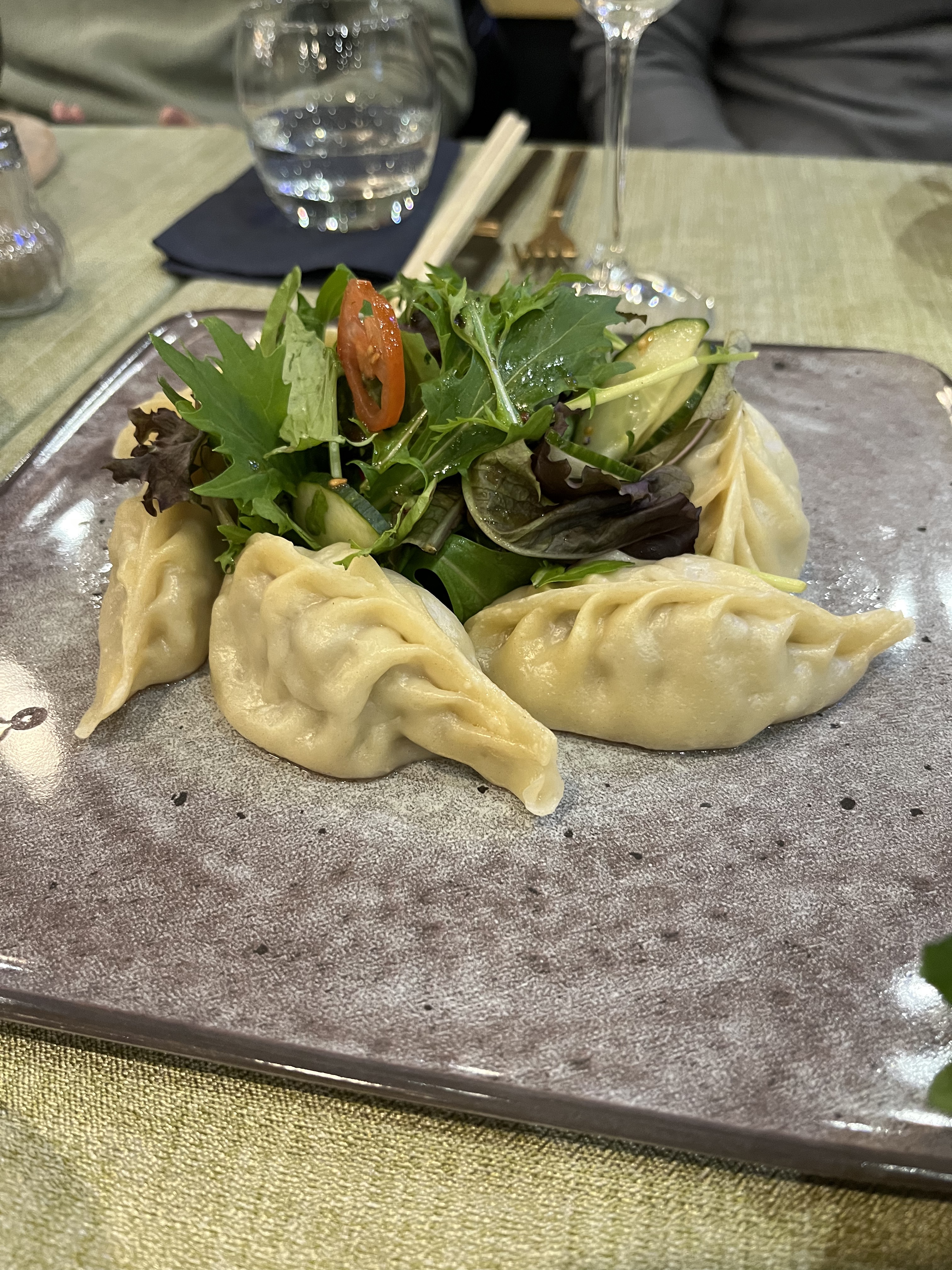 Clairement, ça ne vaut pas 4.9 étoiles !!! Au delà du fait que la carte est plus réduite que celle présente sur le site internet du restaurant, nous avons pris deux plats qui sont probablement passés par le micro-ondes avant d'être servis. Les khuushuur étaient caoutchouteux et le Tsuivan juste tiède et plus froid à l'intérieur avec de l'oignon brûlé qui emportait le goût...
