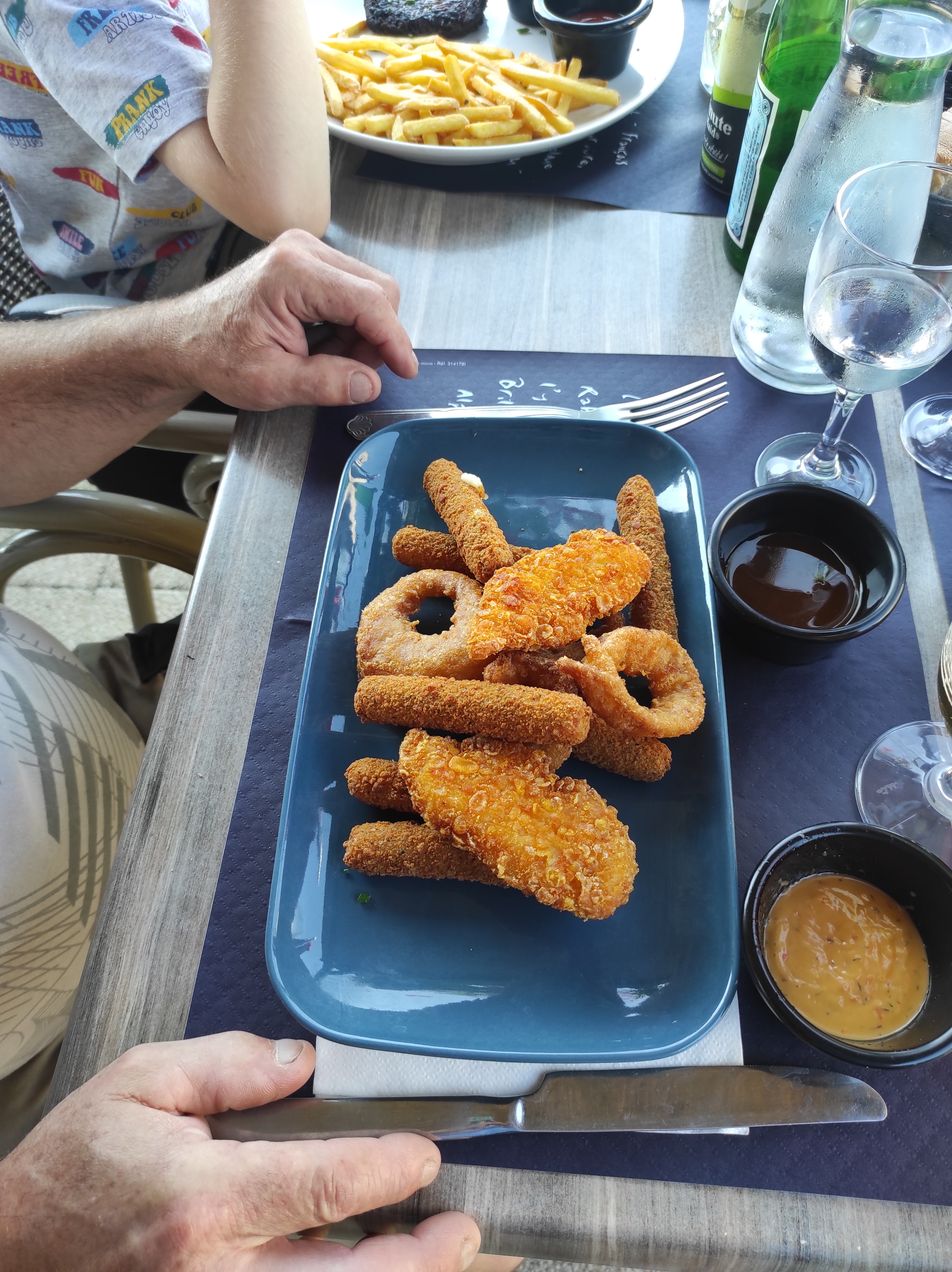 Excellent petit resto trouvé en allant au Parc Sainte Croix des salades excellente que du frais repas enfants choix et copieux Service impeccable et vue sur le petit port Bravo