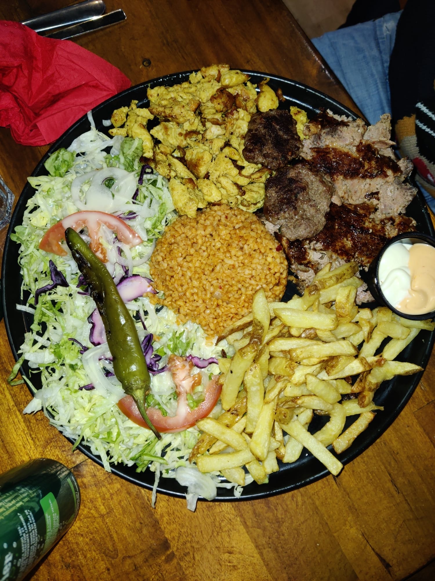 On a pris un kebab au four et une pide au fromage, je peux dire que la viande a un très bon goût et le pire au top! Les frittes sont de qualités avec une sauce mayonnaise travaillé avec des herbes. .. nous y reviendrons pour commander un skender et un kunefe.. On a Pas eu le temps de prendre des photos..