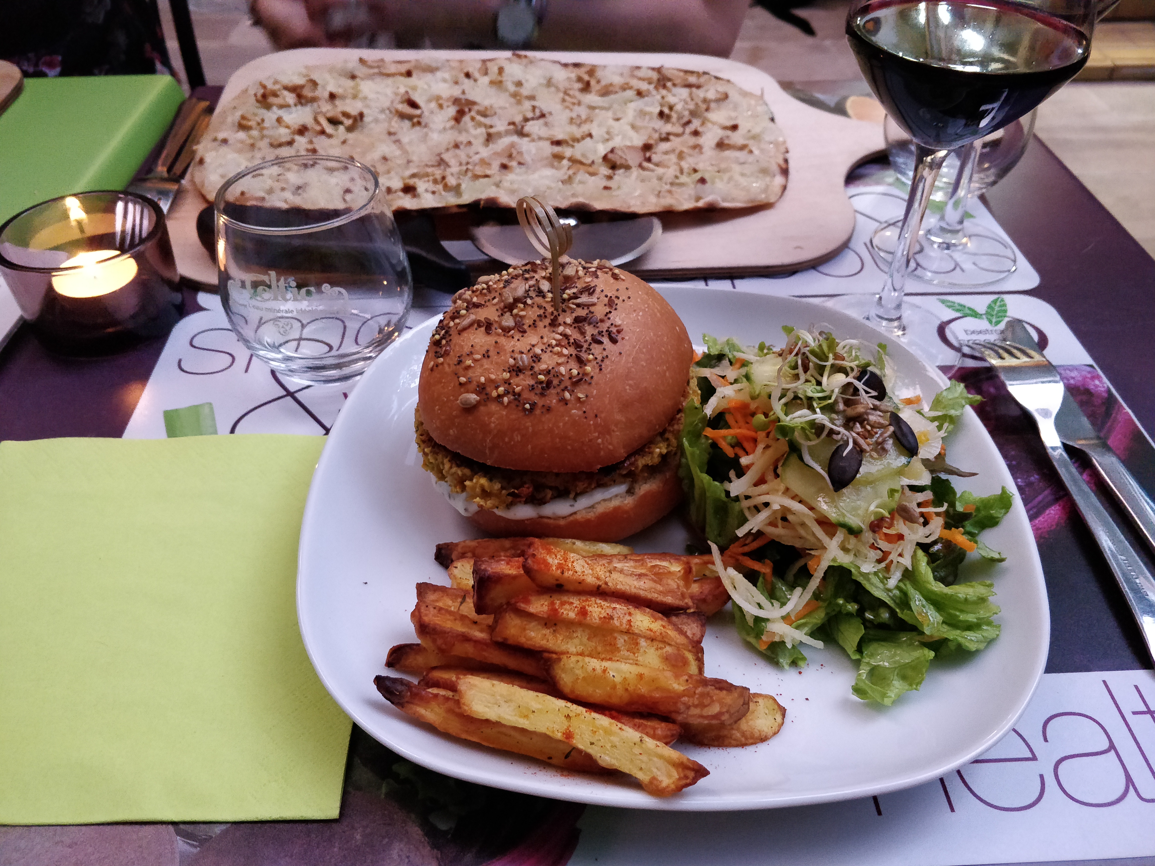 Une très belle adresse pour manger à Mulhouse. Le + : Végétalien - Bio - Local - Frais Un goût et une qualité qui vaut le détour - une équipe sympathique - décoration du lieu agréable. BURGER PARFAIT! Le - : Il manquait un peu de cuisson aux flamms - Pas de tarif étudiant