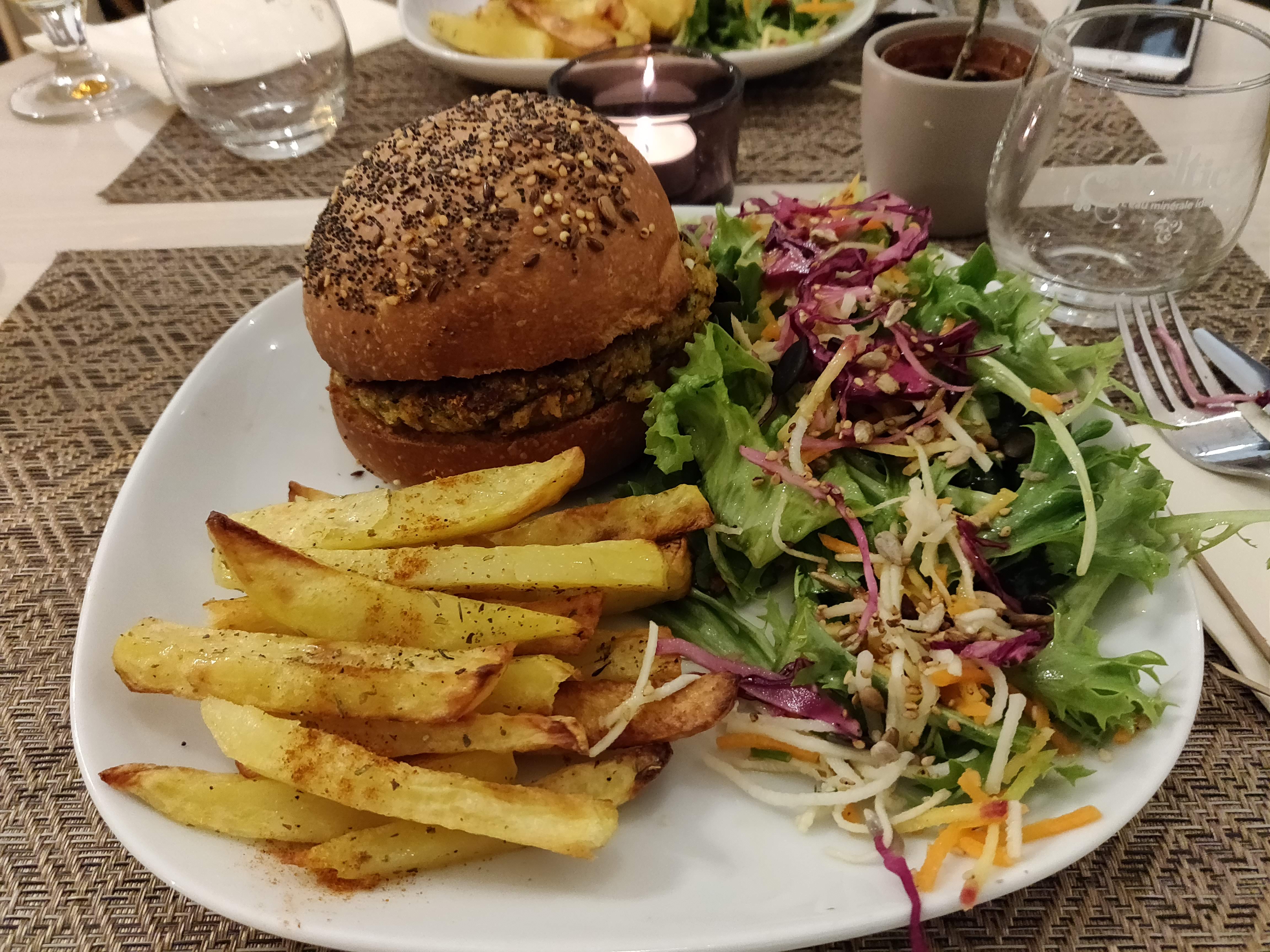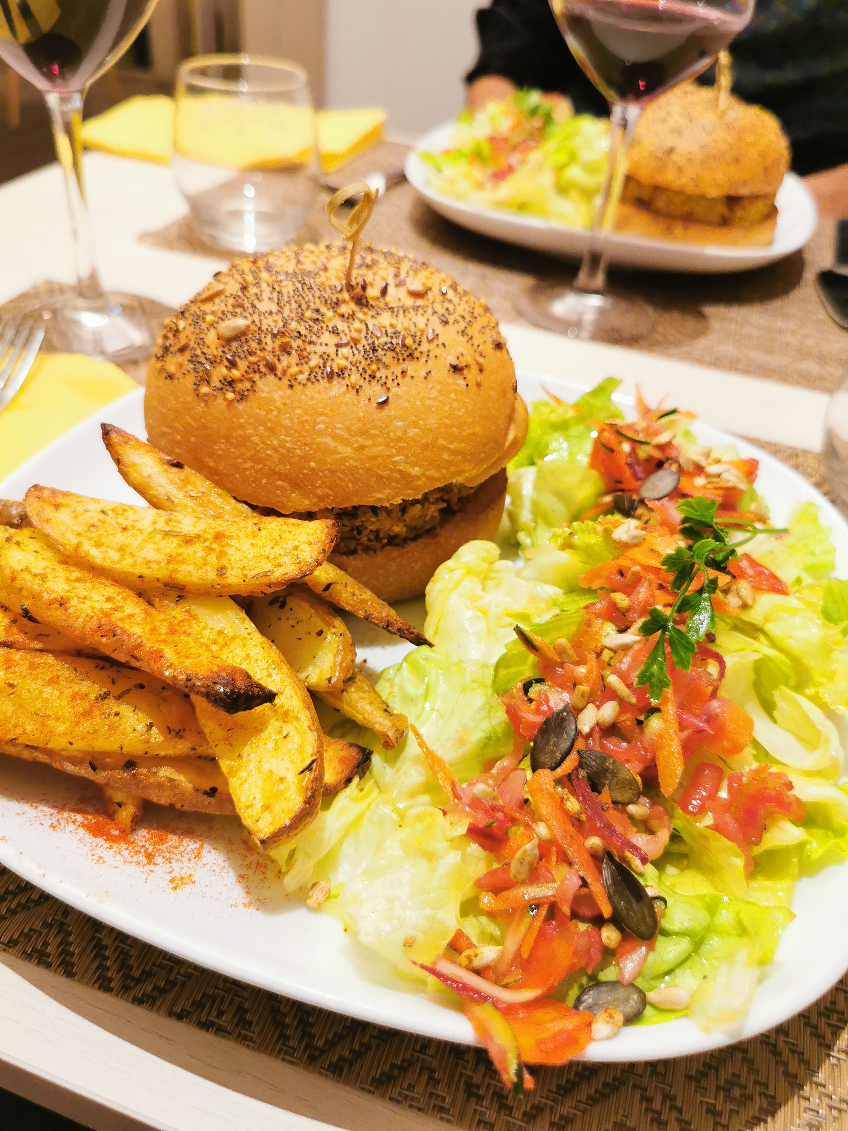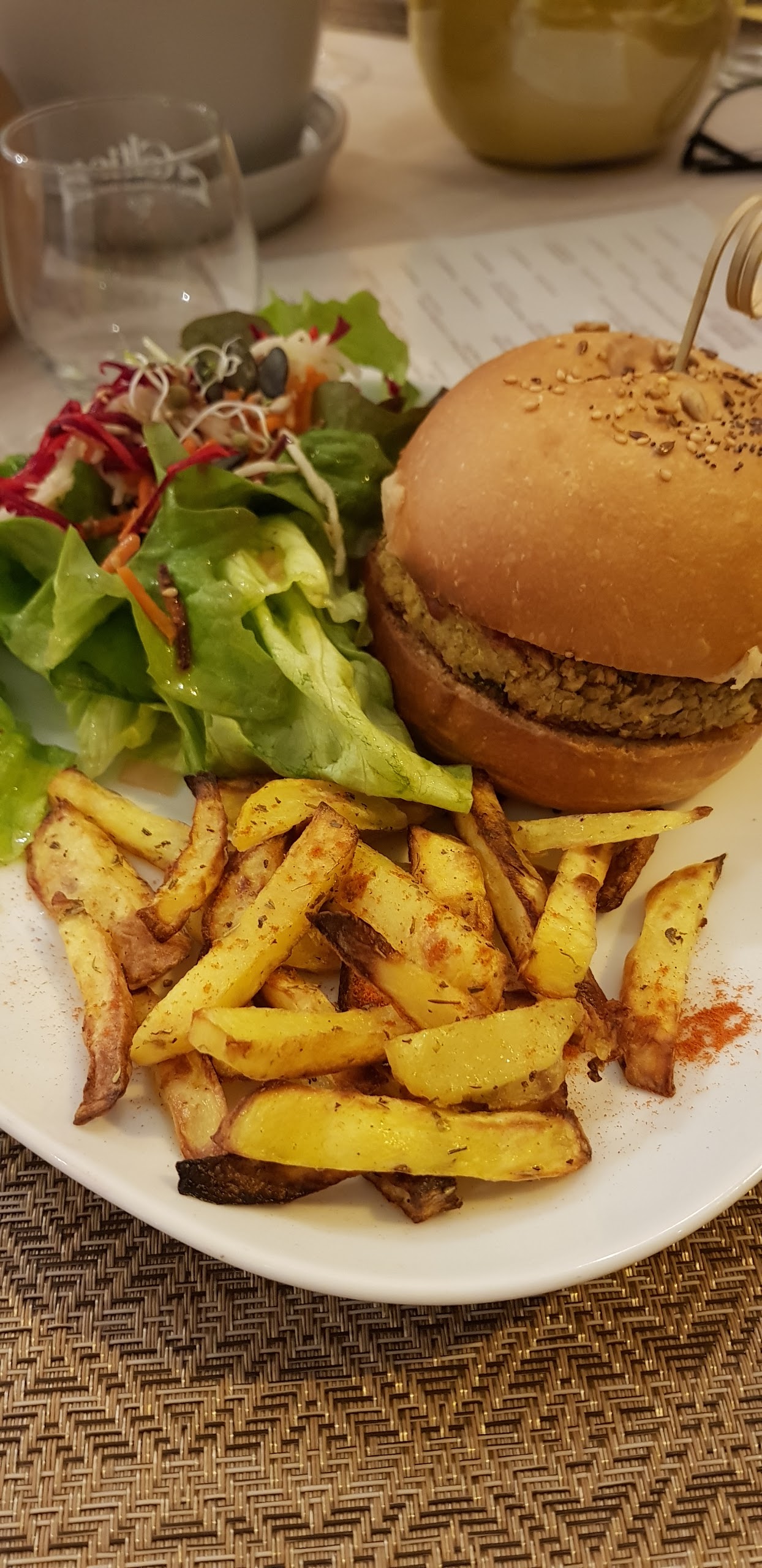 Burger Végan correct et bien fournis. Mais 26€ pour une eau et un Burger avec quelques frites et beaucoup de salade c’est un peu excessif.