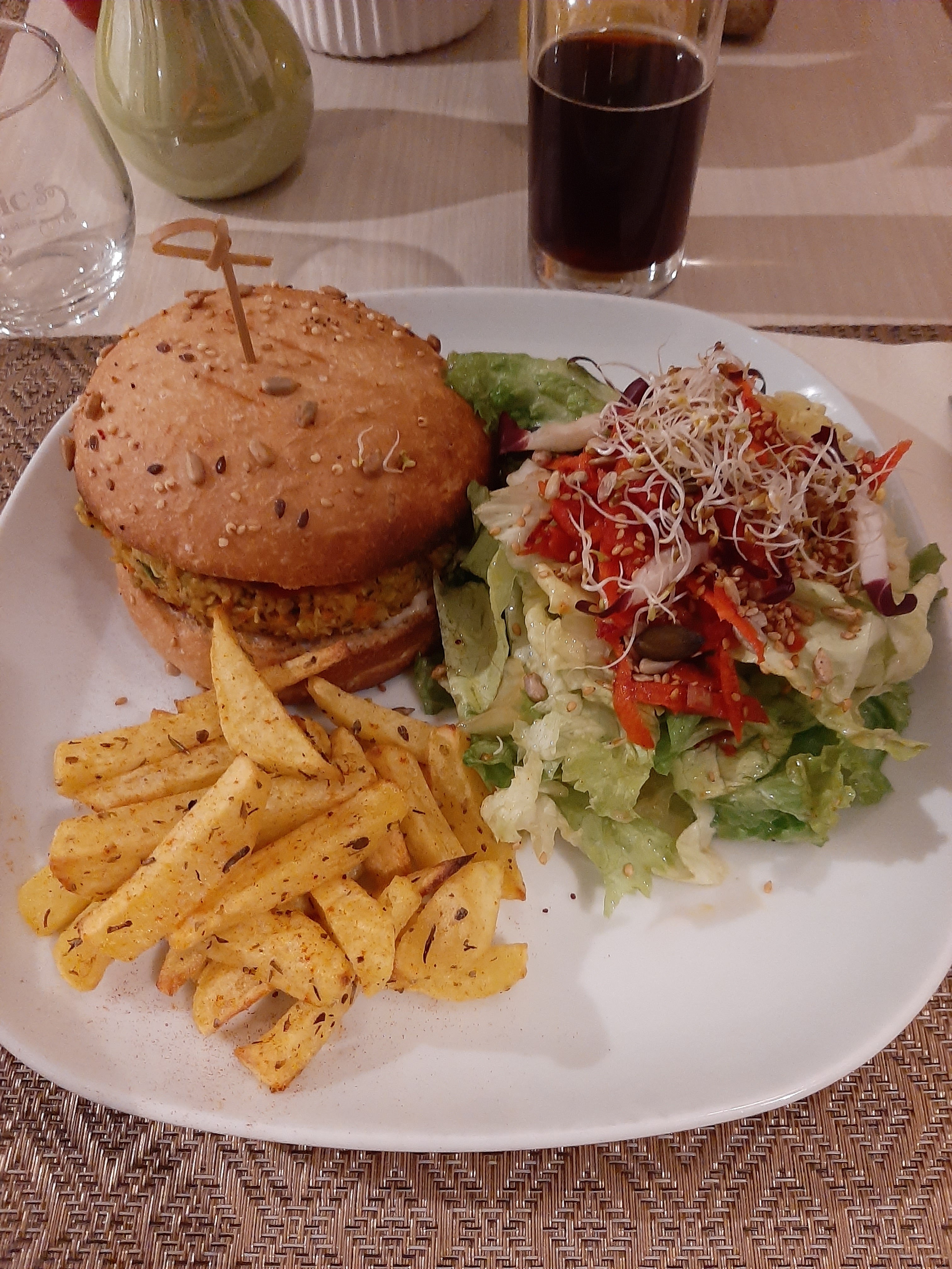 Les burgers vegan étaient très bons, tout comme les frites et la salade verte. Tout est fraîchement préparé et bon service.