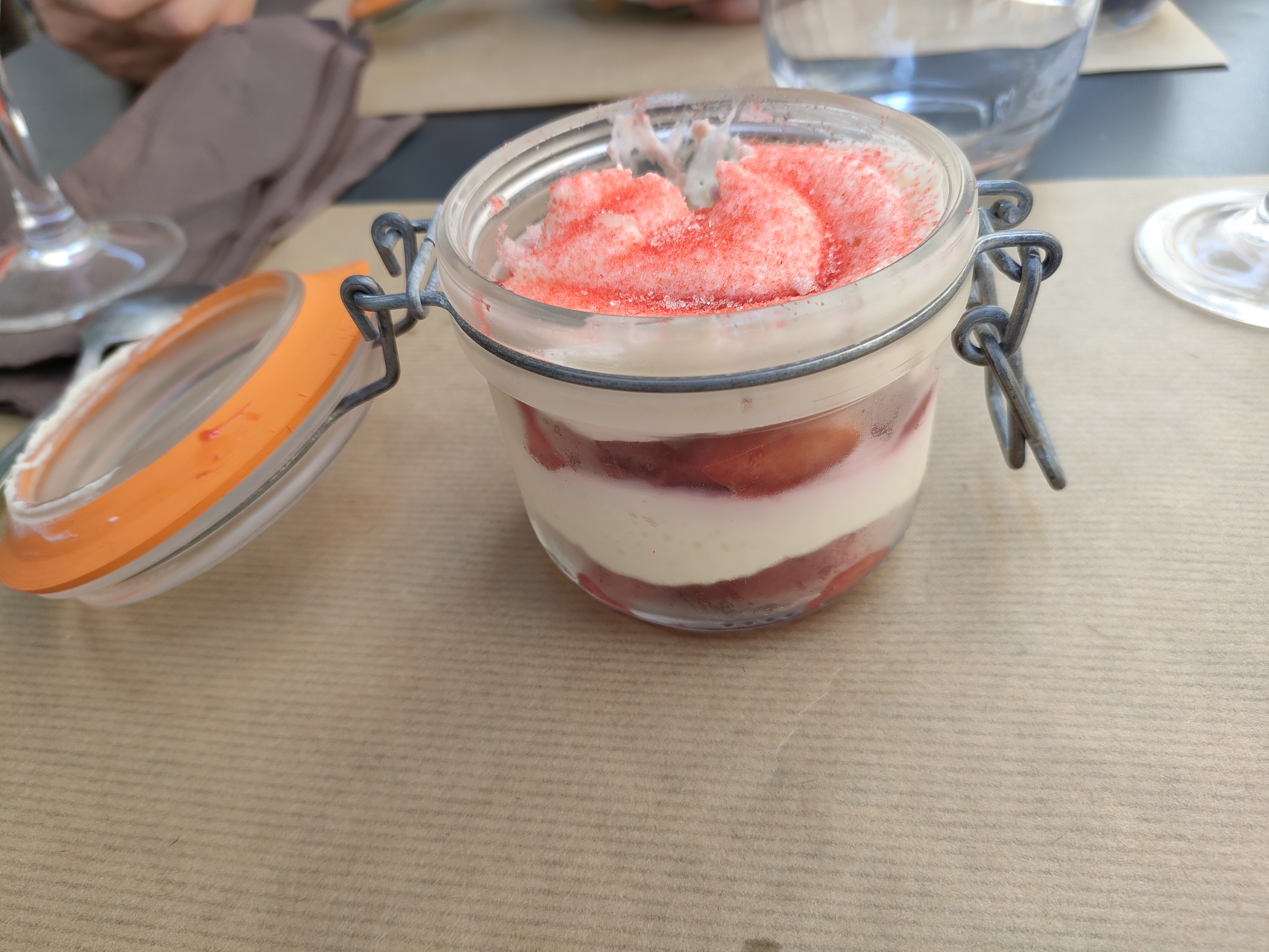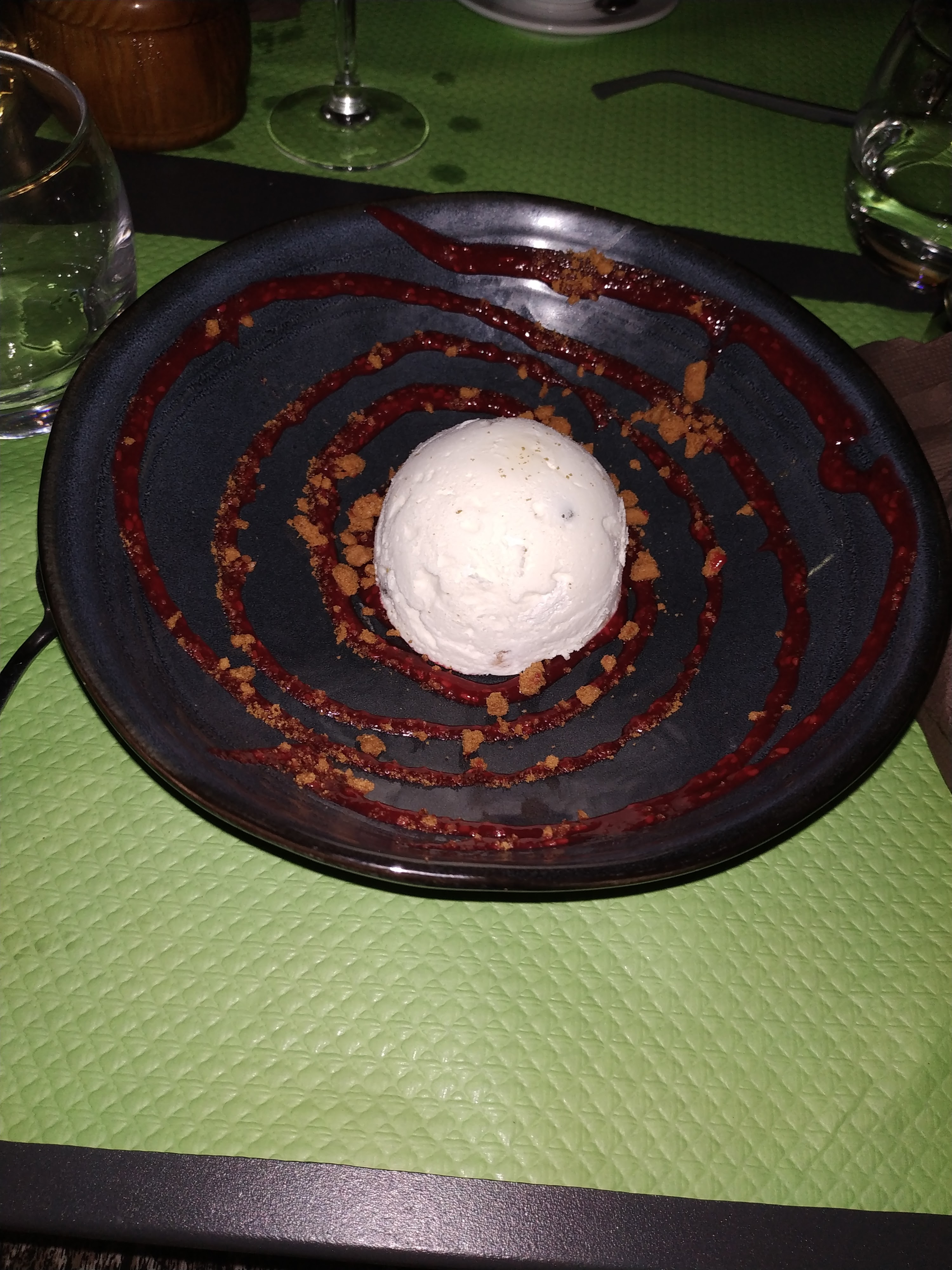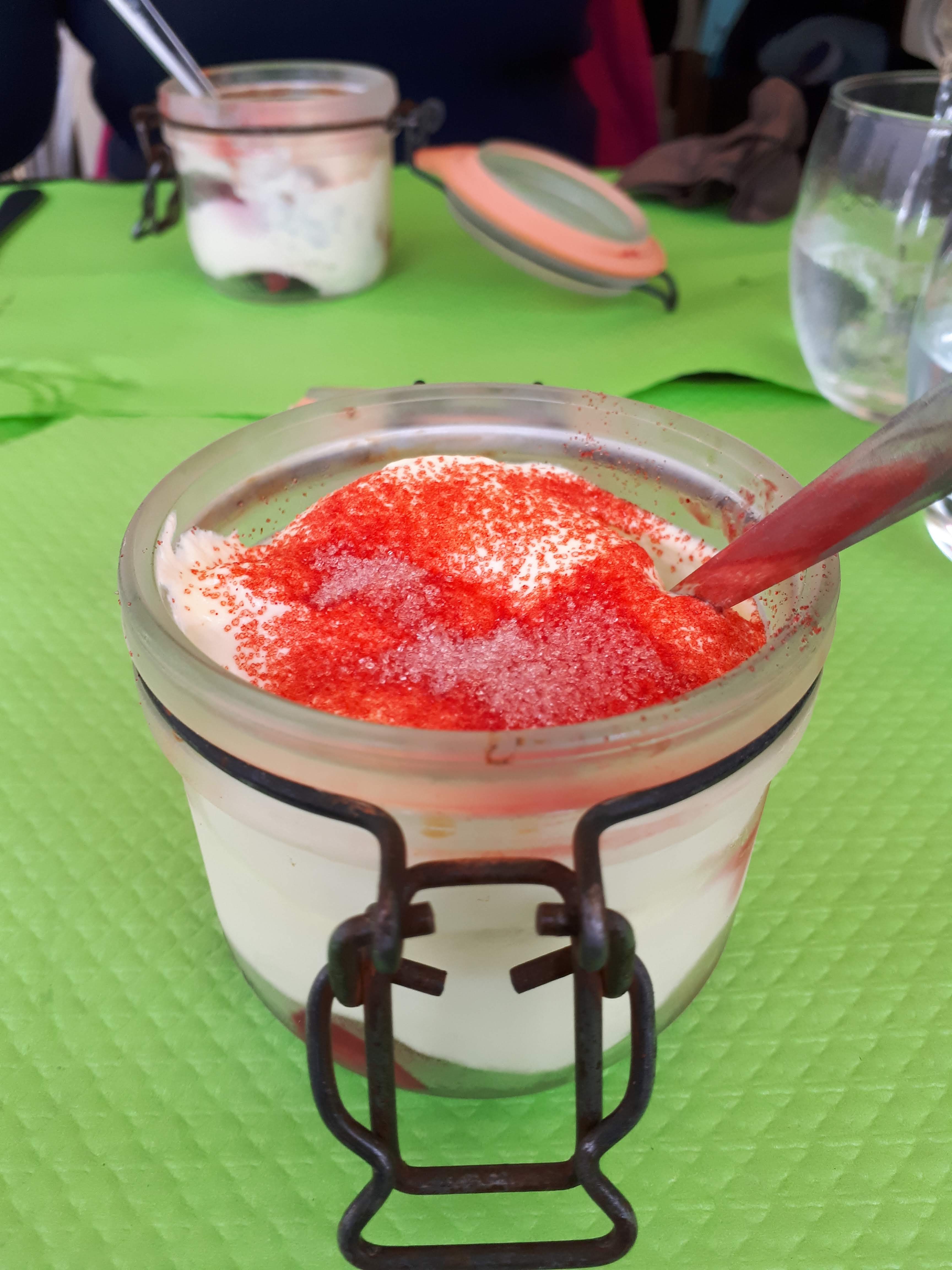 Moment très agréable, nous avons très bien mangé.... beignets de fleurs de courgettes 😋😋😋 .... tiramisu framboise 😋😋😋...