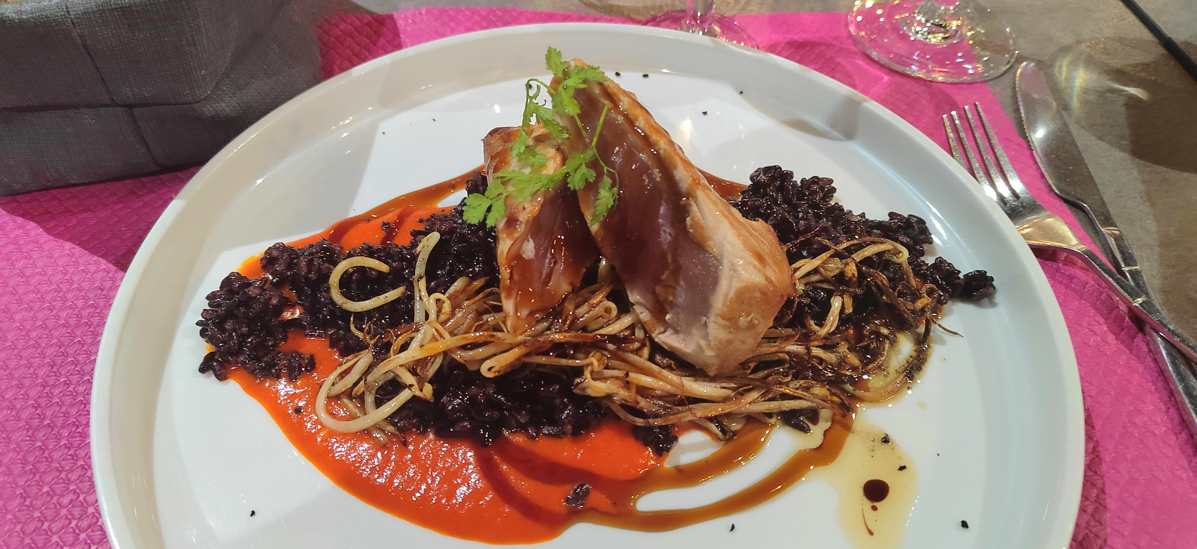 Je le recommande très très bien beau cadre personnel accueillant une belle carte avec du choix assiette préparation succulent je recommande