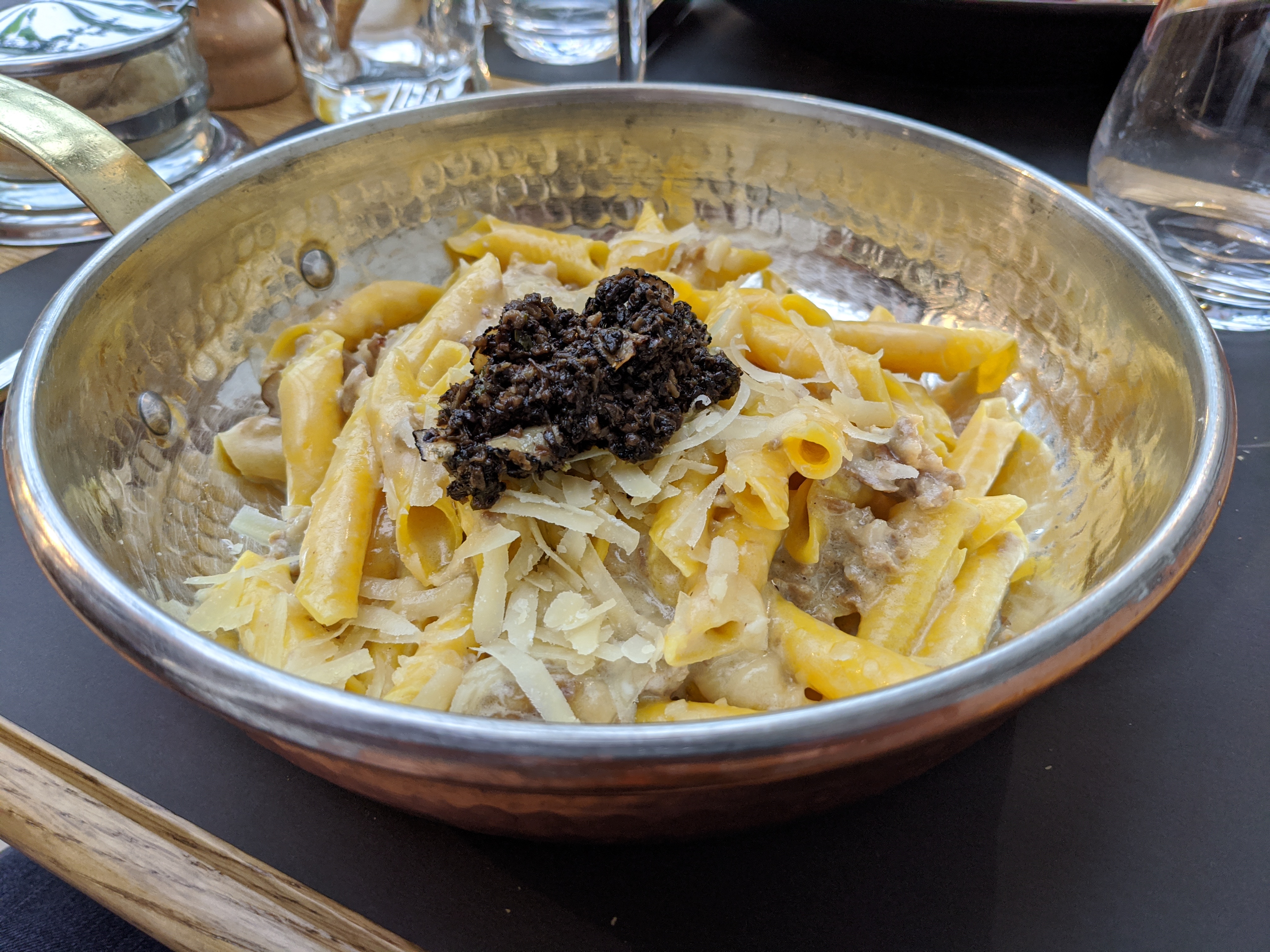 Mes pâtes a la truffe étaient excellentes Le service souriant et efficace Comme nous étions pressées, nous n avons pris qu un plat. On ne nous a pas forcées a consommer, c était agréable. A refaire