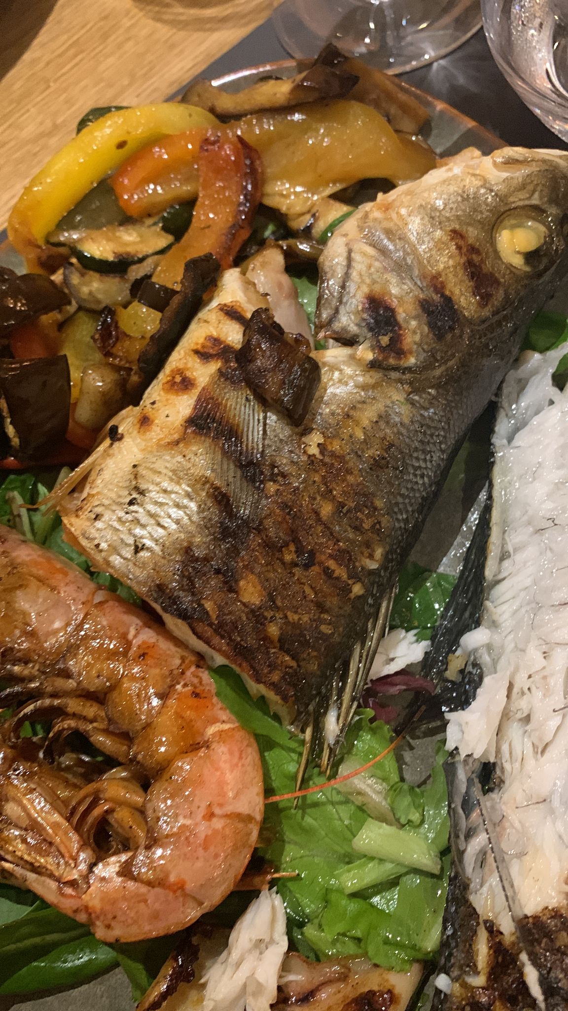 Nous avons commandé des Pizzas et des poissons ( bar et dorade) accompagnés de légumes grillés délicieux
