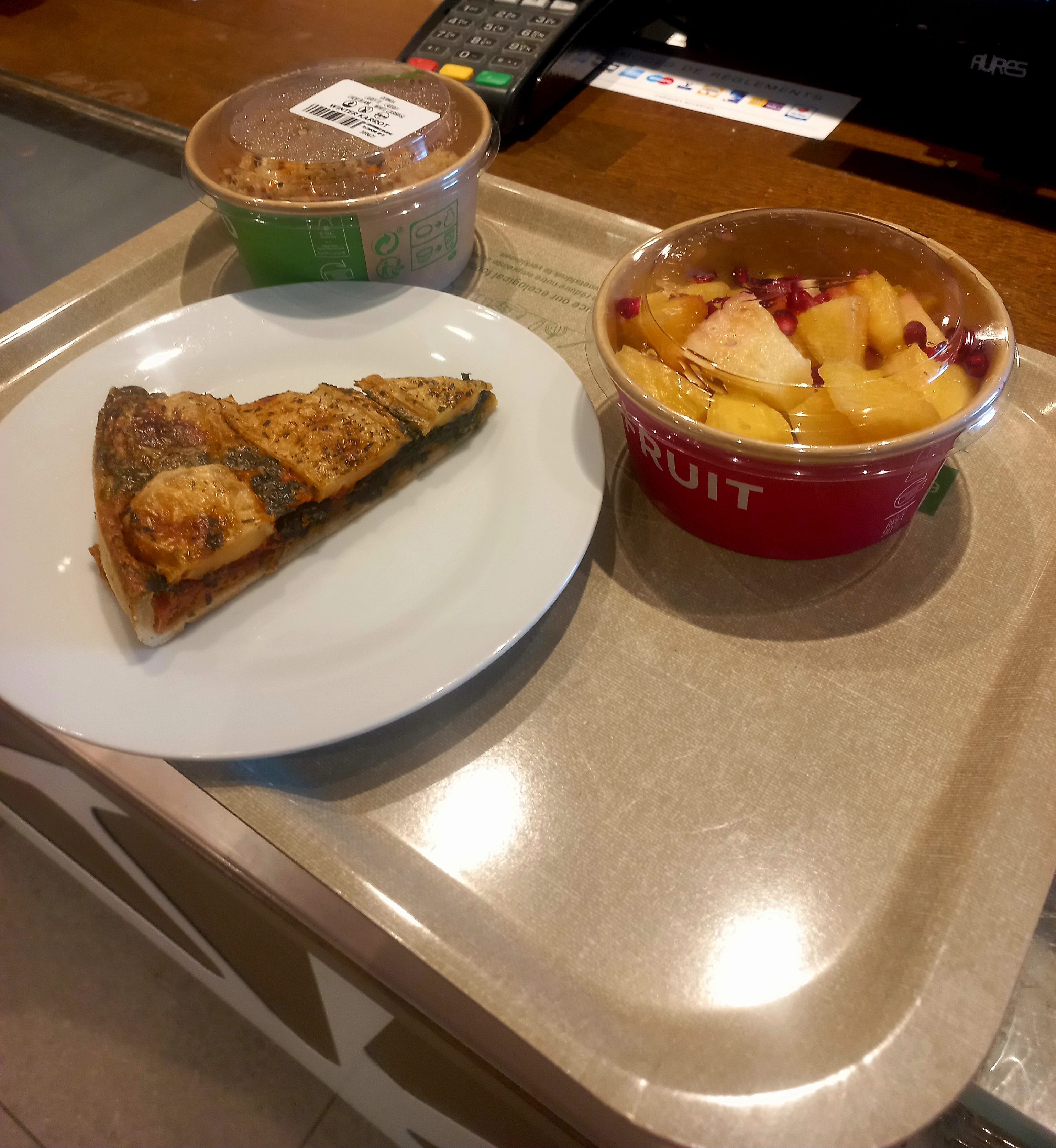 Je m'arrête pour déjeuner. Pas de plateaux à midi... je prends 1 soupe, 1 empanada, 1 dessert et1 café. Je demande 1 plateau à la caisse... je me fais envoyer sur les roses il n'y en a pas débrouillez vous ! OK bienvenue à Paris! Quel accueil. Je ne reviendrais pas chez vous c'est sûr !