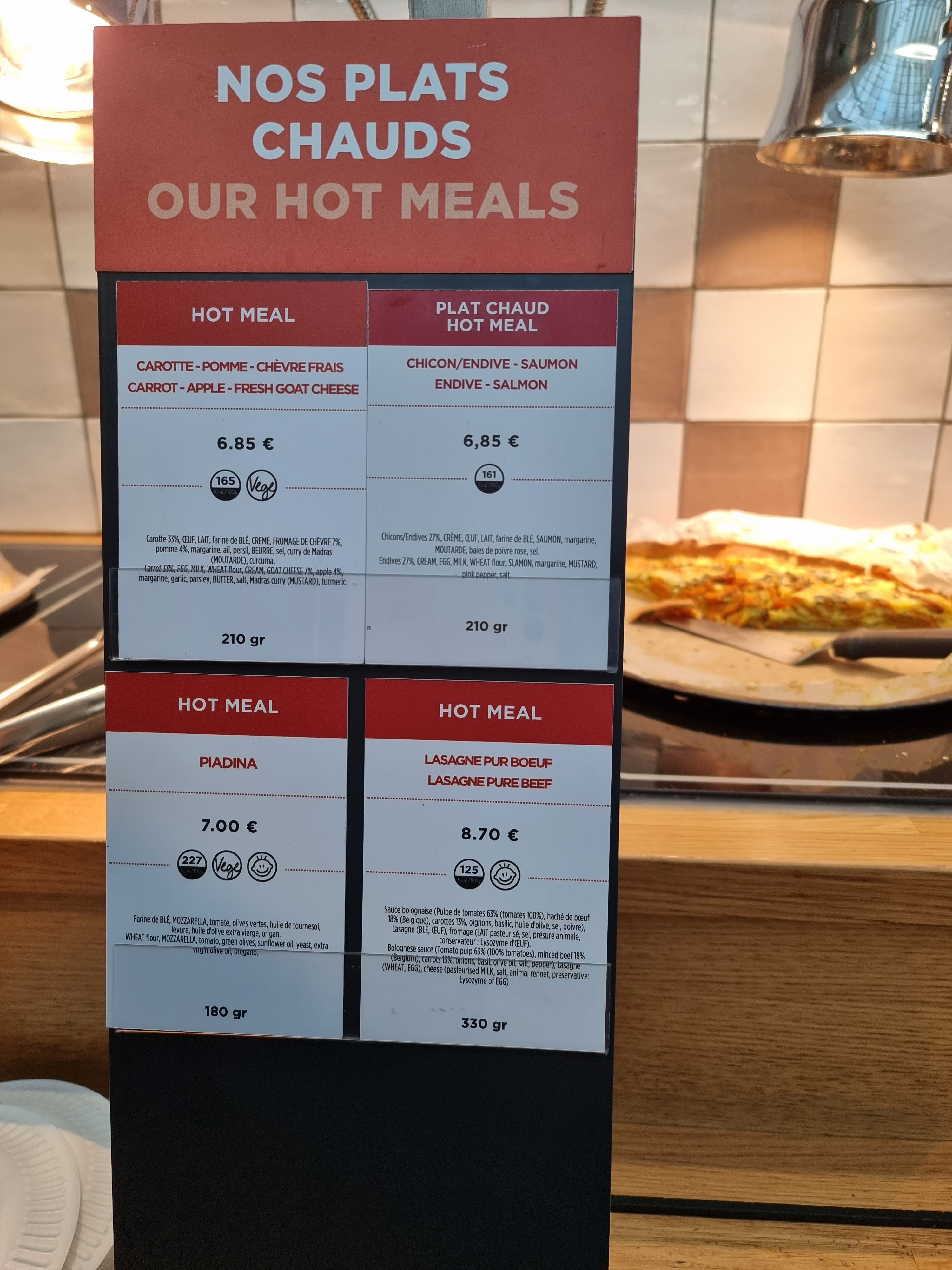 Ce vendredi 16h on a pris un plat chaud couscous, bon healthy léger, soupe très bonne et part de quiche également. Pas mal de choix vegan même si j'aimerais qu'il y en ai plus ☺️ Personnel très aimable et accueillant. 👍🏻 Coin plus tranquille qu'en haut au niveau des boarding. Je recommande