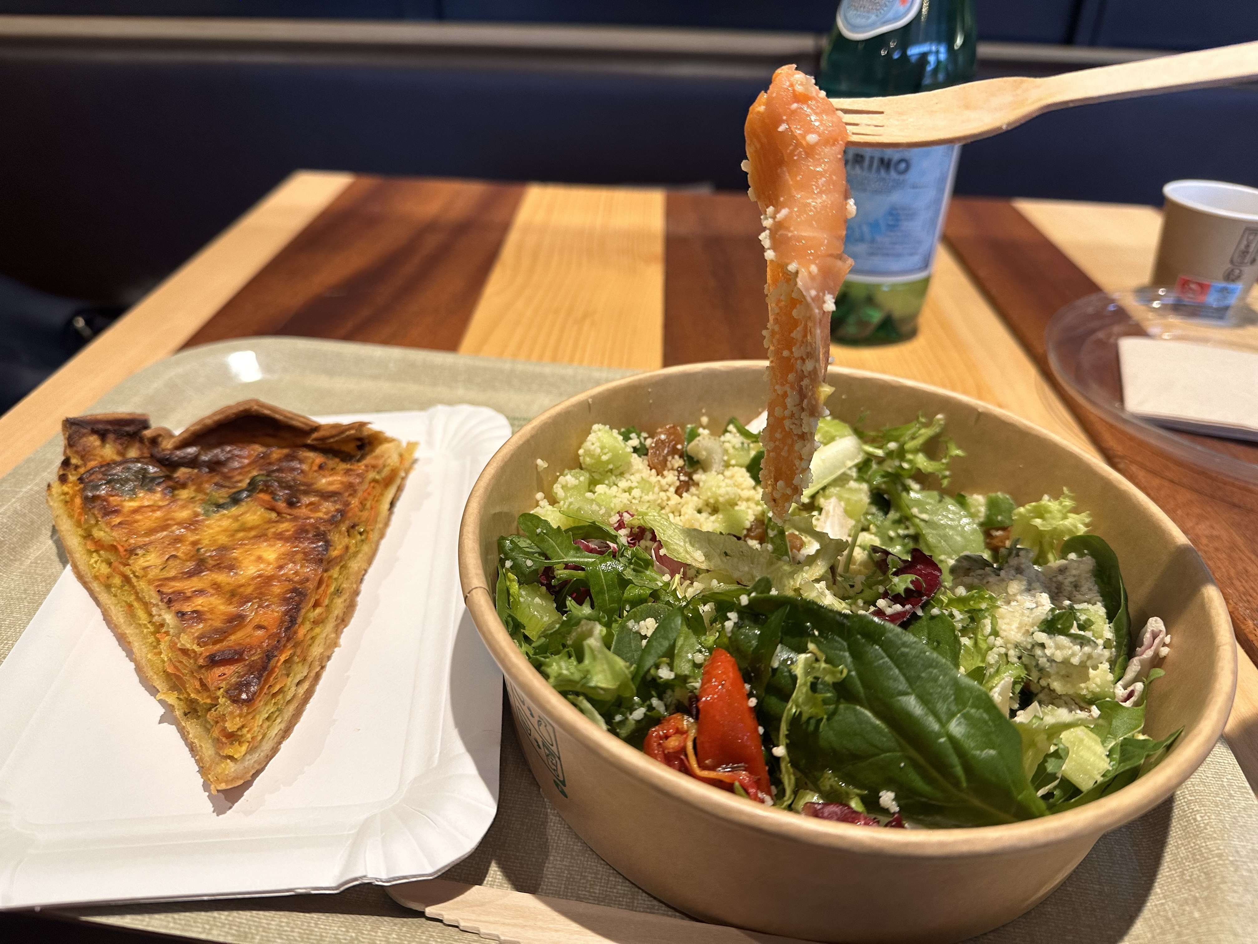 Idéal pour manger sur le pouce lors d'une pause sur autoroute. Les tarifs y sont un peu élevés mais le choix et la fraîcheur des produits sont au rendez-vous. Les soupes, le carotte cake ou les salades végétariennes son tip top.