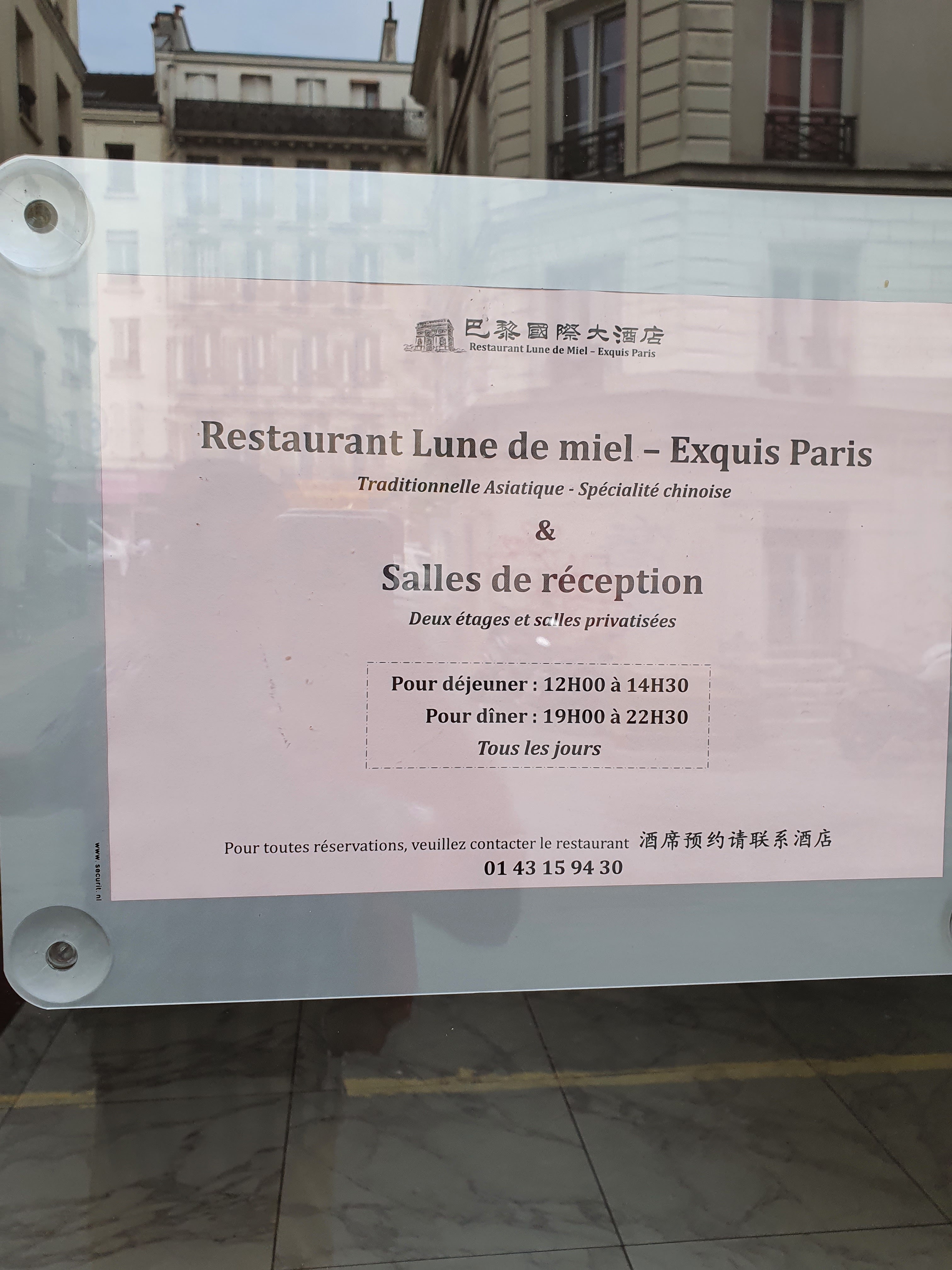 Voici toutes les informations sur le Restaurant asiatique Exquis Paris - Lune de Miel 巴黎国际大酒店 qui ce trouve au 46 Rue de Belleville, 75020 Paris (75). Sur cette fiche vous trouverez les photos, l'adresse, les horaires d'ouverture, le numero de téléphone et les avis clients.Vous pouvez églement rédiger un avis si vous le souhaitez en bas de page.