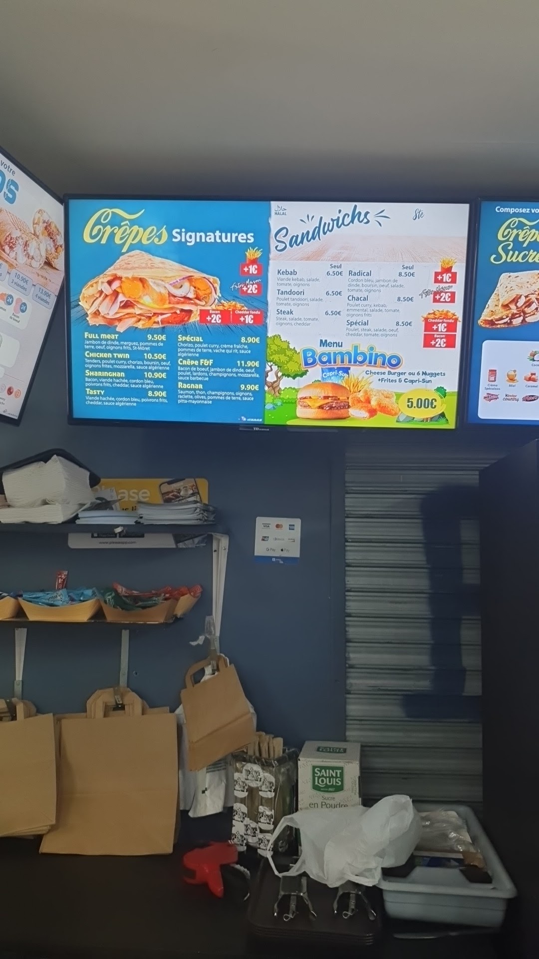 Je recommande vivement service rapide personnel très sympathique et leur frites sont a tomber 🤤 crêpe bien généreuse