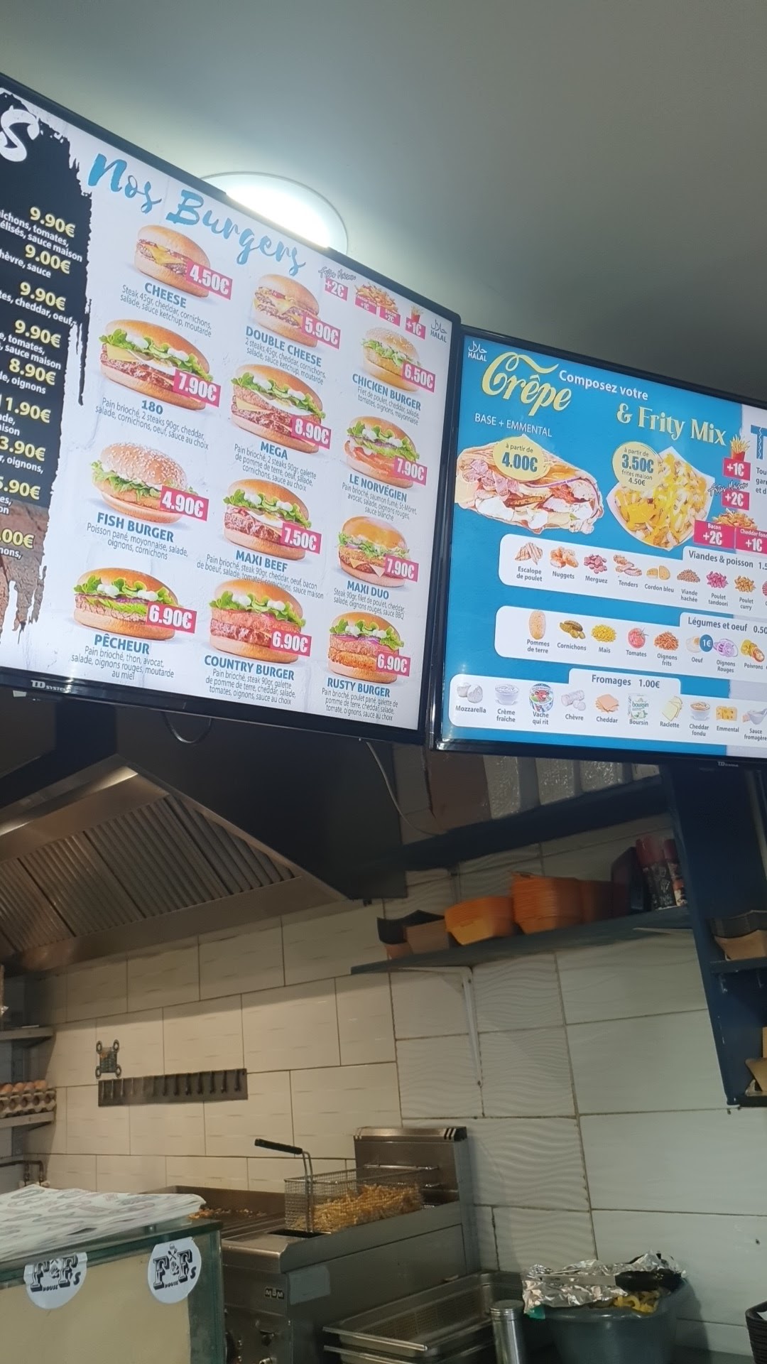 Beaucoup de choix, crêpes salées et sucrées à composer soi-même. Il y a le choix entre frites maison et surgelés, avec en supplément bacon et fromage ( un délice avec les frites maison). Les steaks des hamburger sont très bon,ce sont des steaks de qualité