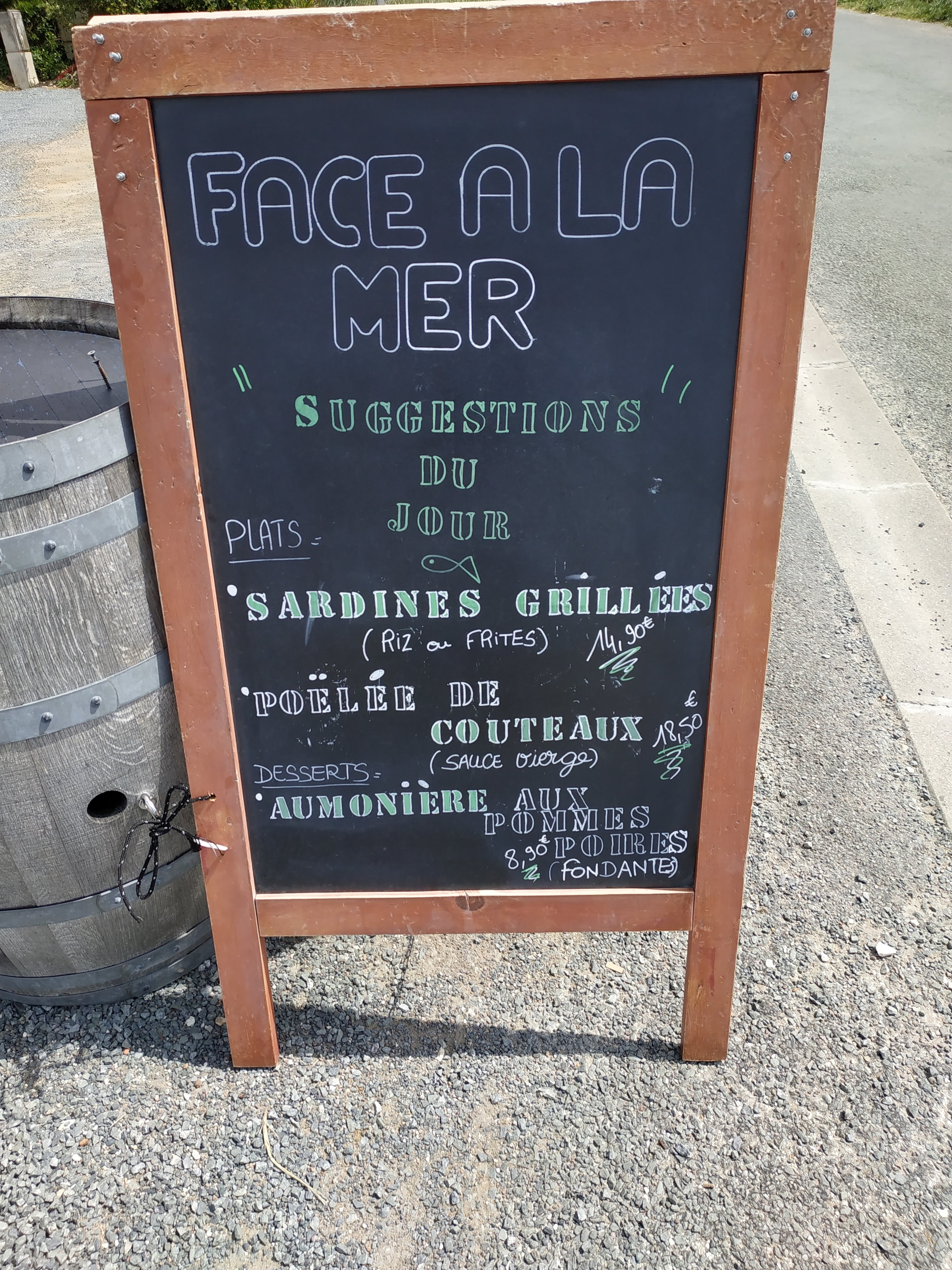 Si Chassiron est un site ultra touristique de l'île d'Oleron, Face à la mer échappe aux mauvais côtés de ce qu'on trouve habituellement dans ces lieux. La cuisine est copieuse, goutue et locale, le patron très sympa et la terrasse côté mer, une belle fenêtre sur l'océan ! À tester sans risque !