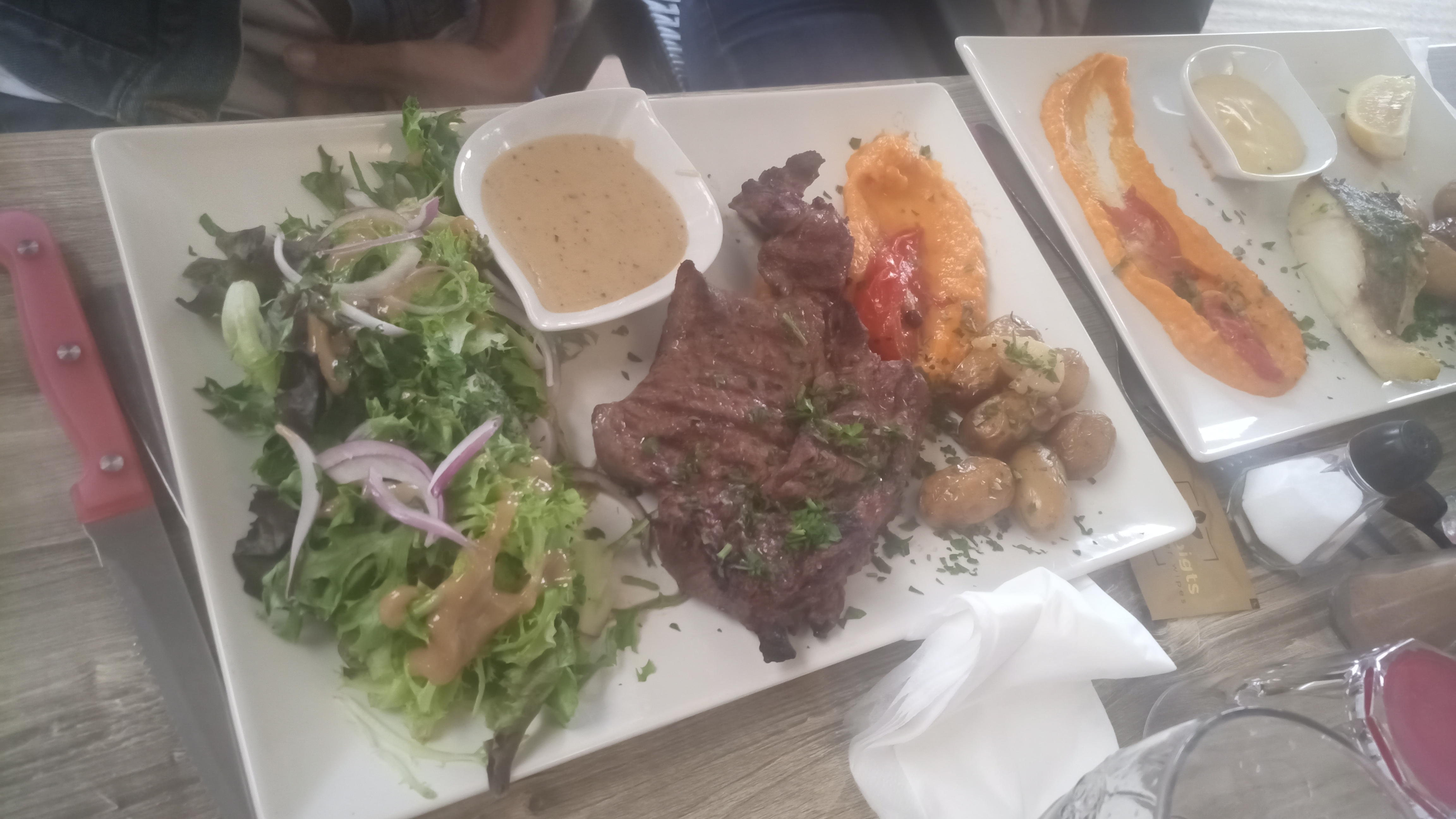 Restaurant avec deux grande terrasses ensoleillé ou non, Service impeccable le personnel agréable et soigneux, les plats sont faits maison à partir de produits frais comme les frites avec un vrai goût de patates ça change tout. En plus de la carte il y a aussi des plats du jour , les plats sont généreusement servis les tarifs reste correct certains plats un peu élevés comme le poêlé de couteaux a 16,90€ mais je pense que ca en vaux la peine si vous aimez ça. Seule point négatif dommage que la machine à café ne fasse pas de bon café, c’était plutôt un allongé dans une tasse à expresso.