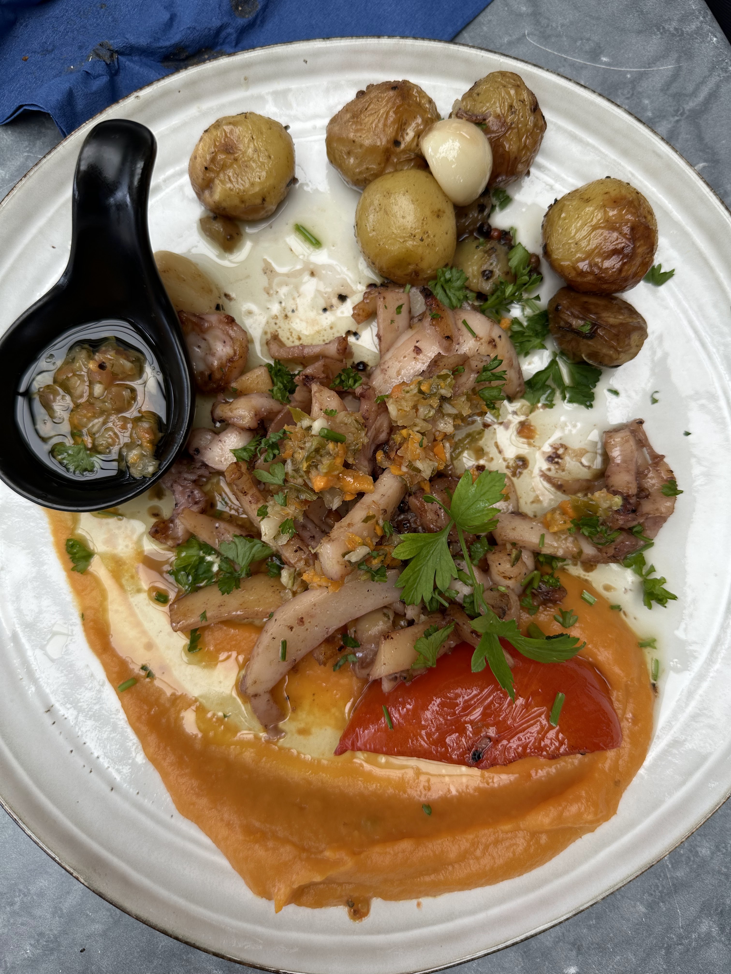Pour une halte dans un petit coin superbe, personnel sympathique et souriant. Salade terre et mer délicieuse et garnie et le plus la nouveauté de poulpe avec une sauce pleine de saveur. Très bien