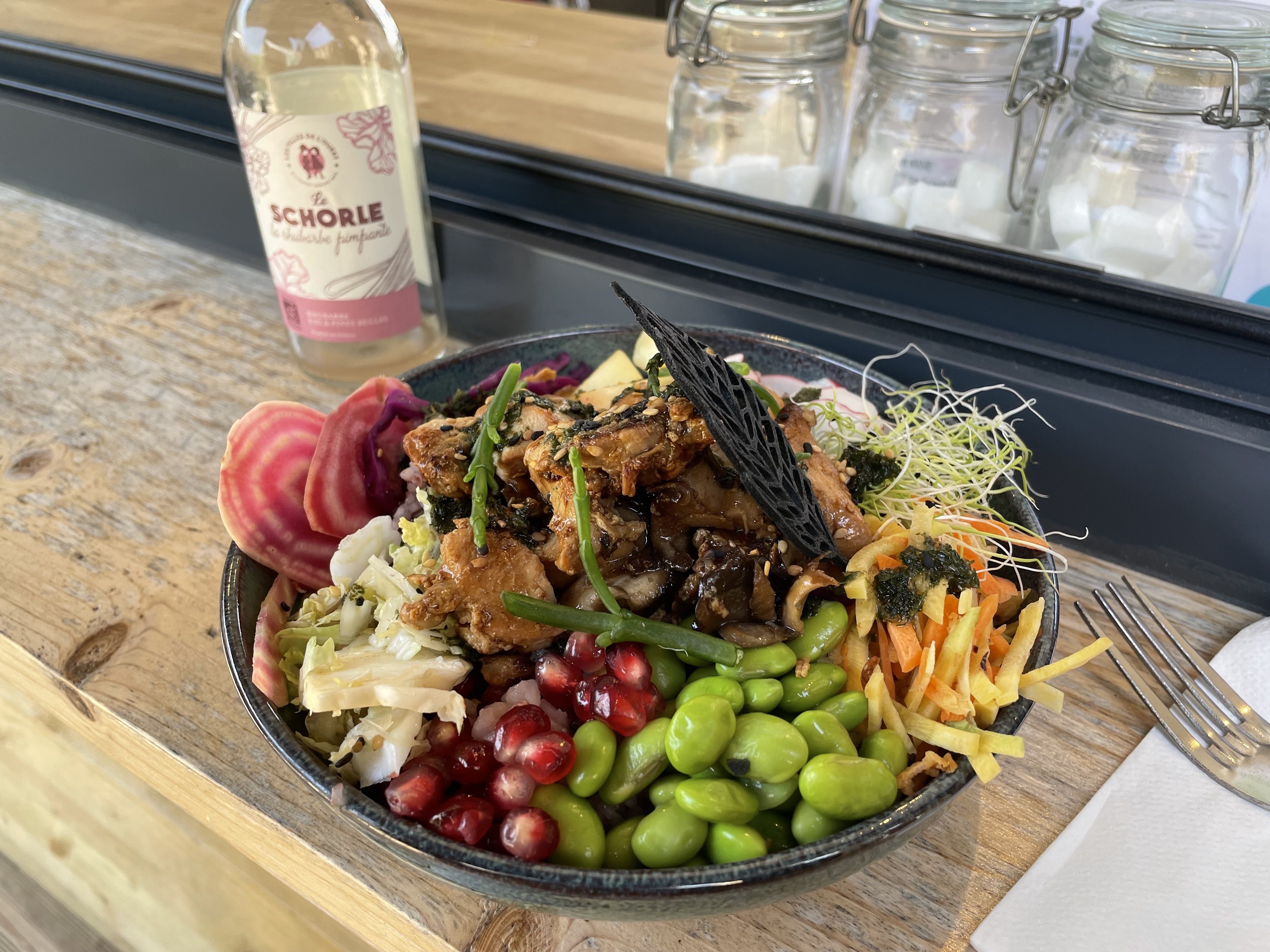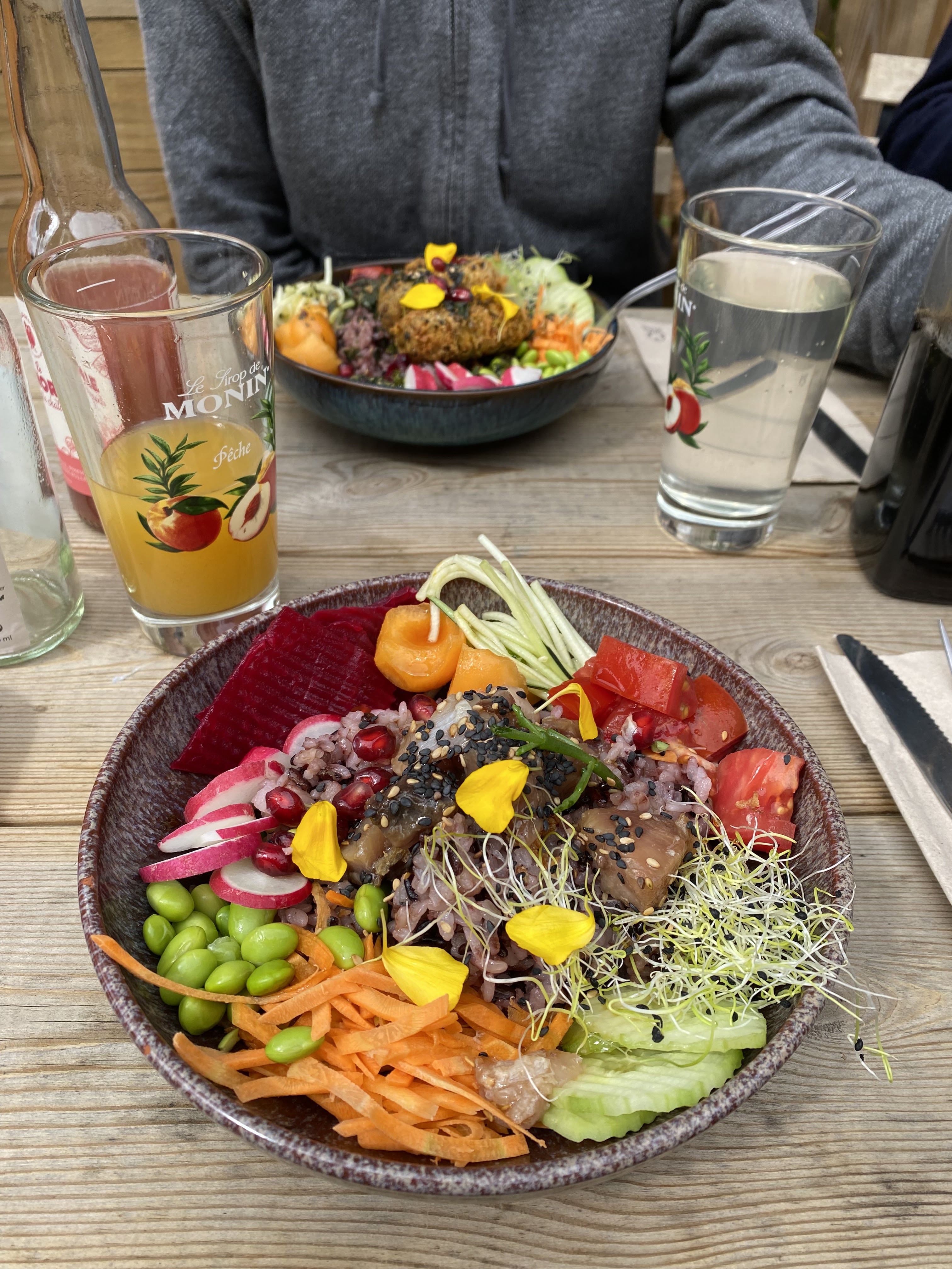 Endroit très sympathique à l’abri du bruit et de la route avec une jolie terrasse. Les bowls sont copieux et raffinés. Belle découverte .