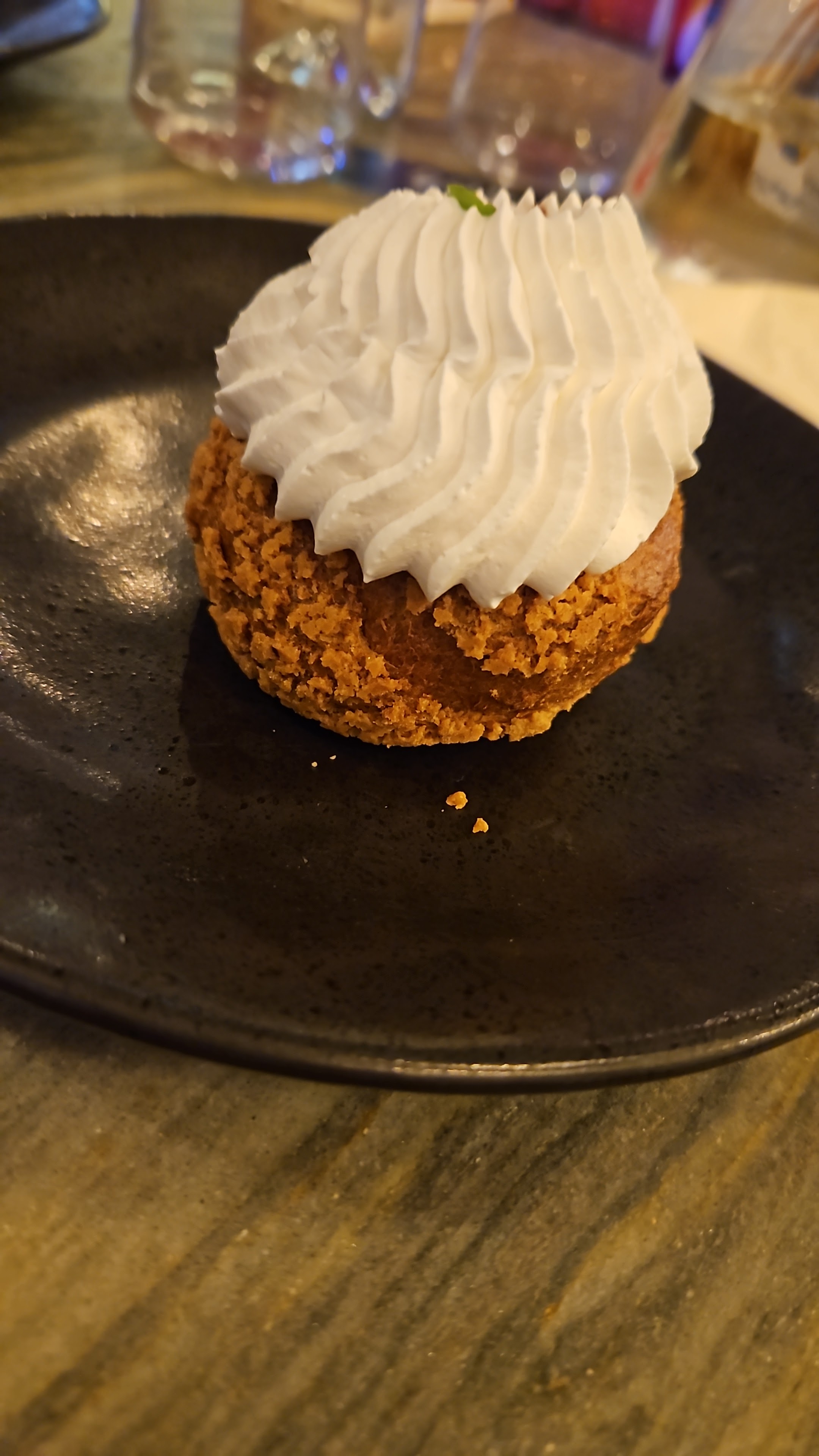 Bonjour, Le plat était bon, j'ai pris les gambas par contre le seul bémol était sur le dessert. J'ai pris le chou à la crème et fraise. La pâte du Chou était mou et je l'ai signalé à la serveuse puis elle m'as dit que c'était fait du jour 🤔