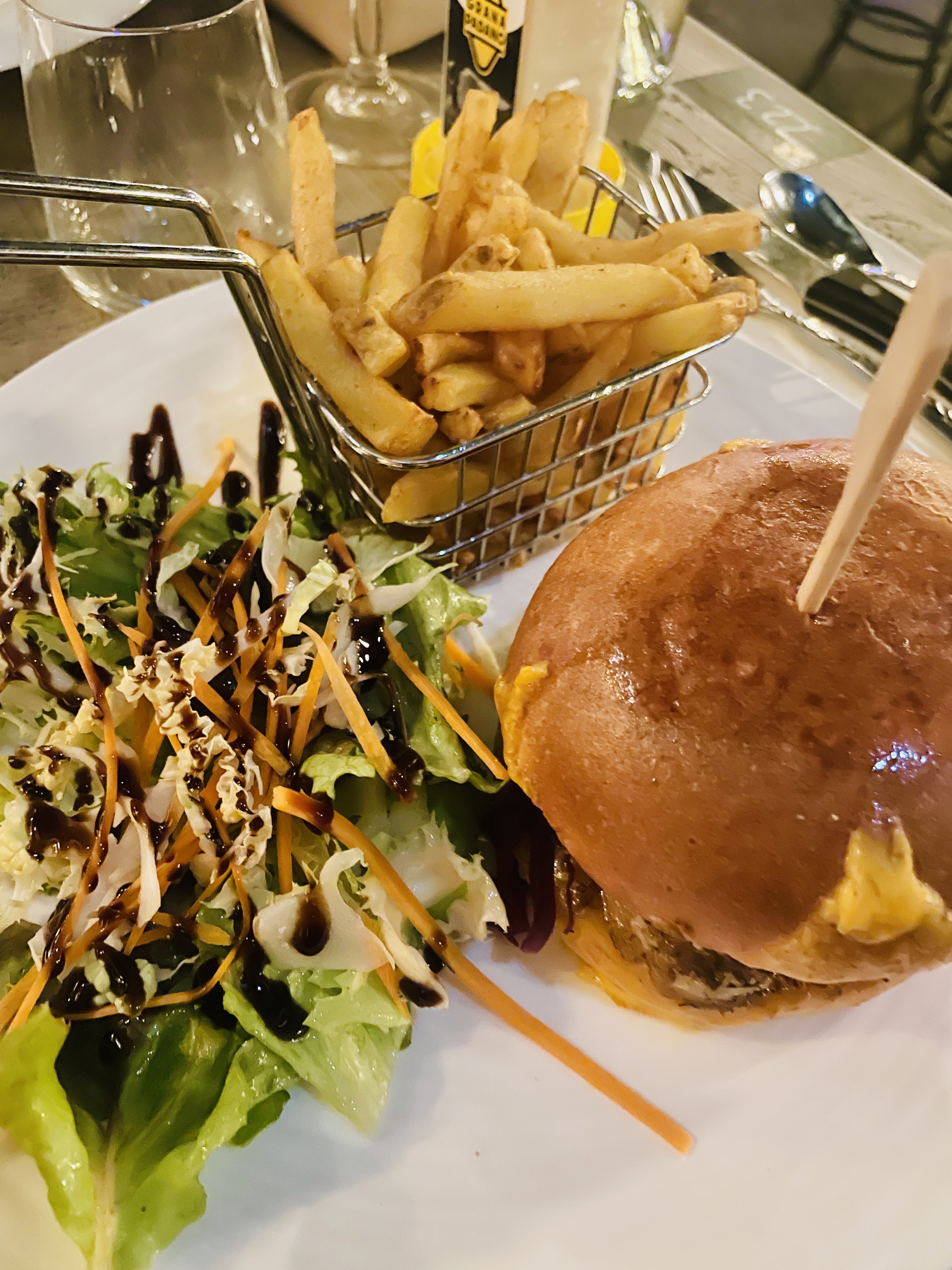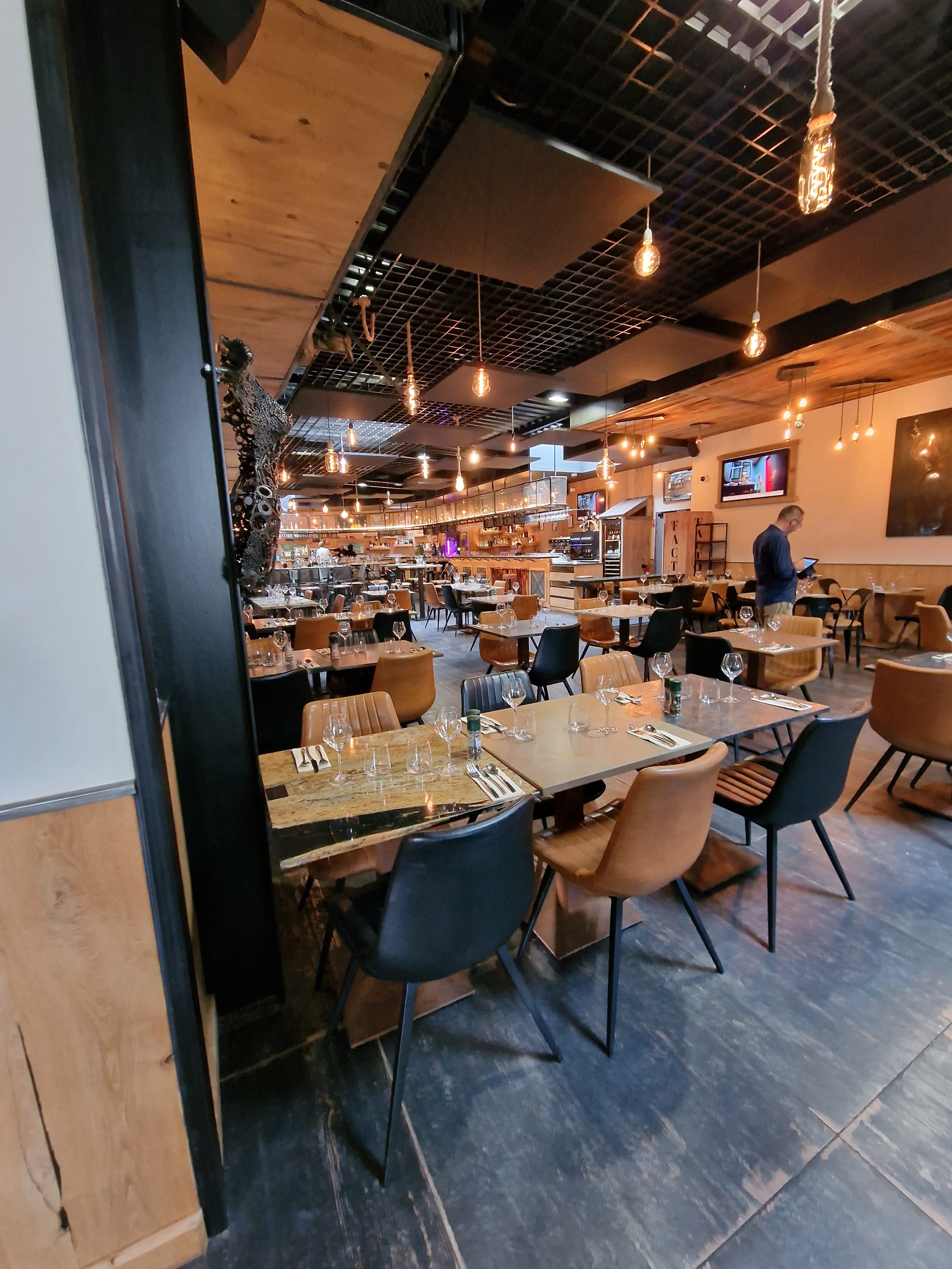 Grand et beau restaurant moderne à l'ambiance Lounge. Du choix à des prix abordable. Pour ma part, une belle salade caesar copieuse et ensuite une entrecôte frite classique. Le jour où nous y sommes allés en groupe, la viande était malheureusement un peu 'dure' même avec la cuisson la plus rouge demandée. Cela doit dépendre des arrivages. Sinon les desserts au top, comme dans un resto gastronomique. Le café gourmand porte vraiment bien son nom.