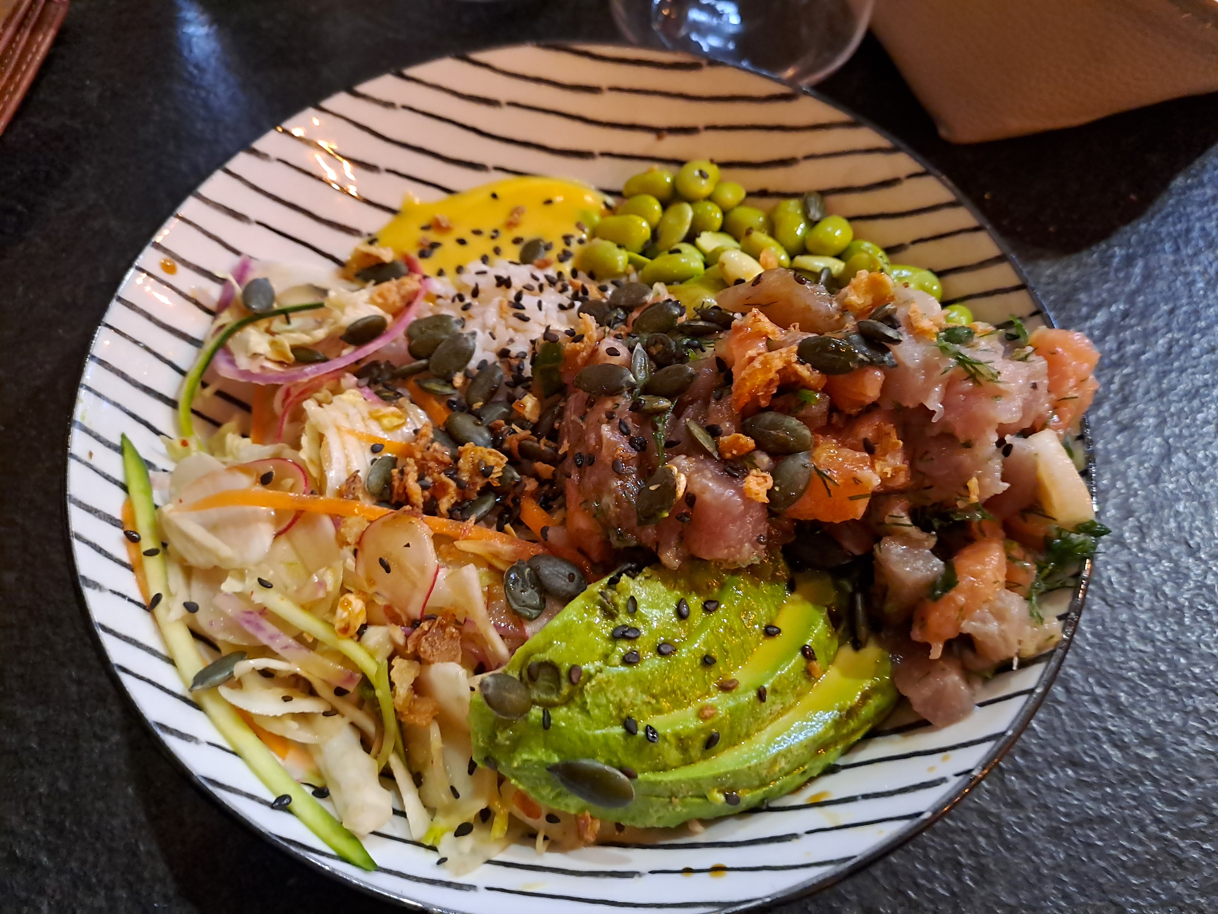 Restaurant très sympa ! Cocktail du moment juste super bon, une ambiance chic et décontractée à la fois avec une bonne ambiance musicale. Serveuse sympathique et professionnelle. Le tartare de thon et saumon était très bon ! Seul petit bémol, la quantité des desserts dans le café/thé gourmand peut être un peu légère à mon goût mais très bons quand même 😉