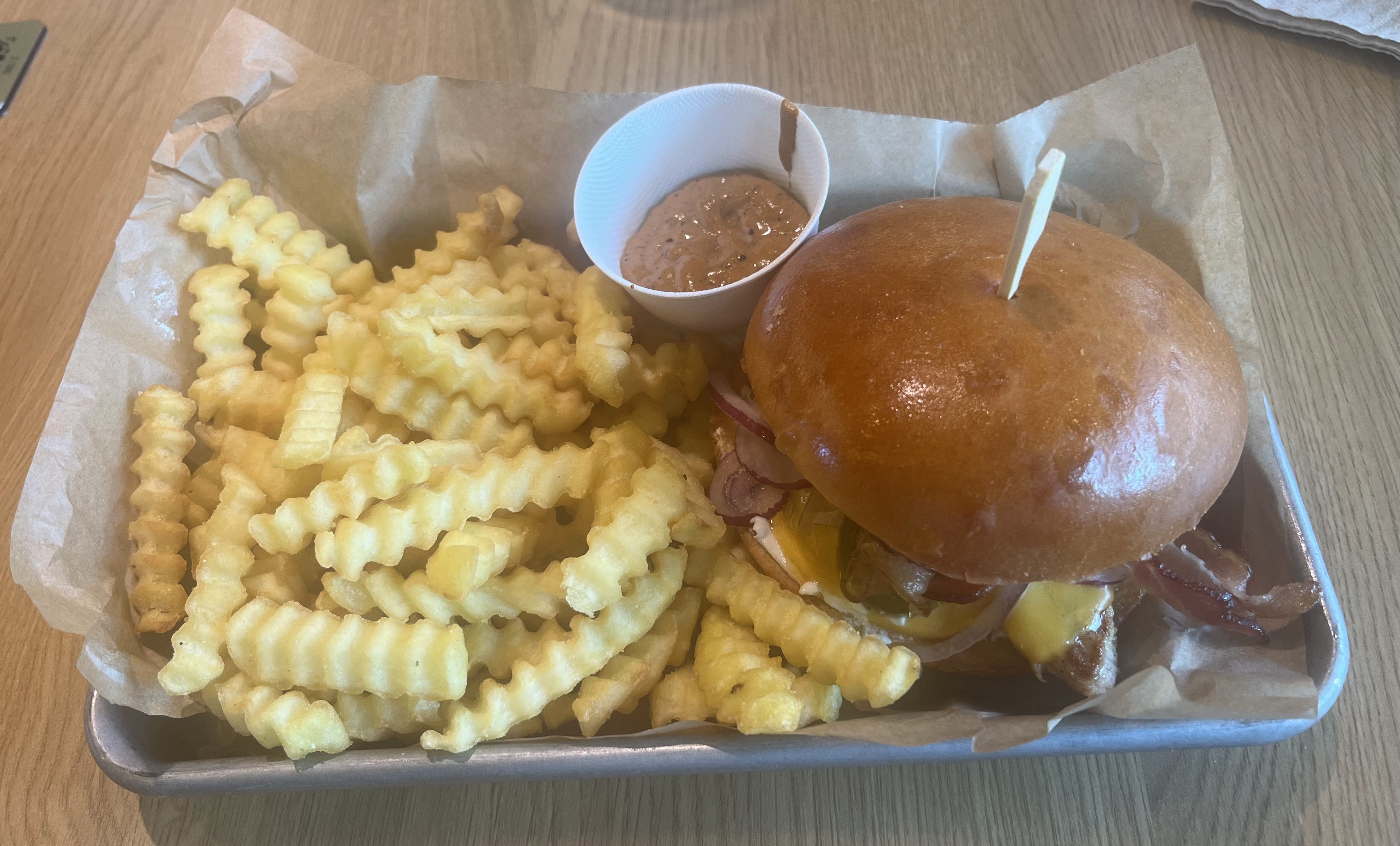 Un fast food sympa mais aux prix un peu élevés quand même et surtout... avec une longue attente avant le service. Ce qui n'est pas trop conforme à un fait food. Nous avons attendu pas loin de 40 minutes entre le moment où nous avons passé commande et le moment où nous avons été servi.