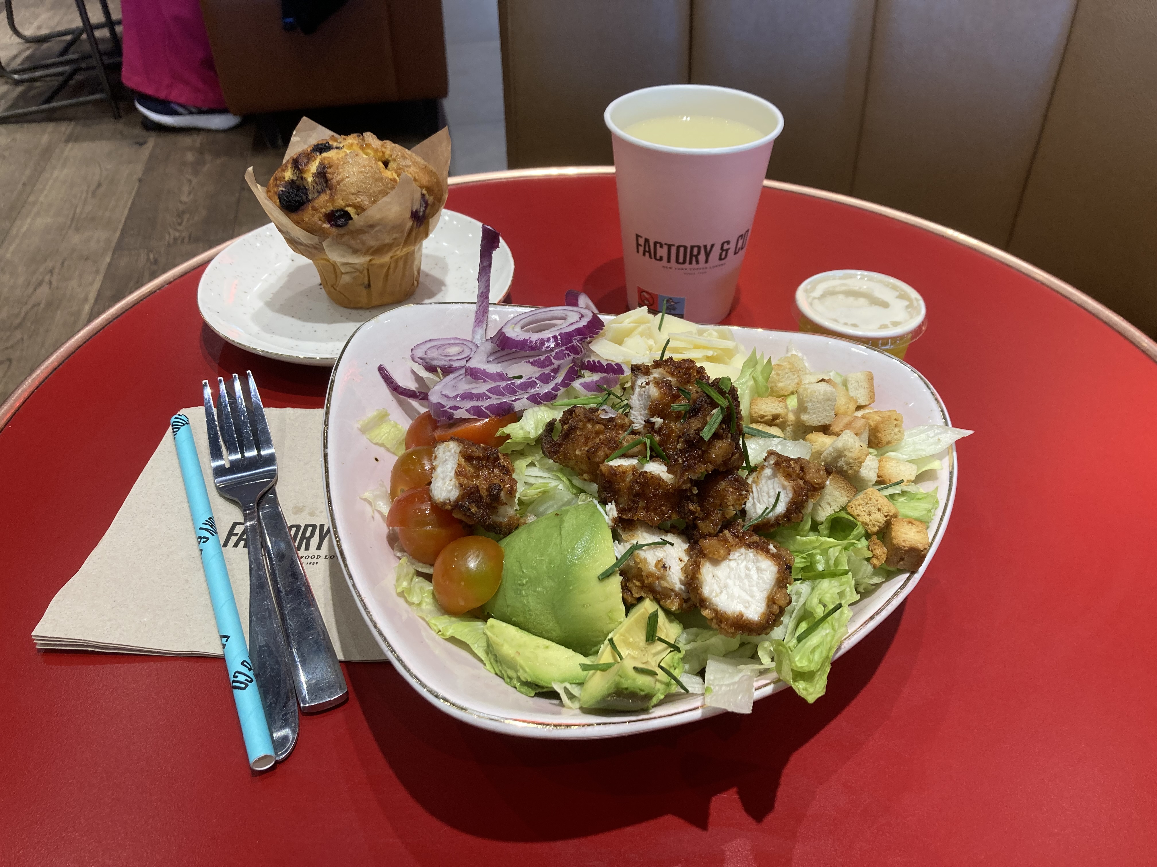 Enseigne de restauration toujours au top avec un personnel tout aussi adorable et professionnel. Menu salade Caesar, coupelle d’ananas et le tout avec une petite bouteille de S.Pellegrino…