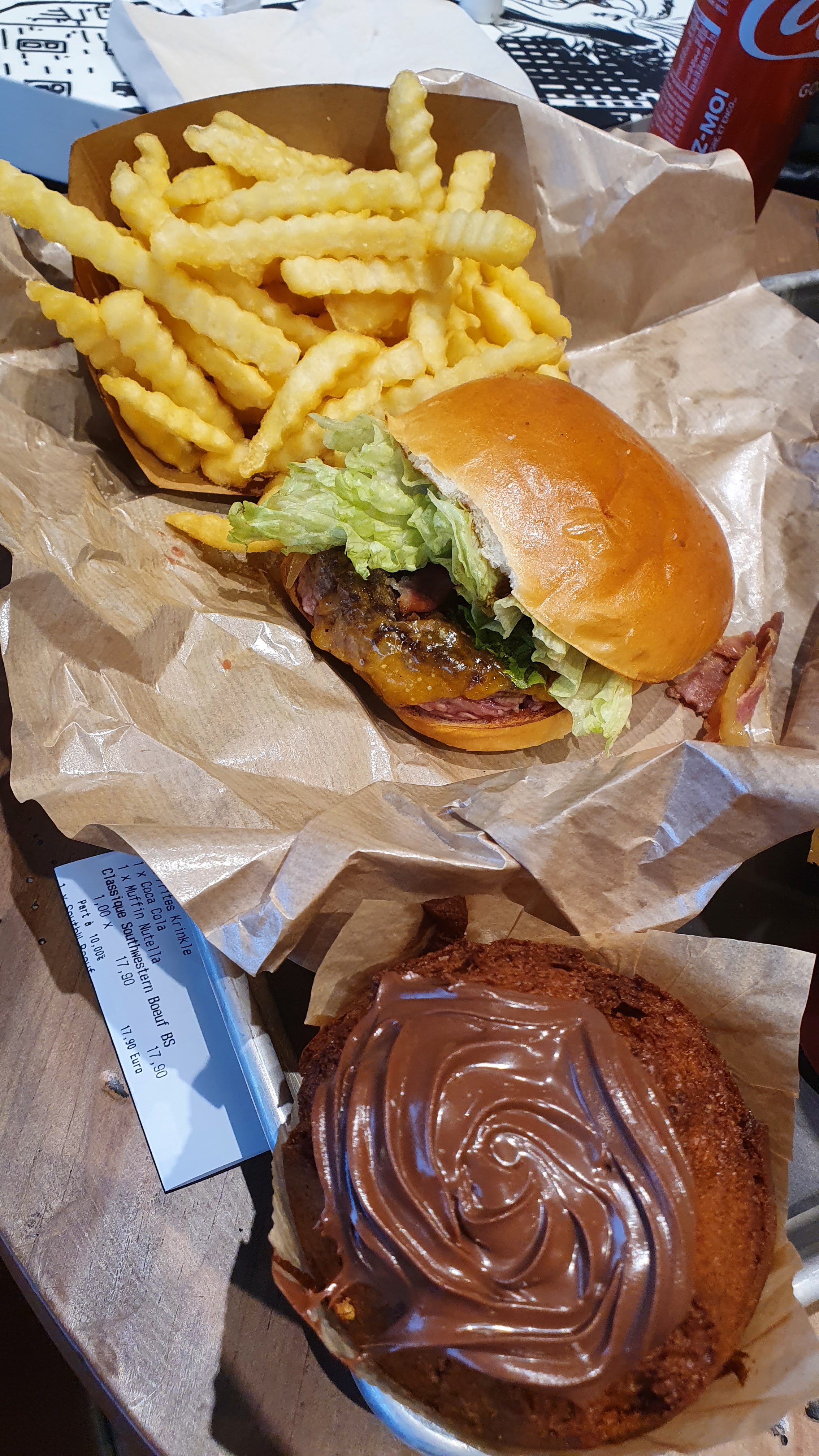 Impressionné, un superbe accueil, professionnel dans l'explication des muffins avant le choix du menu. Menus très copieux et hamburger super bon et moelleux. Dommage que nos boissons ne soient pas fraîches mais je pense plus à un réassort du frigo récent.