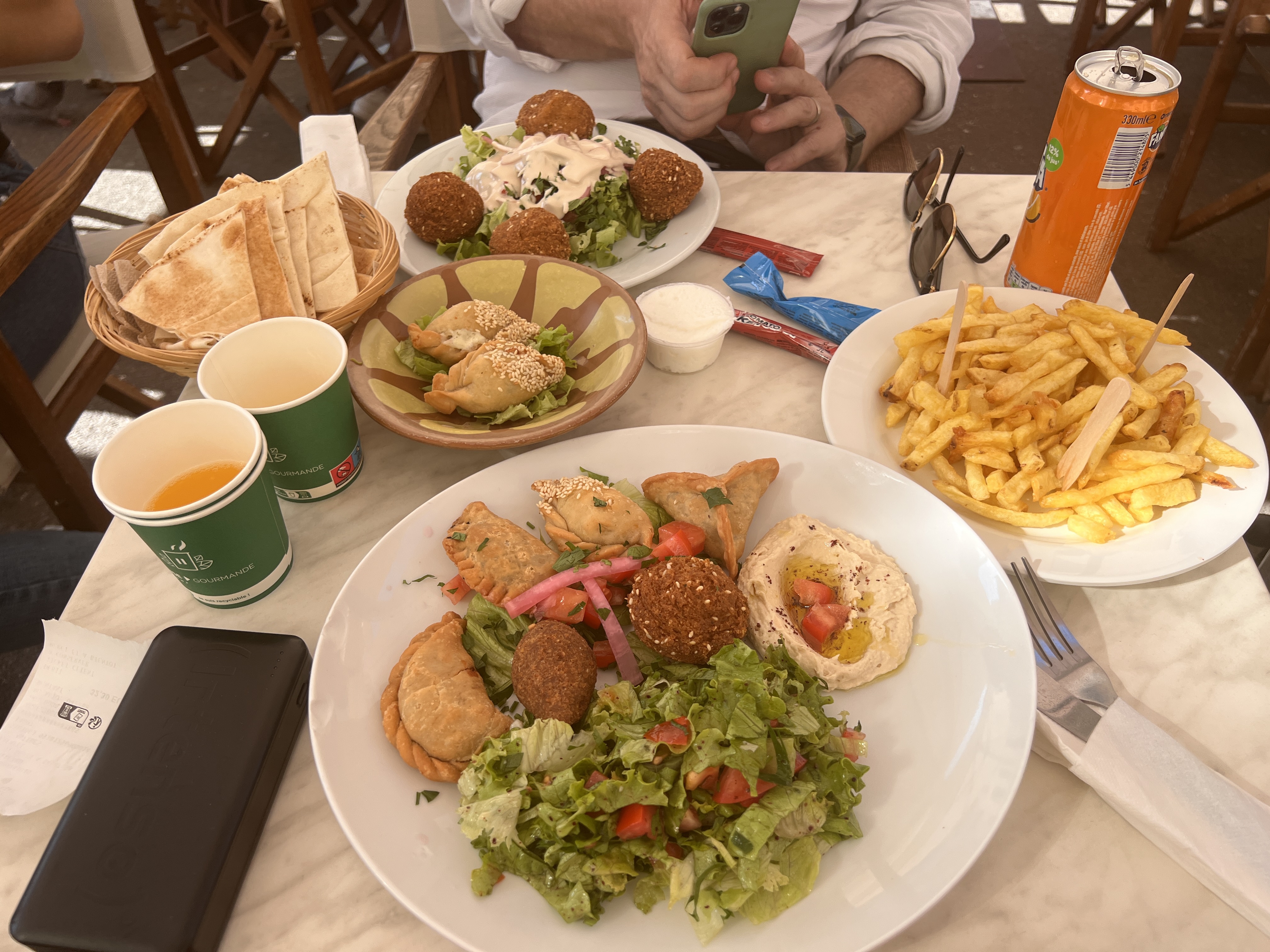 En terrasse, nous avons découvert quelques plats libanais. Un régal ! Très bon accueil. Malheureusement, il n'y avait plus de thé ☕️ à la menthe 😒. Si nous retournons dans la région, nous ne manquerons pas d'aller manger à nouveau au Falafel.