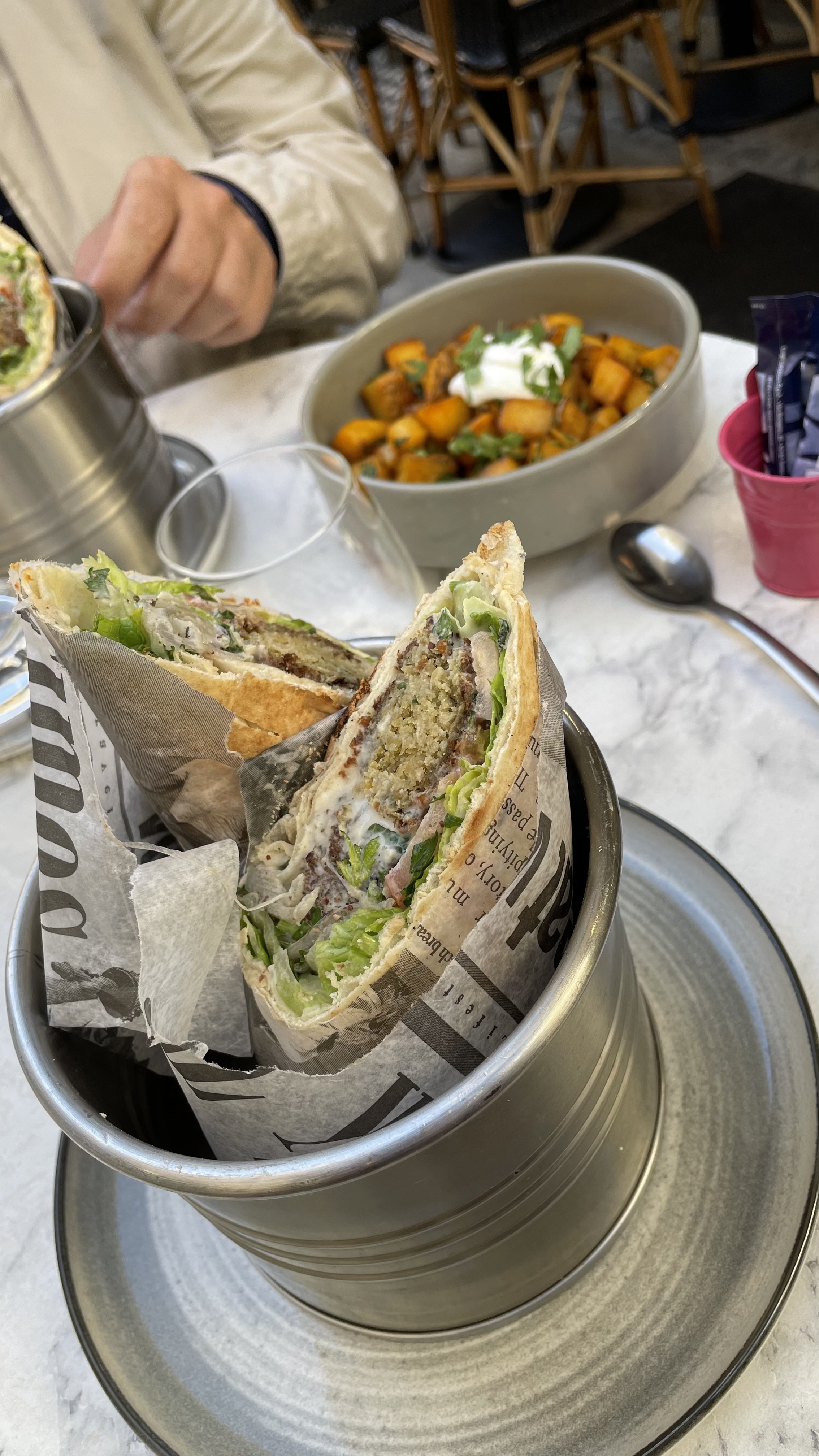 J'ai prix un libanais falafel, à 5€, sans frites, mais vraiment bon.