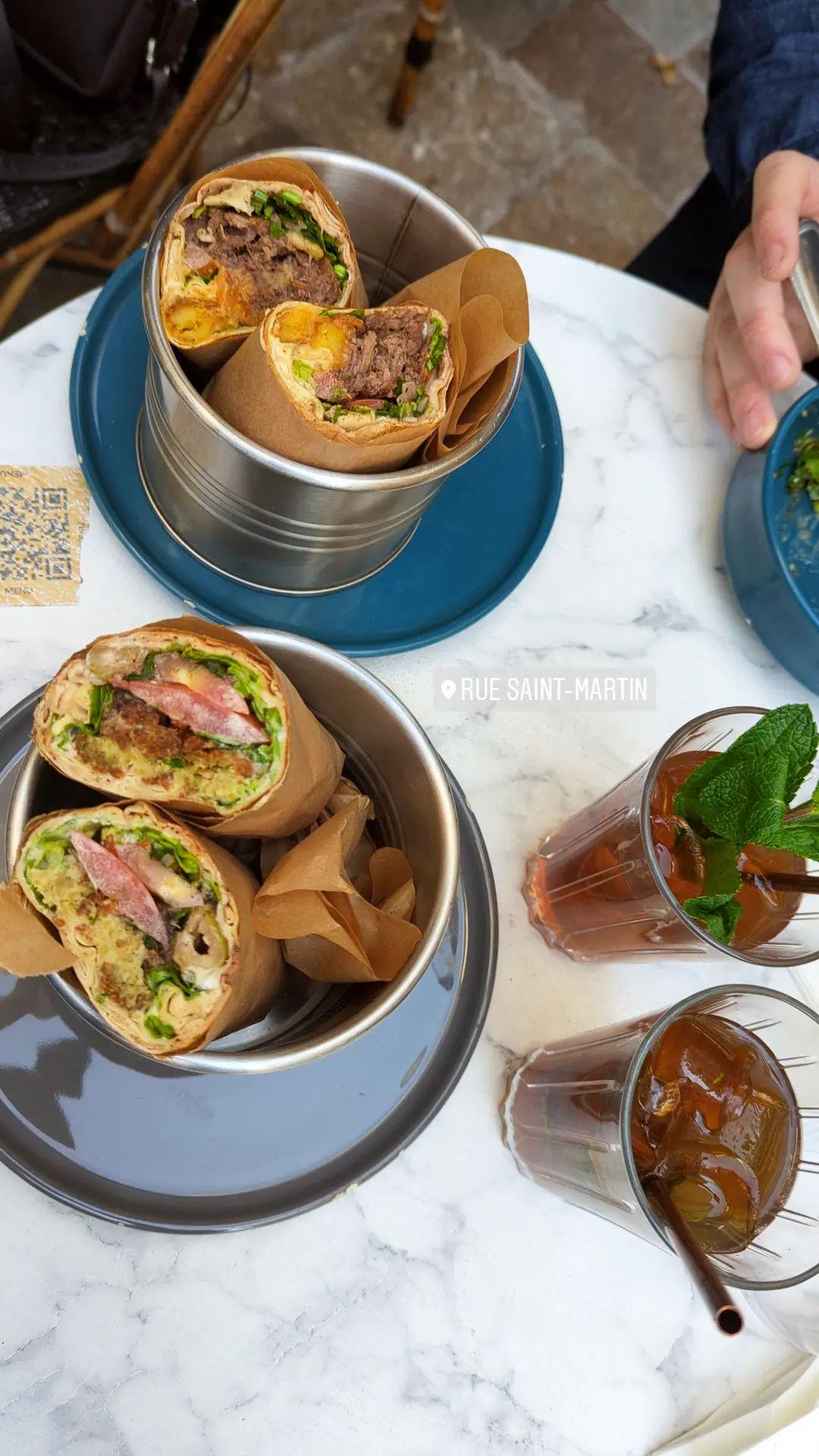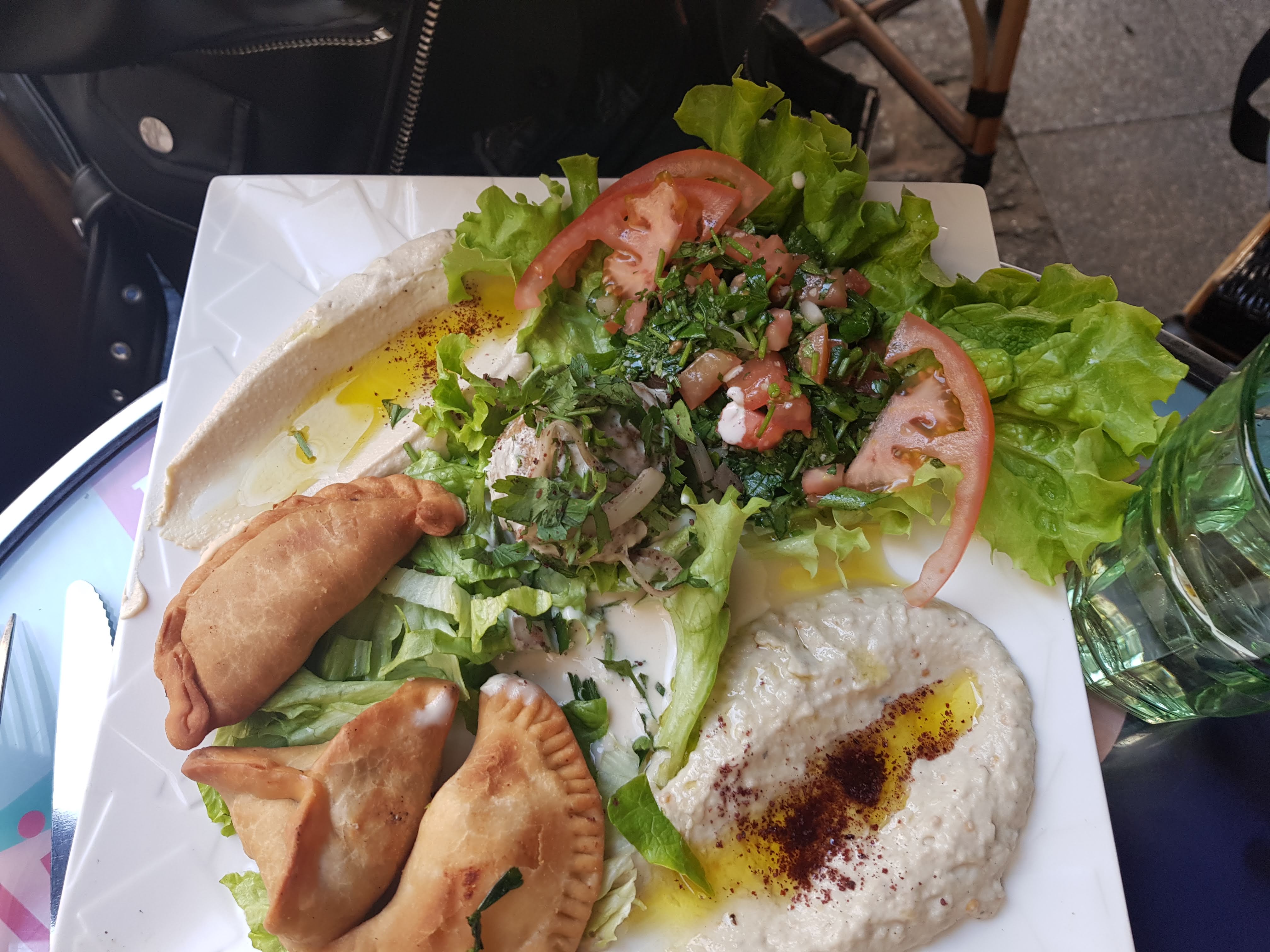 La terrasse est pas mal, elle fait l'angle entre une rue piétonne et la rue Saint Martin qui est très peu passante à cet endroit. L'interieur du resto fait moins rêver, peut être. On a pris 2 assiettes de mezze (classique et végétarienne) pour 11,90€ chacune. Le chausson à la viande était délicieux et celui aux épinards parfait et bien acidulé. Moins convaincue par le falafel qui était super dense et assez fade, pfiou, il te blinde le bide celui-là. L'ensemble est très correct, l'accueil sympa, c'est pas le resto du siècle mais tu peux y passer un bon moment!