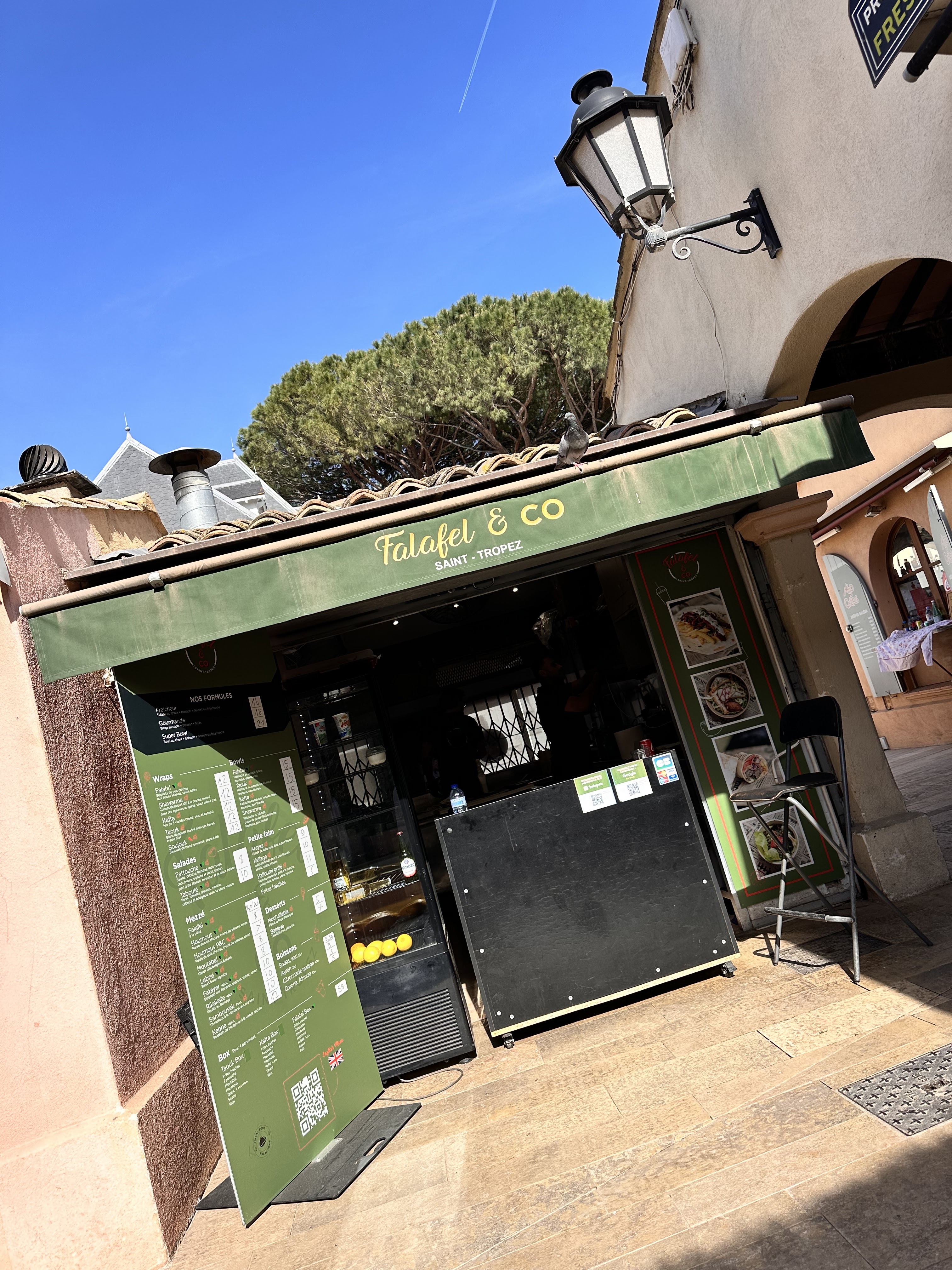 Nous ne restions à Saint Tropez que 2,5 jours, mais j'ai mangé trois fois Falafel & Co ! Peut-être la meilleure cuisine de la ville, y compris un restaurant recommandé par le Guide Michelin. C’est une cuisine libanaise incroyable à un prix imbattable.
