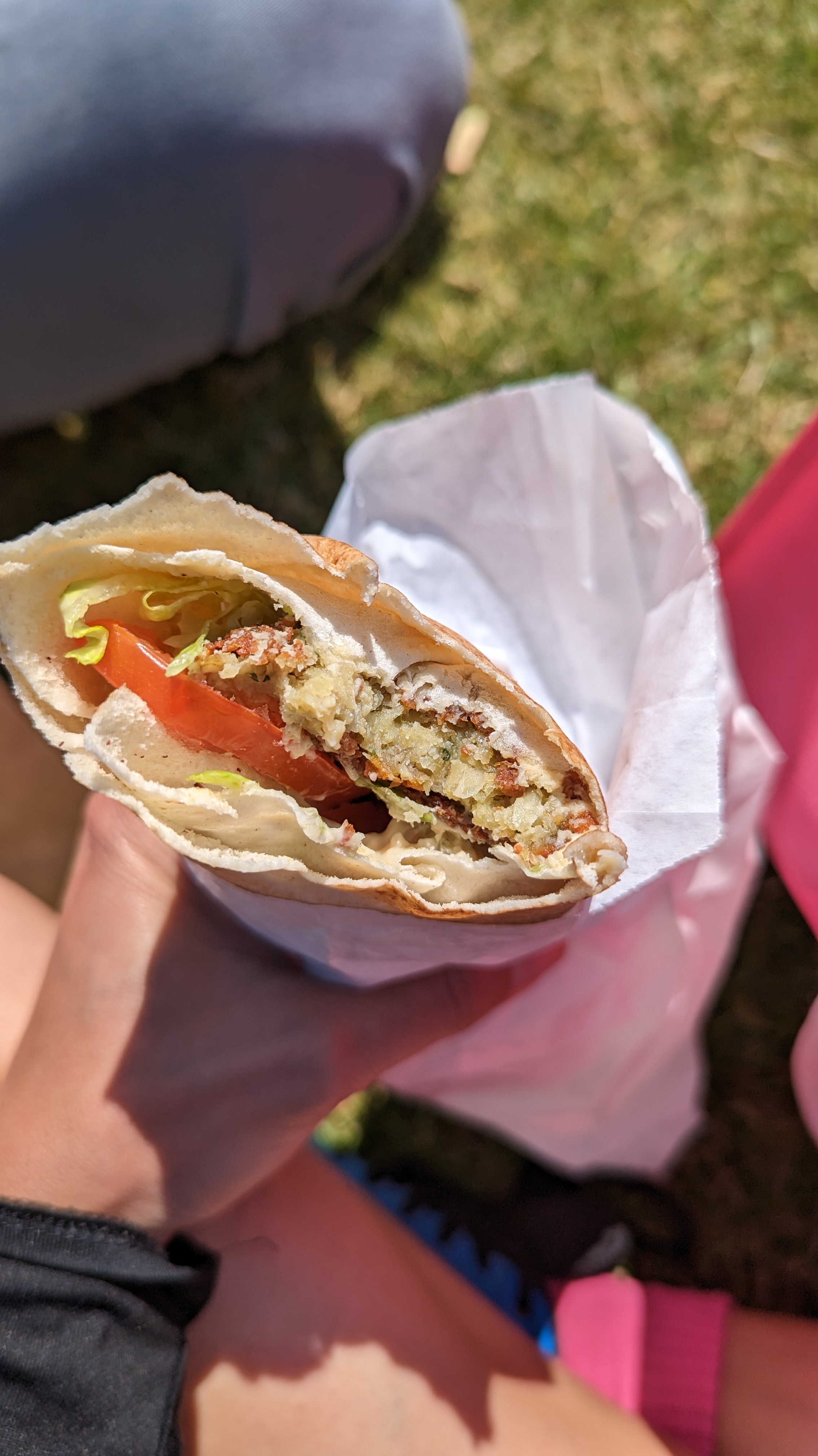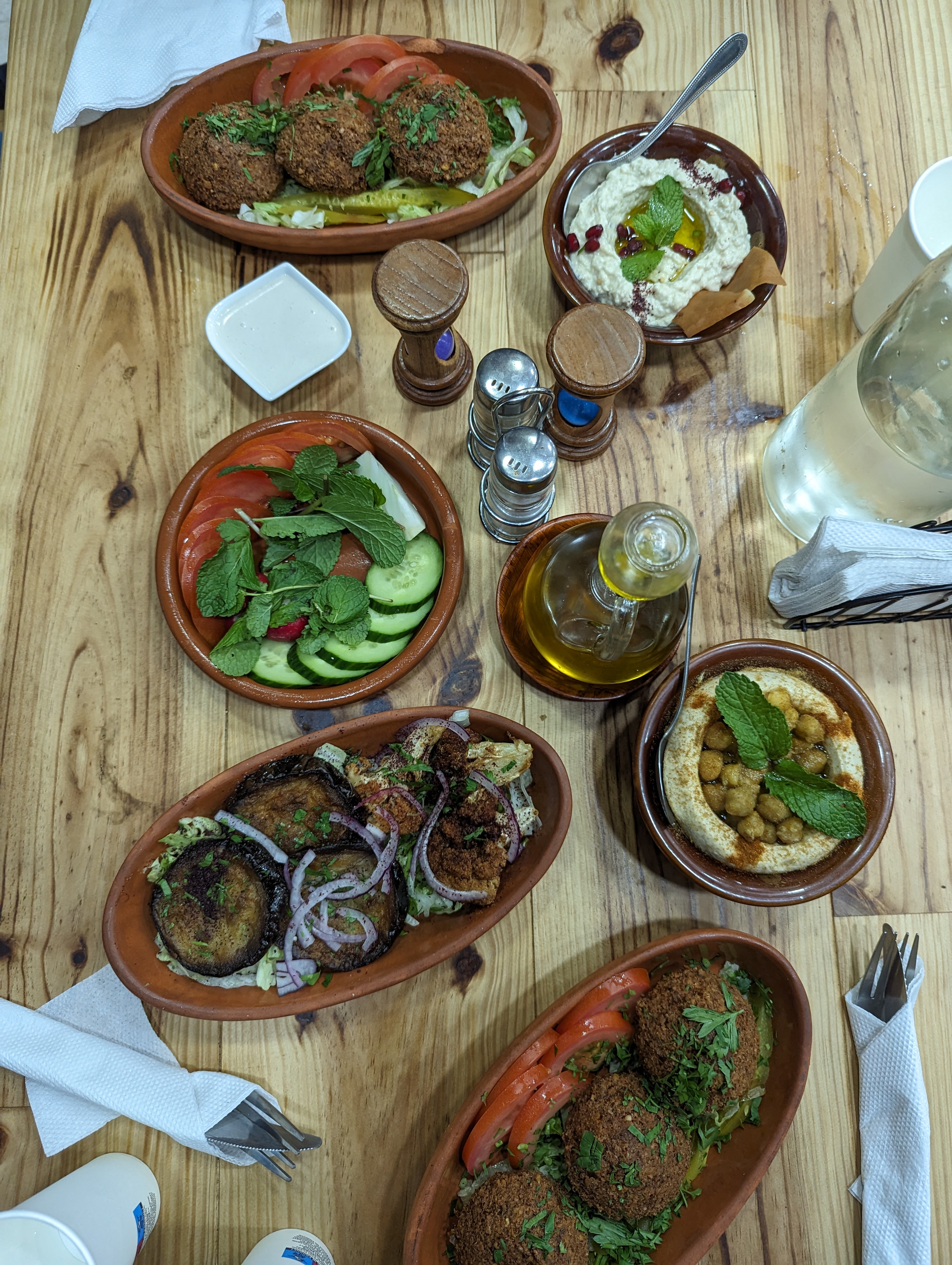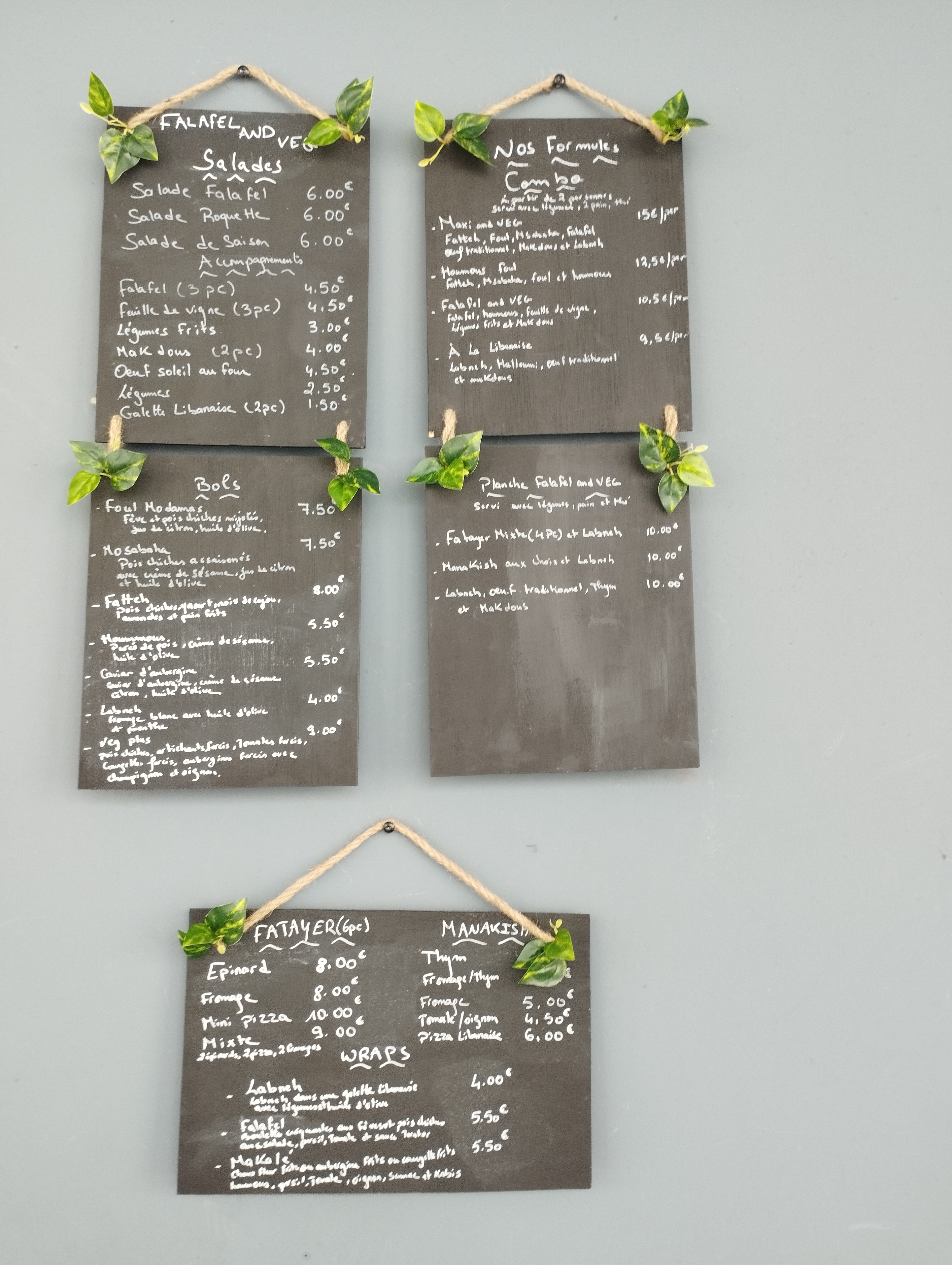 On nous a refusé le repas sur place car arrivés à 14h30, dommage Les falafels manquaient de sauce, c'était secs. Les légumes grillés étaient bons mais c'est pas très généreux. Les pâtisseries étaient moyennes mais 2€ pièces c'est pas donné