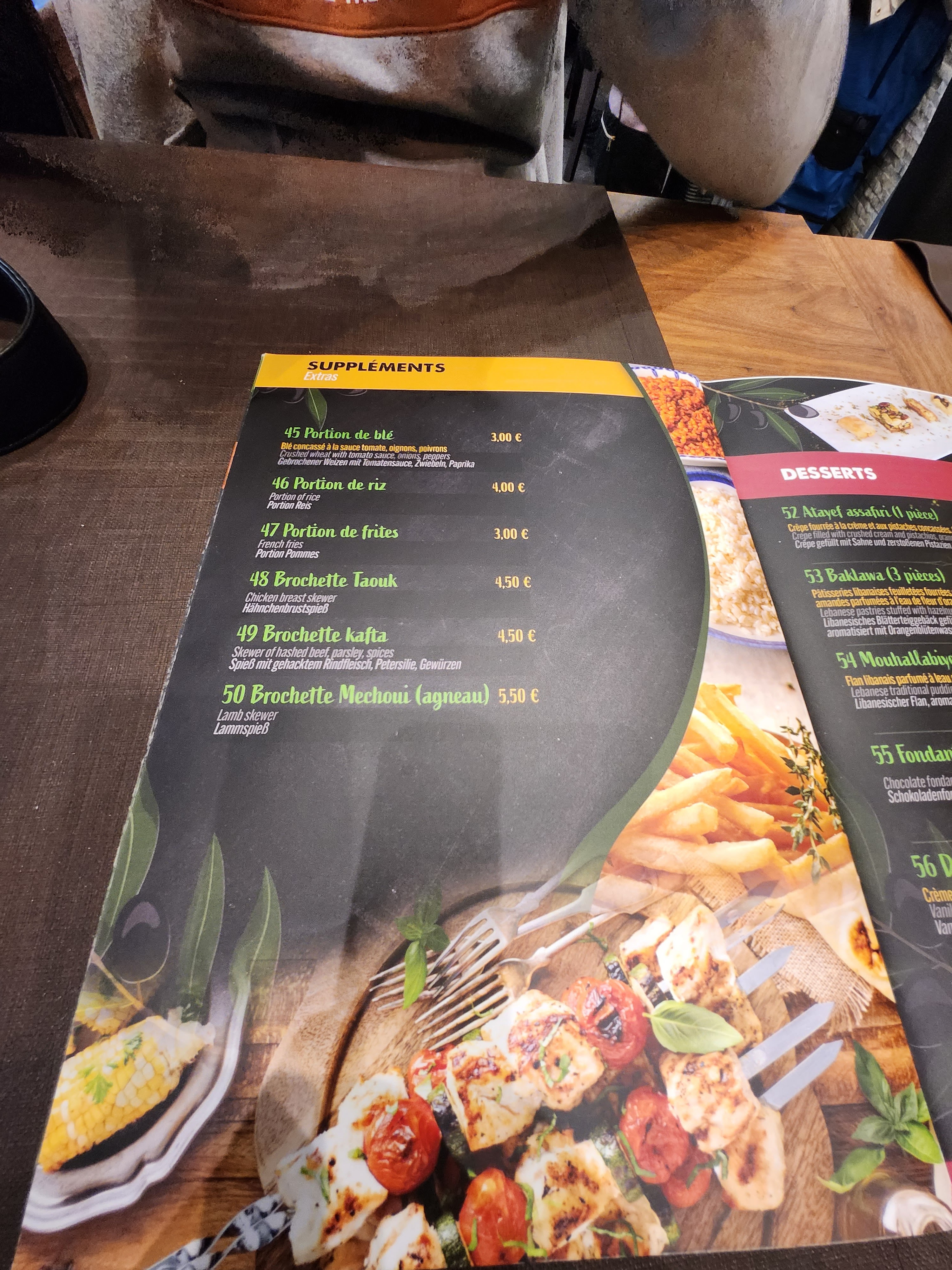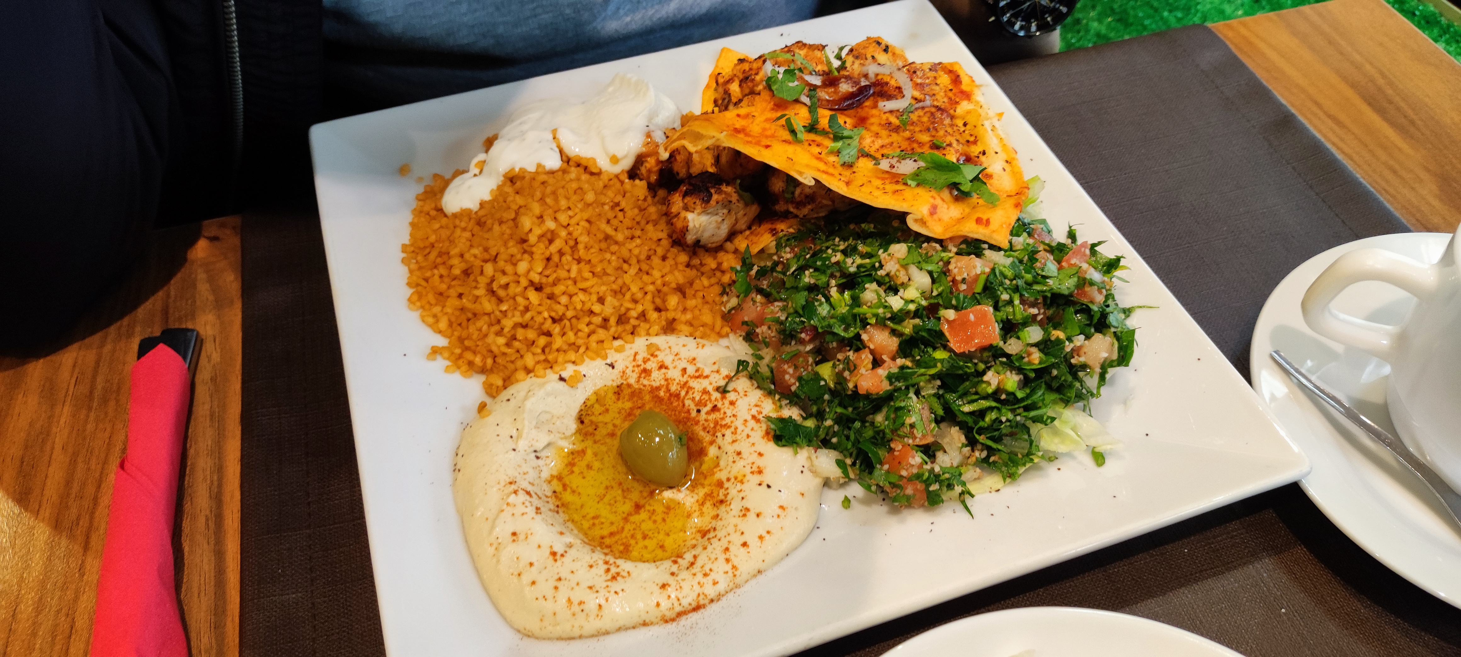 Très bien, comme d'habitude 👌🏻 Kafta bien savoureux servi avec boulgour, taboulé libanais, houmous etc... Service Très cordial. Rapport qualité prix excellent.