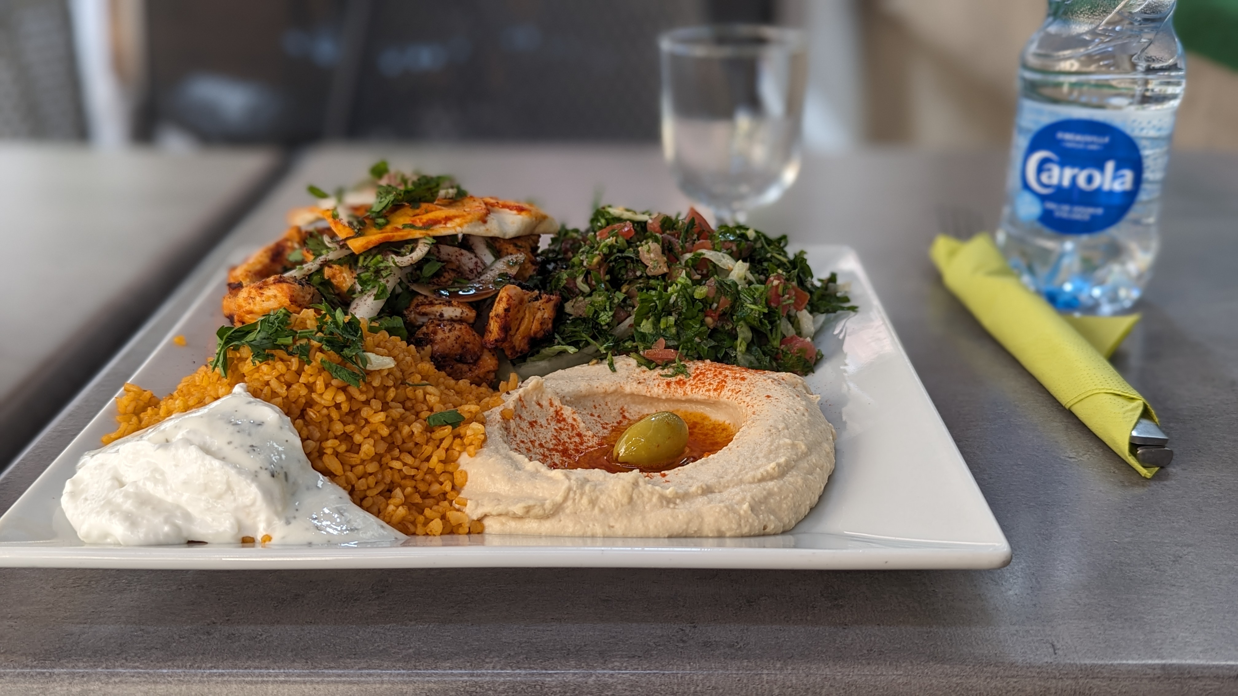 Ressemble un peu à un kebab sur assiette.. serveur peu aimable. C’est bon mais rien d’extraordinaire, je m’attendais à mieux pour un libanais si bien noté.