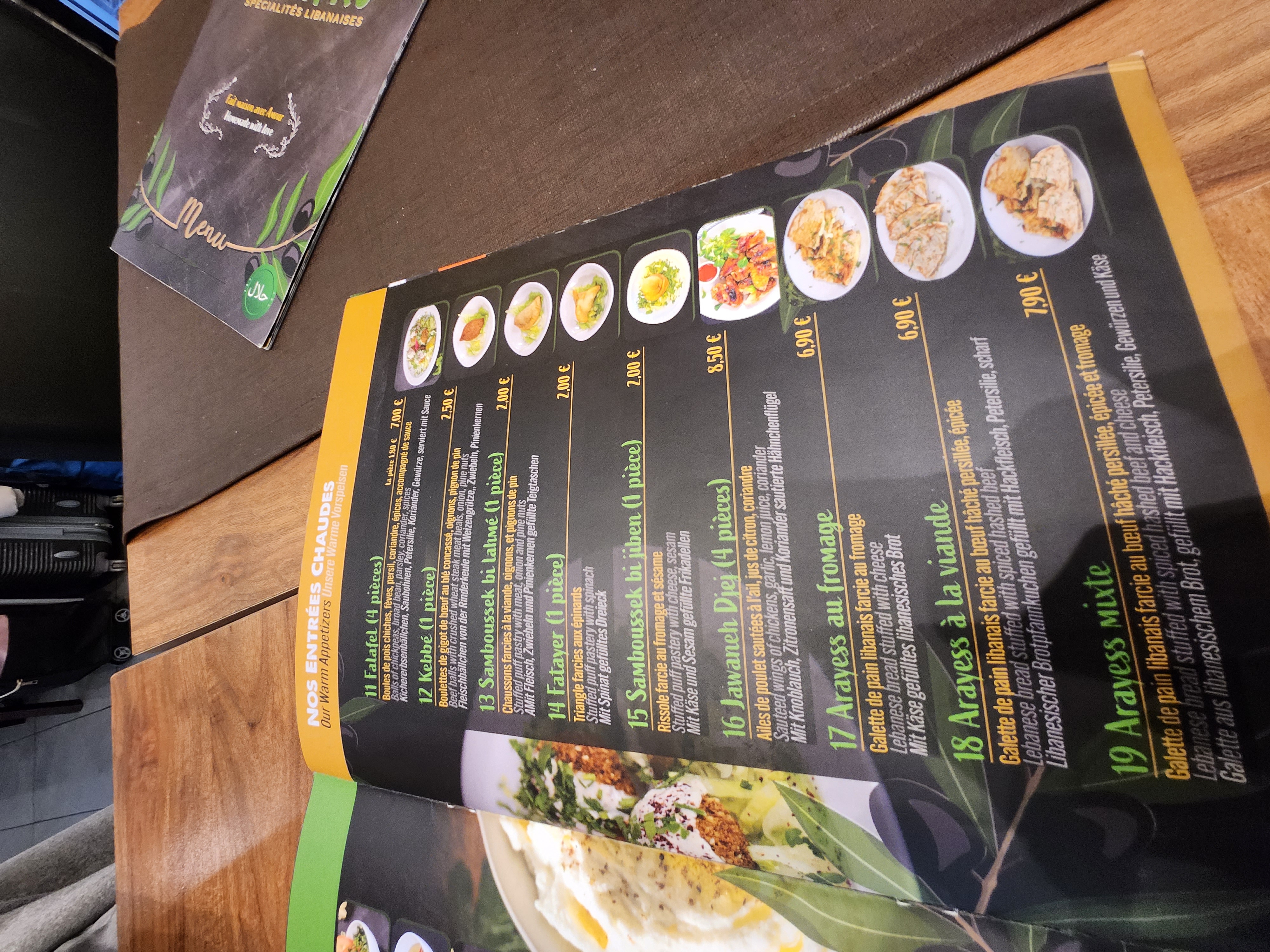 Mon avis porte principalement sur la qualité de la nourriture : Avec ma compagne nous cherchons un endroit où dîner et je lui propose d'aller au libanais. Après un bon coup d'oeil sur Google maps, nous choisissons ce restaurant, note de 4,6/5, les photos sont rassurantes, on se dit qu'on doit essayer pour se faire notre avis. Nous avons dîné sur place, elle a commandé un taboulé, des feuilles des vignes et des arrayes au fromage. De mon côté c'était une assiette chawarma Arabie, du poulet cuit à la broche, finement tranché et roulé dans un pain galette, servi avec des frites, du taboulé, du houmous et un peu de sauce toum (sauce à l'ail à la texture proche de celle d'une purée). Sur papier nous mangeons de la nourriture libanaise, nourriture que je connais bien car je baigne dedans depuis que je suis petit et que je cuisine très régulièrement. Je mange dans tous les restaurants libanais ou j'ai la chance de mettre les pieds. Je ne suis pas objectif car j'ai été conditionné aux saveurs du Liban et ce soir j'ai été déçu. Le chawarma était roulé dans un pain galette style kebab ou wrap plutôt que dans un pain libanais, la viande manquait de cuisson, d'assaisonnement et de marinade, le houmous manquait de goût, je ne sentais plus le pois-chiche, je pense qu'il n'était plus frais. Les frites étaient surgelées et la sauce toum était bonne, légèrement trop liquide et citronnée à mon goût. Concernant le taboulé, quelque chose n'était pas comme d'habitude, je pense qu'il n'était plus frais et qu'il manquait la mélasse de grenade dans la sauce. En ce qui concerne ma compagne, elle a apprécié les feuilles de vigne, partage mon avis sur le taboulé, en ajoutant que la sauce manquait de citron et n'a mangé qu'une part de l'arrayes au fromage qui n'était bon ni en goût ni en odeur, avis que je partage après l'avoir goûté. Pour éviter de gaspiller nous l'avons demandé en doggy bag et l'avons donné à une SDF sur la route du retour. Je n'ai pas fini la viande et le houmous alors que d'habitude il faut m'empêcher de lécher mon assiette. Au niveau des prix j'ai trouvé ça correct et le service etait professionnel. N'étant pas de Strasbourg, je ne sais pas quel restaurant libanais recommander. En revanche, celui-là, je sais que je ne le recommanderais pas. Pour moi l'offre se rapproche plus d'un kebab classique que d'un restaurant libanais.
