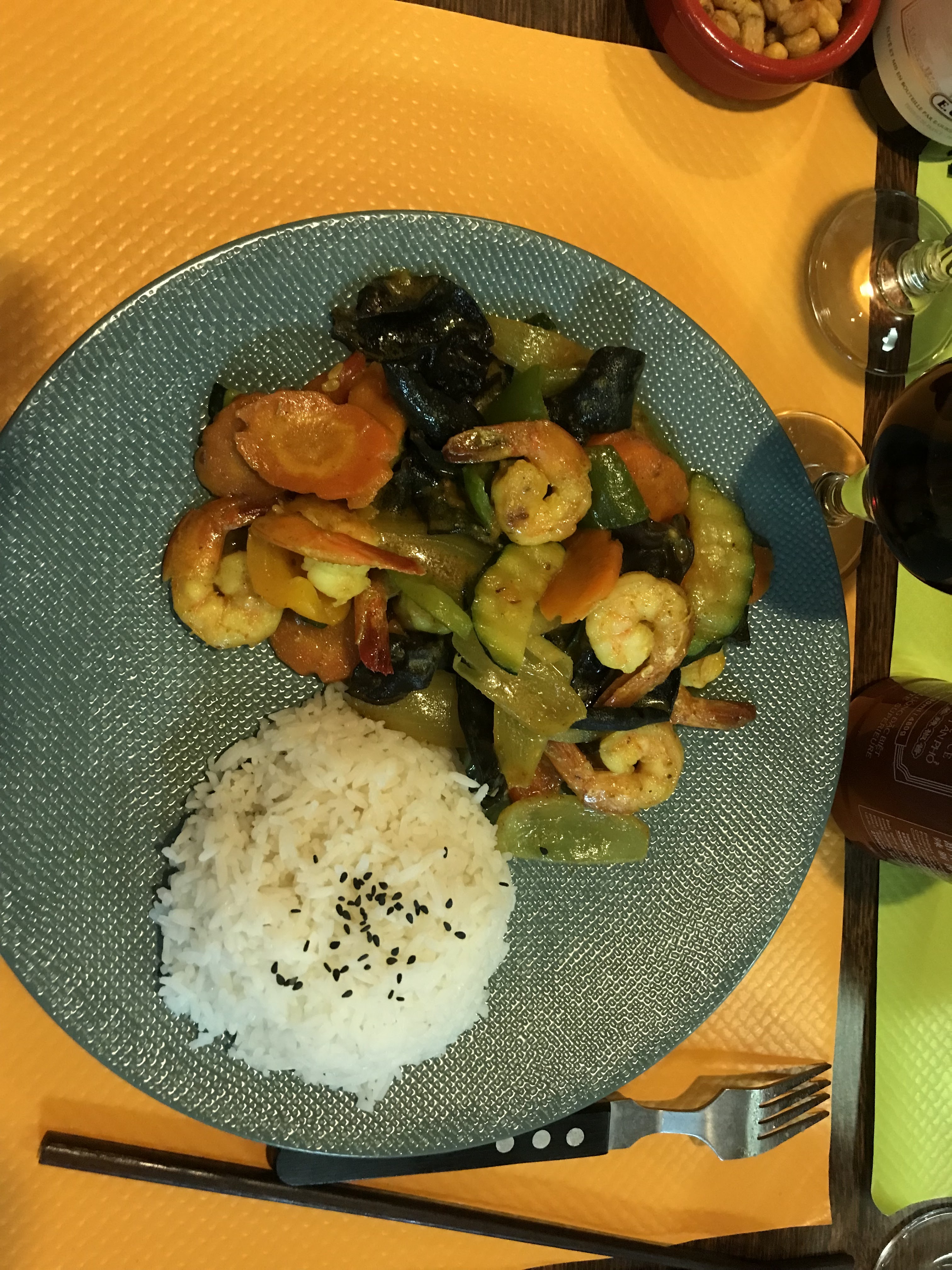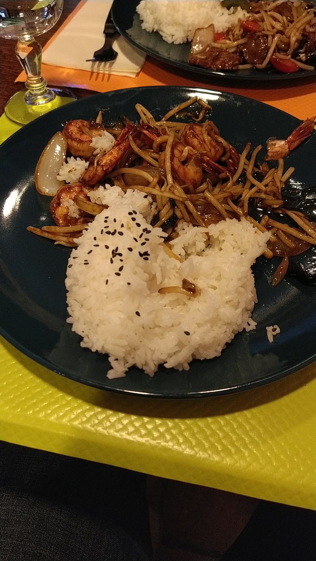 Un repas EXCELLENT, un bon accueil et des plats très copieux et appétissant. Et en plus de ça c'est vraiment pas cher ! 12 € environ un plat. J'ai pris un wok de crevette sauce aigre douce. C'était EXCELLENT C'est sur je recommande et je vais y retourner.