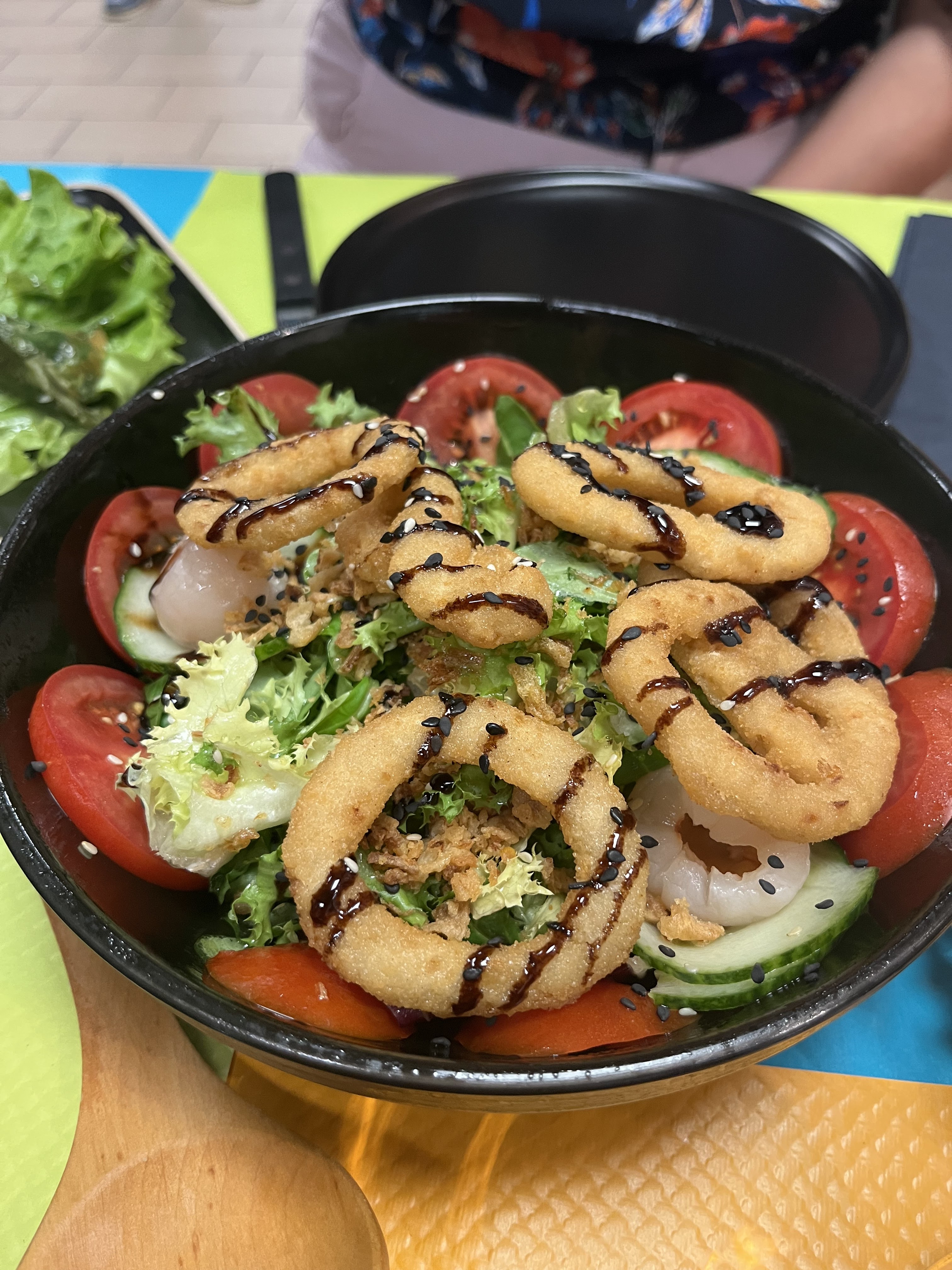 Excellent et très frais. Cela change de la cuisine exotique proposée dans les chaînes. Le cuisinier prépare à la minute des plats copieux avec beaucoup de légumes. Très satisfaits.